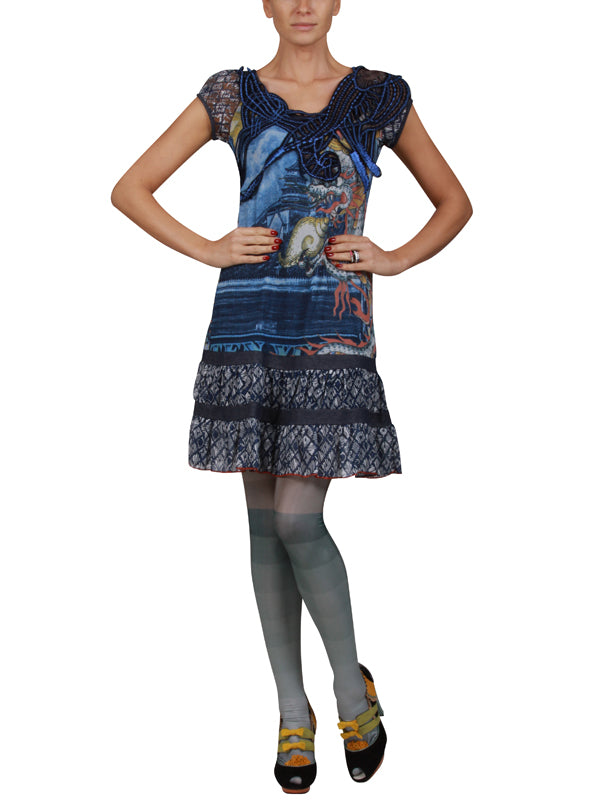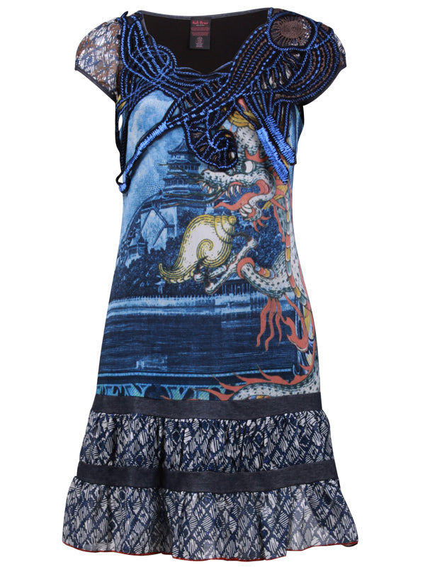Product Code: 10450011This exclusive and absolutely striking ethnic print from Kali Orea gives you the ¢¢œIt look¢¢�. This dress falls beautifully, and finishes with an asymmetrical hemline that flatters the legs and adds more movement to the skirt. You can complement it with stockings for more formal occasions.