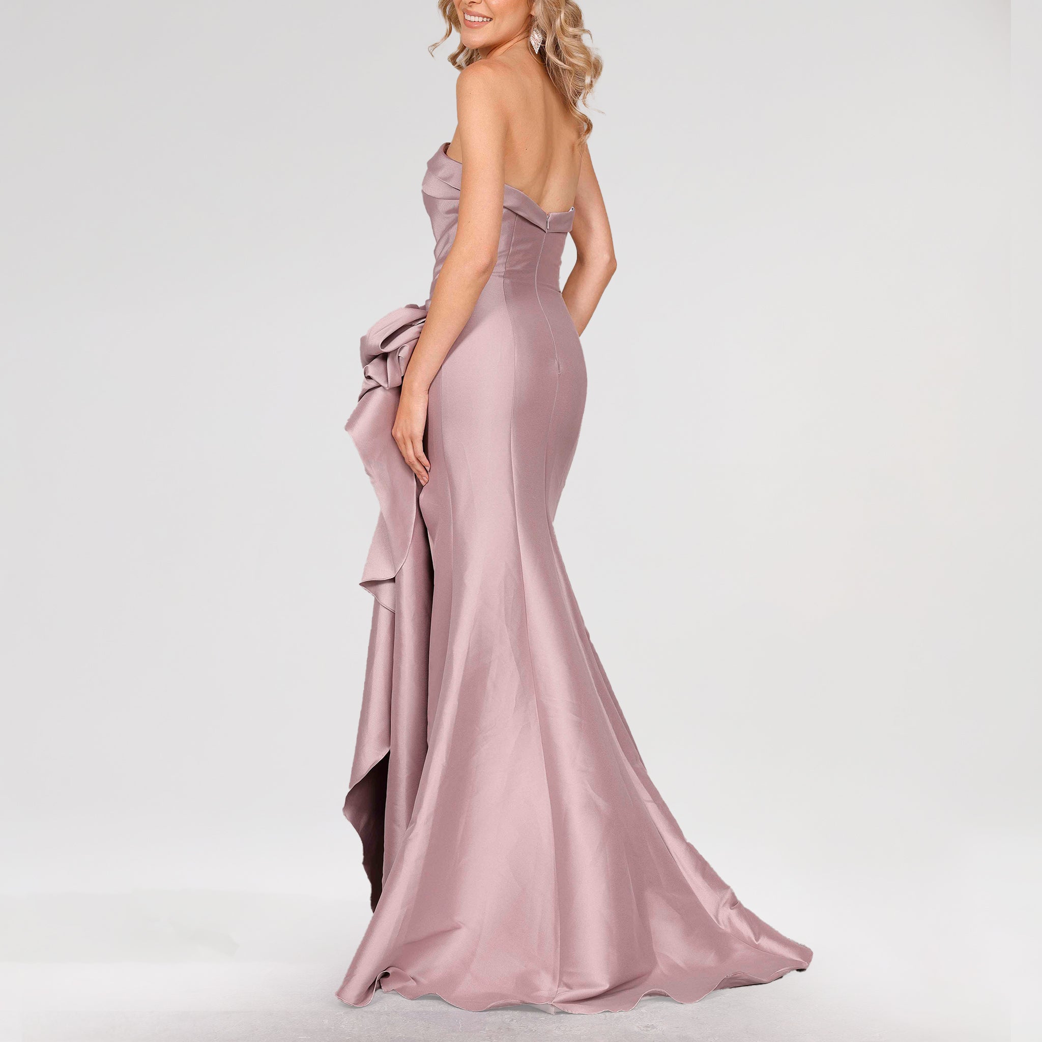 Mauve Off-Shoulder Neckline Draped Bow Gown
