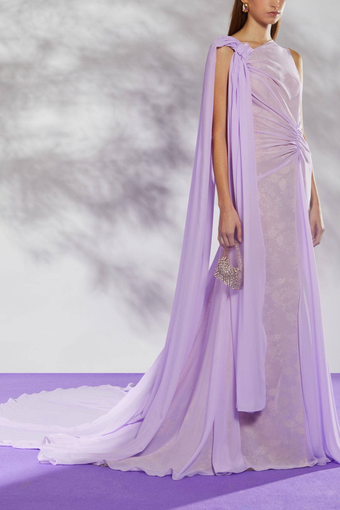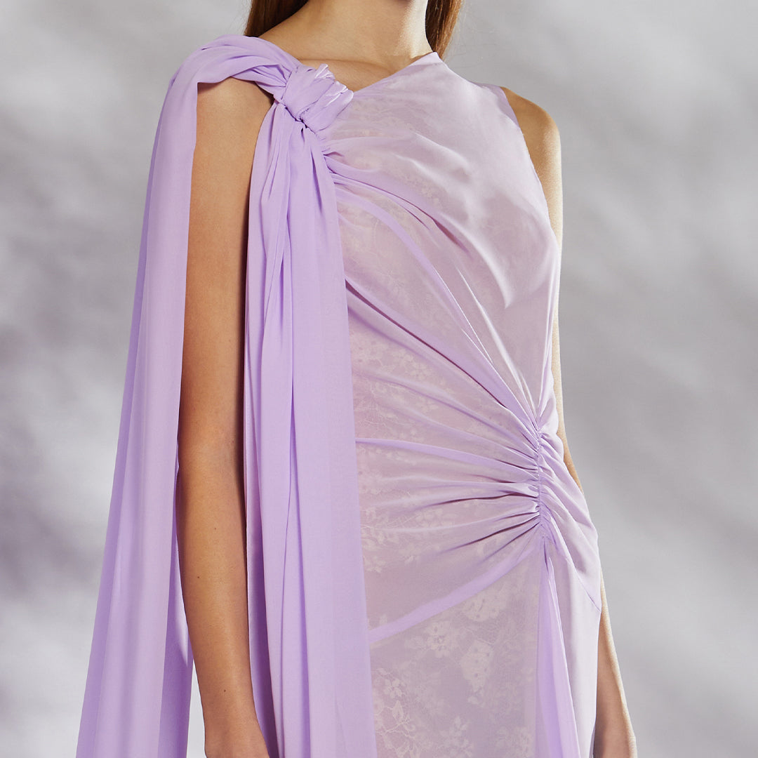 - Lace lining and chiffon fabric offer an airy, feminine feel