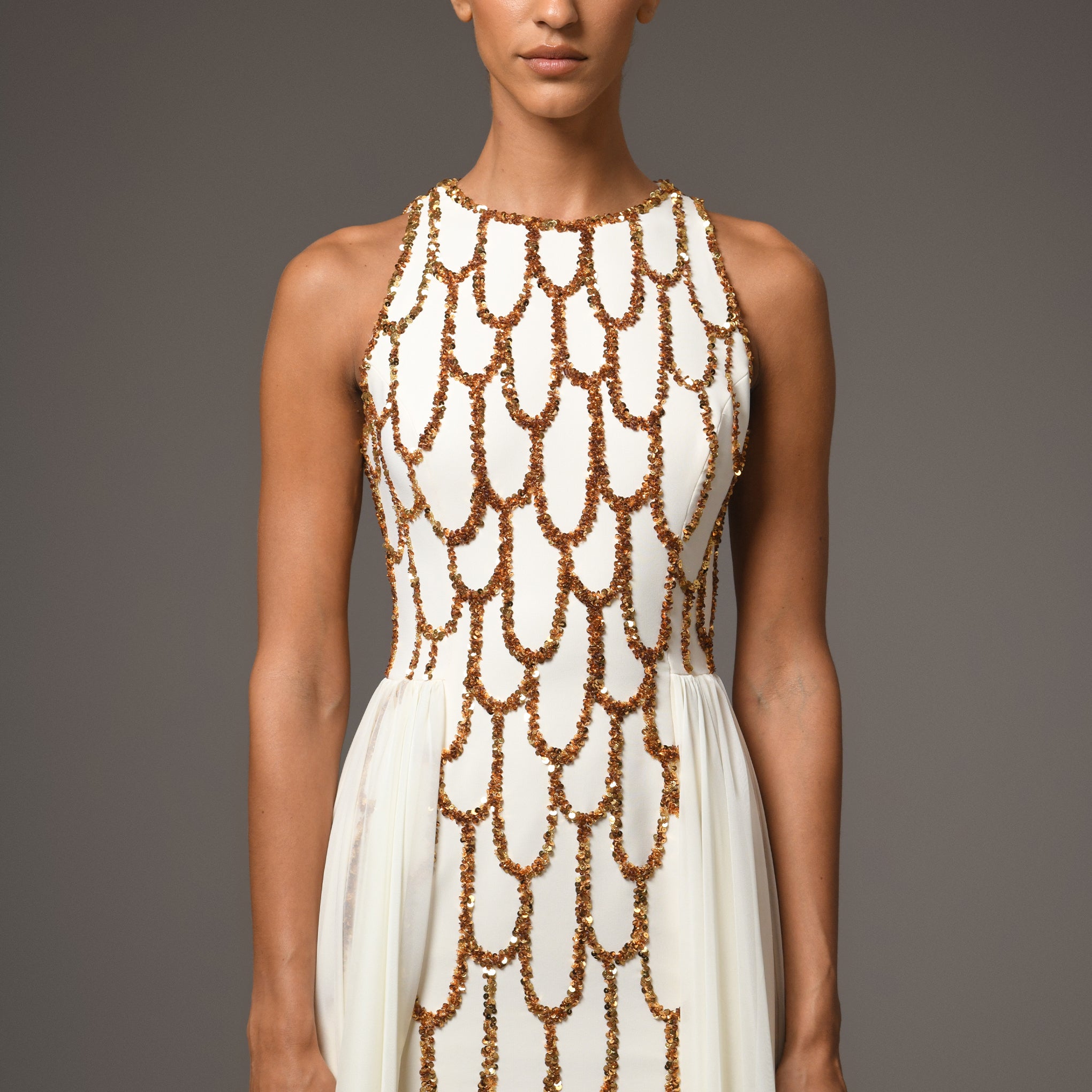 • Fully embroidered bodice with intricate details