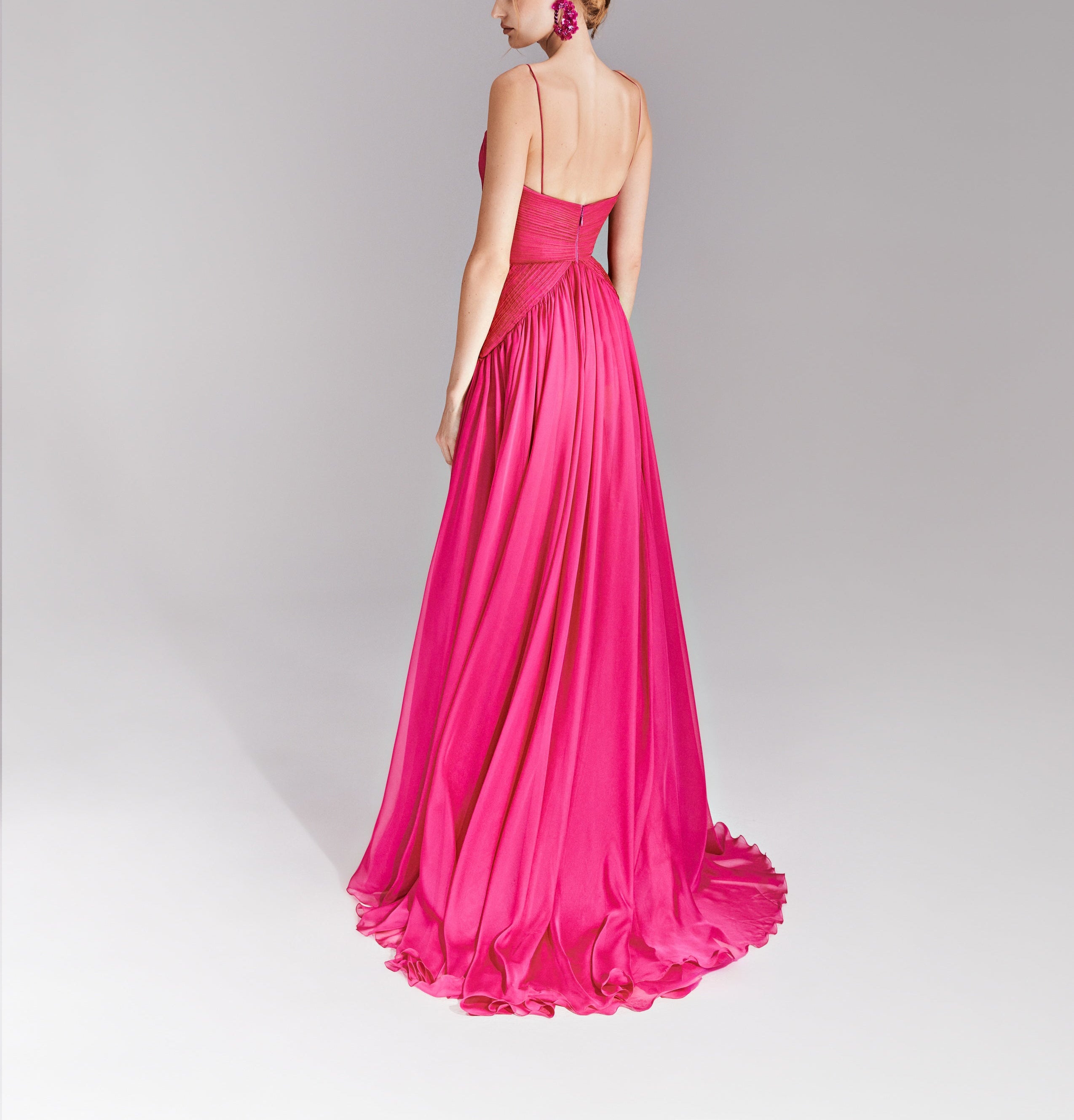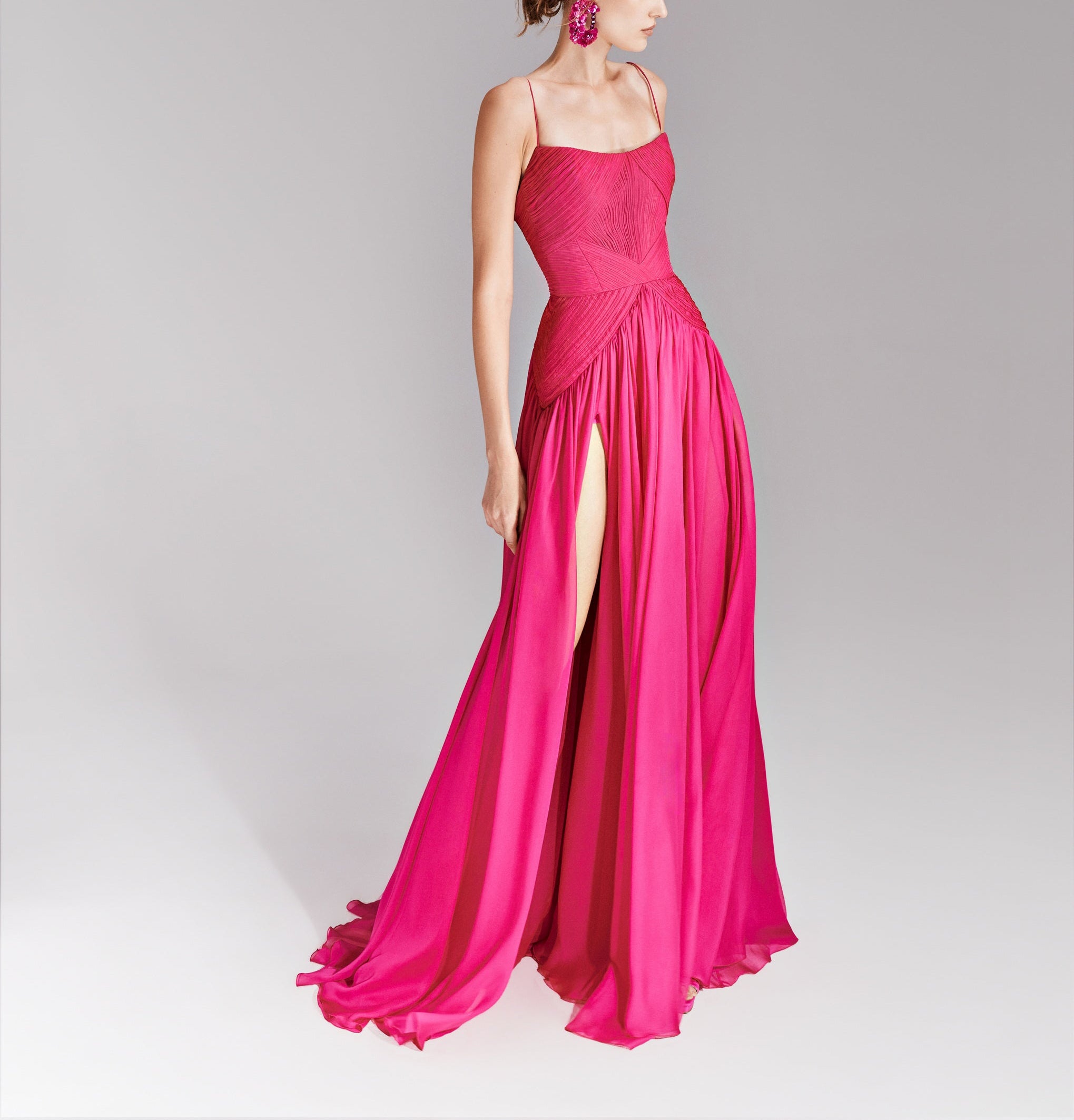 - Layered Bust stitched on to a chiffon skirt with a high slit