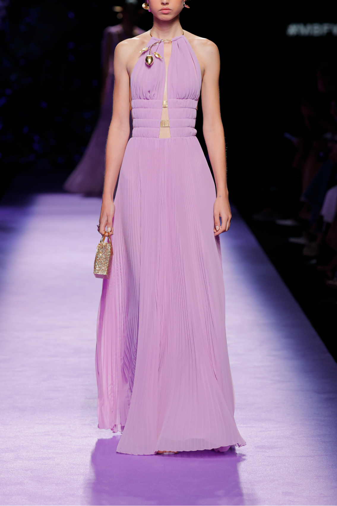 - Pair with nude or metallic heels, a sleek clutch, and simple jewelry. Style hair in an elegant updo or soft curls, and go for a soft pink or nude lip with natural makeup to complement the dress.