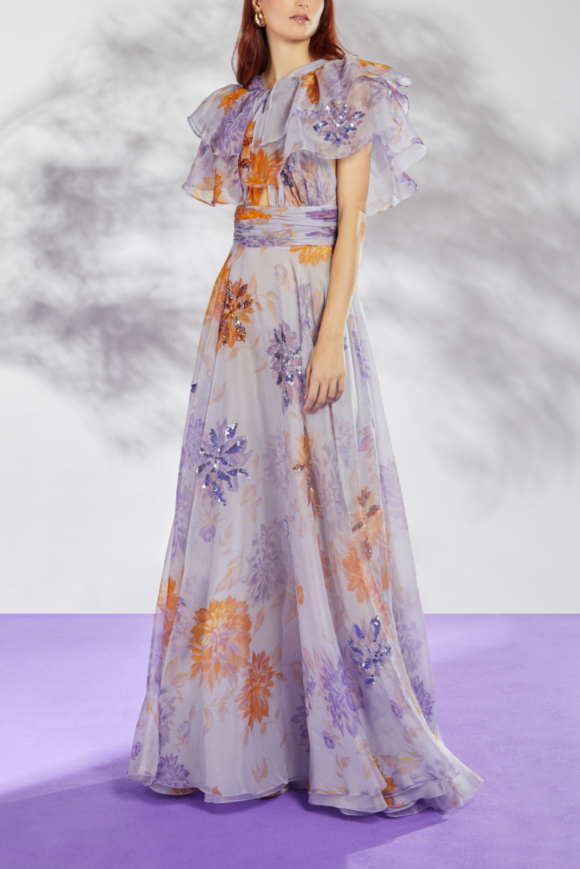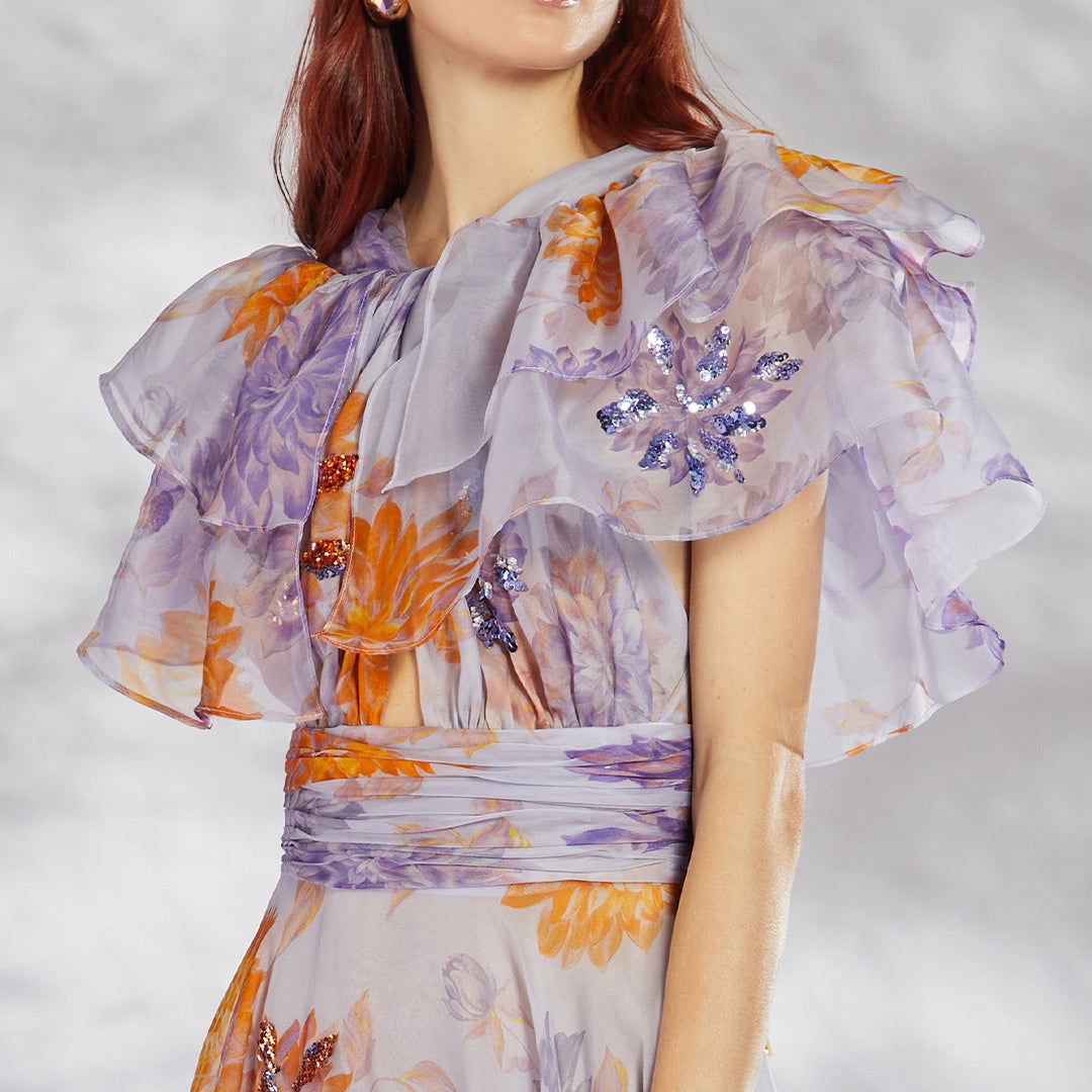 - Soft chiffon and organza fabric create an ethereal, flowing effect