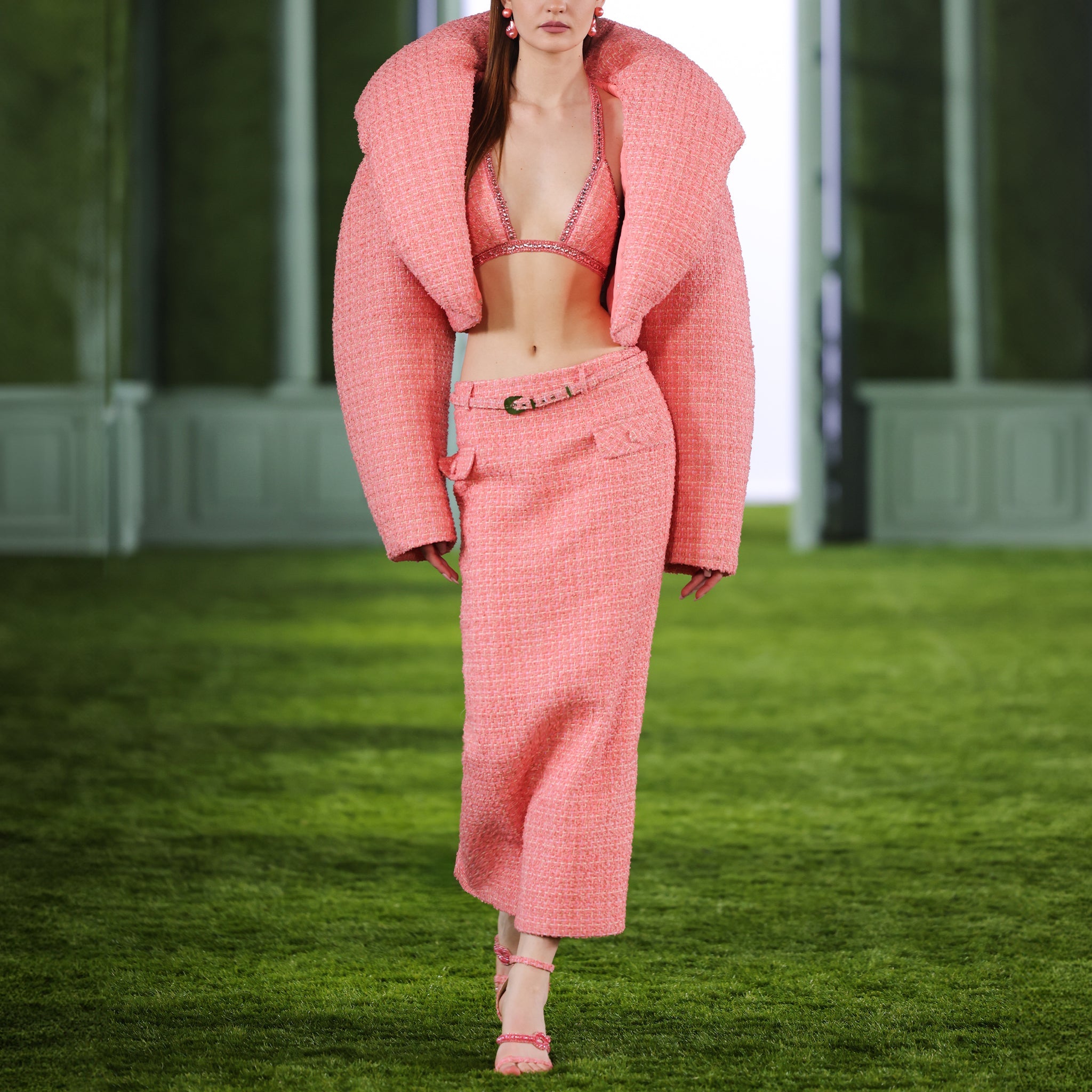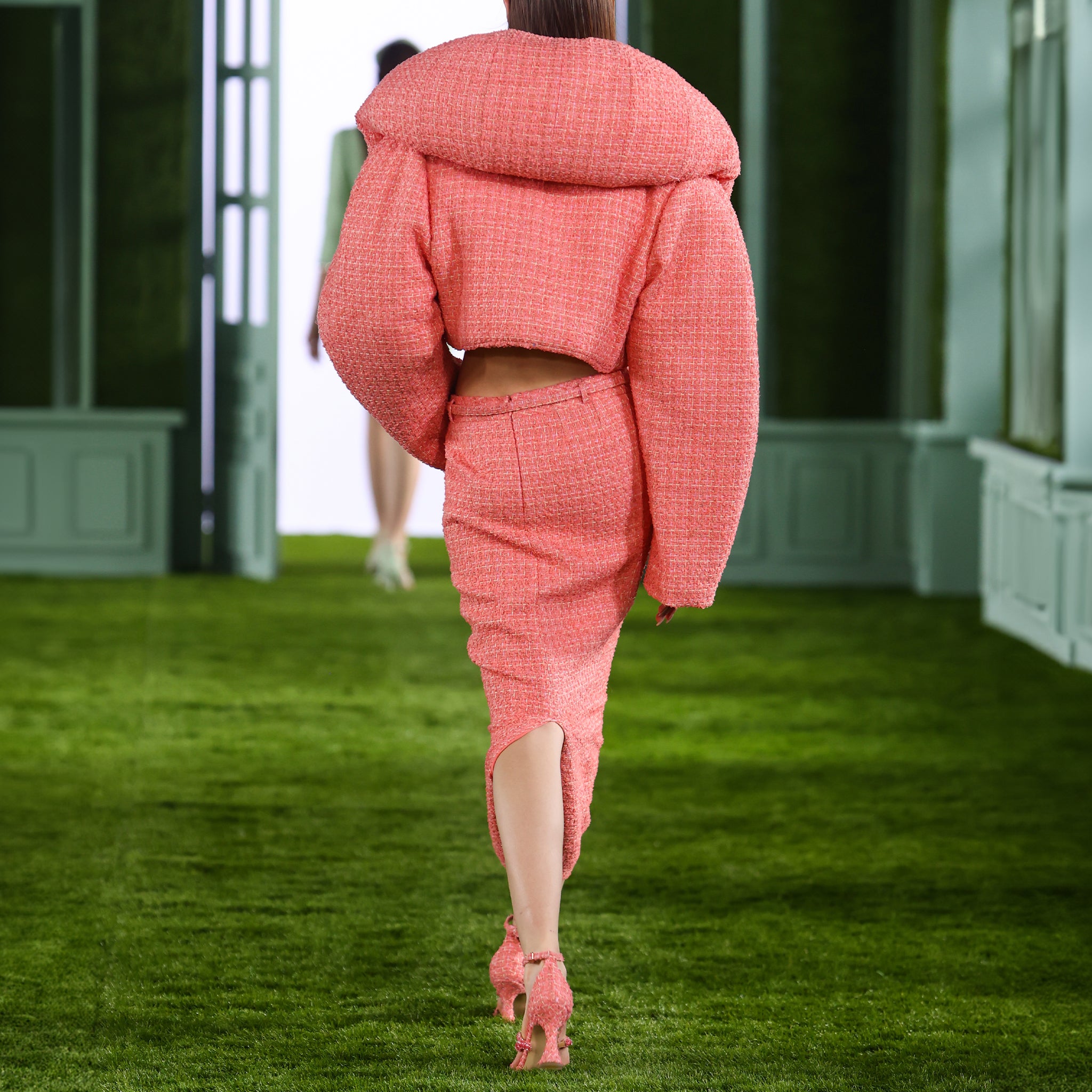 Low Waist Tweed Skirt with Puffer Jacket