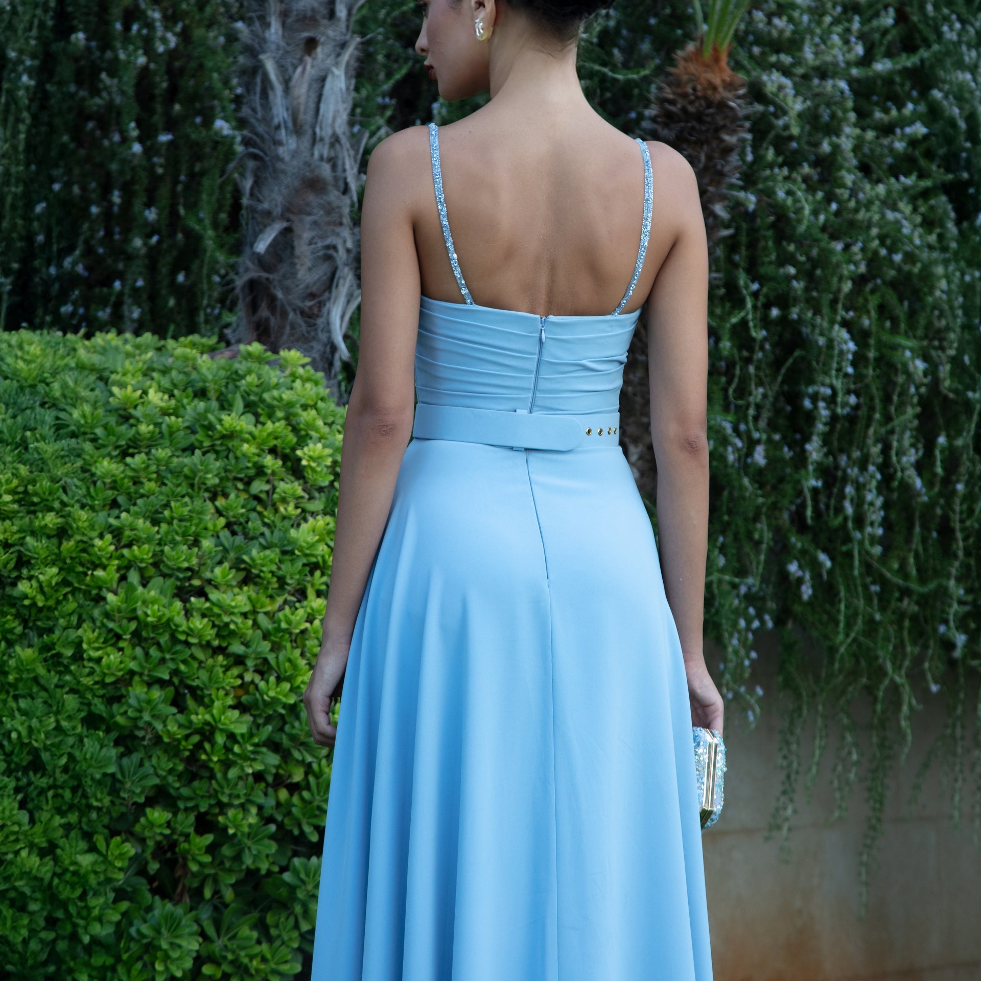 Sky Blue Dress with Beaded Lace Corset