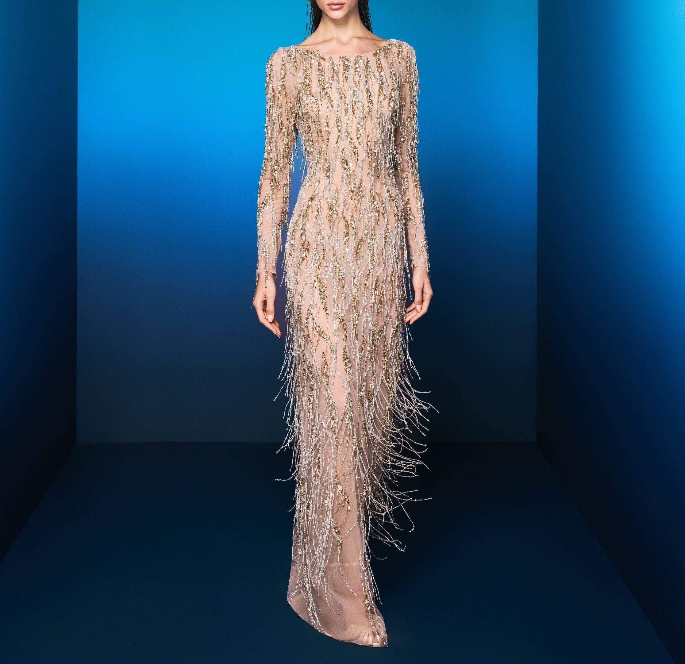 Beaded Tulle Top & Skirt with Oversized Jacket