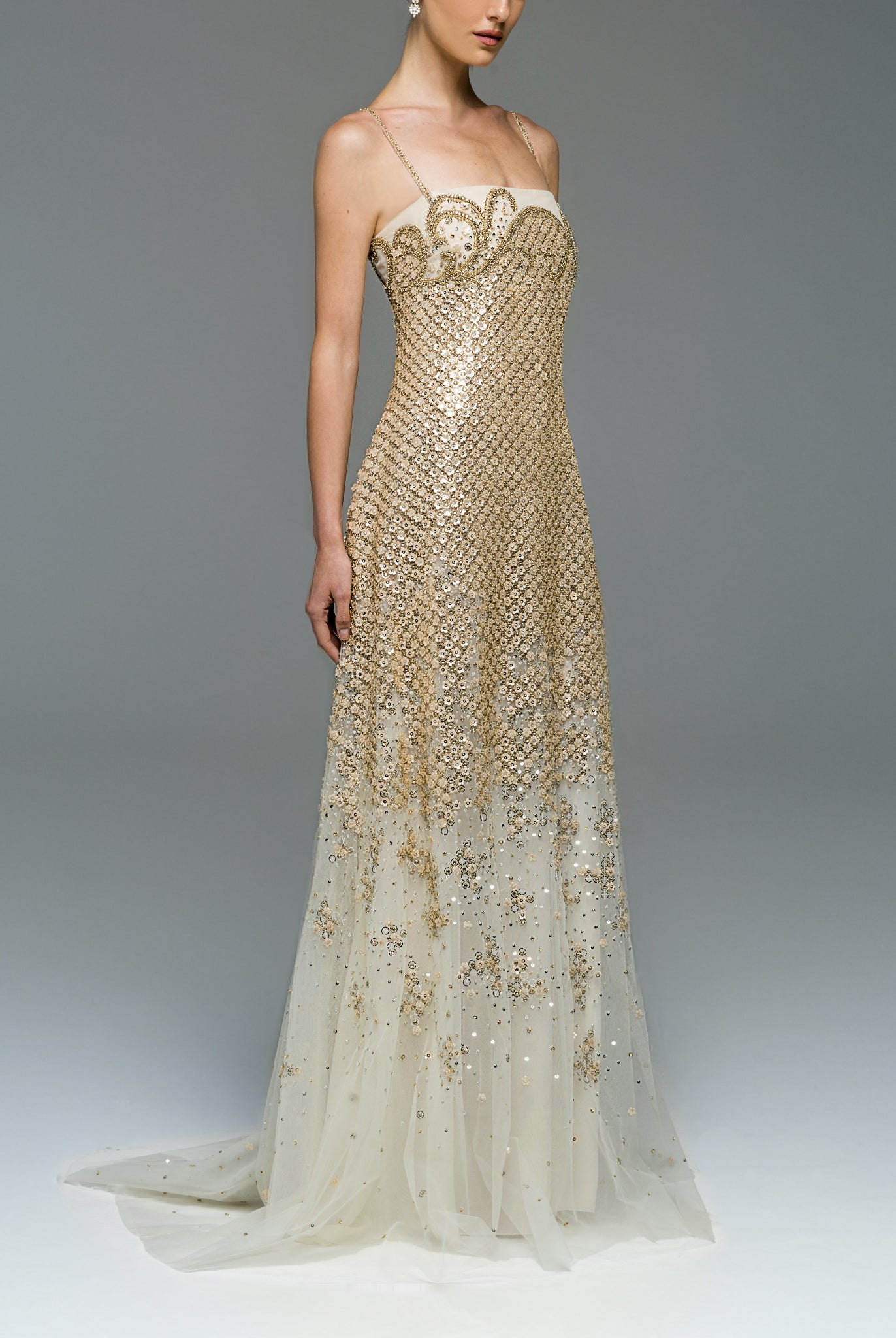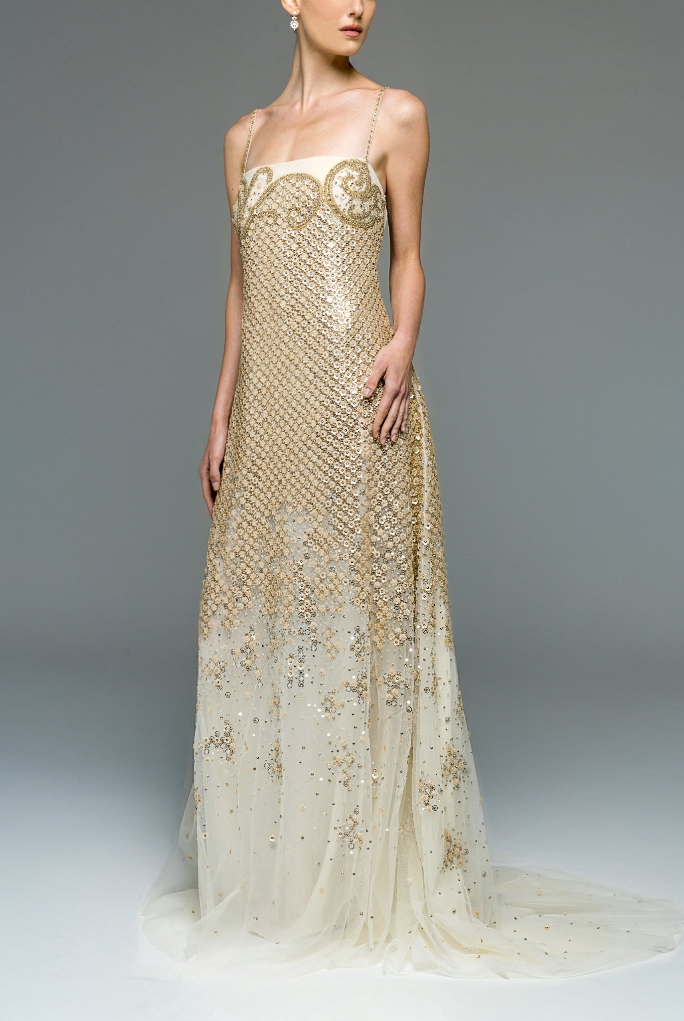 - Beaded tulle dress with a Spiral Crystallized Detail