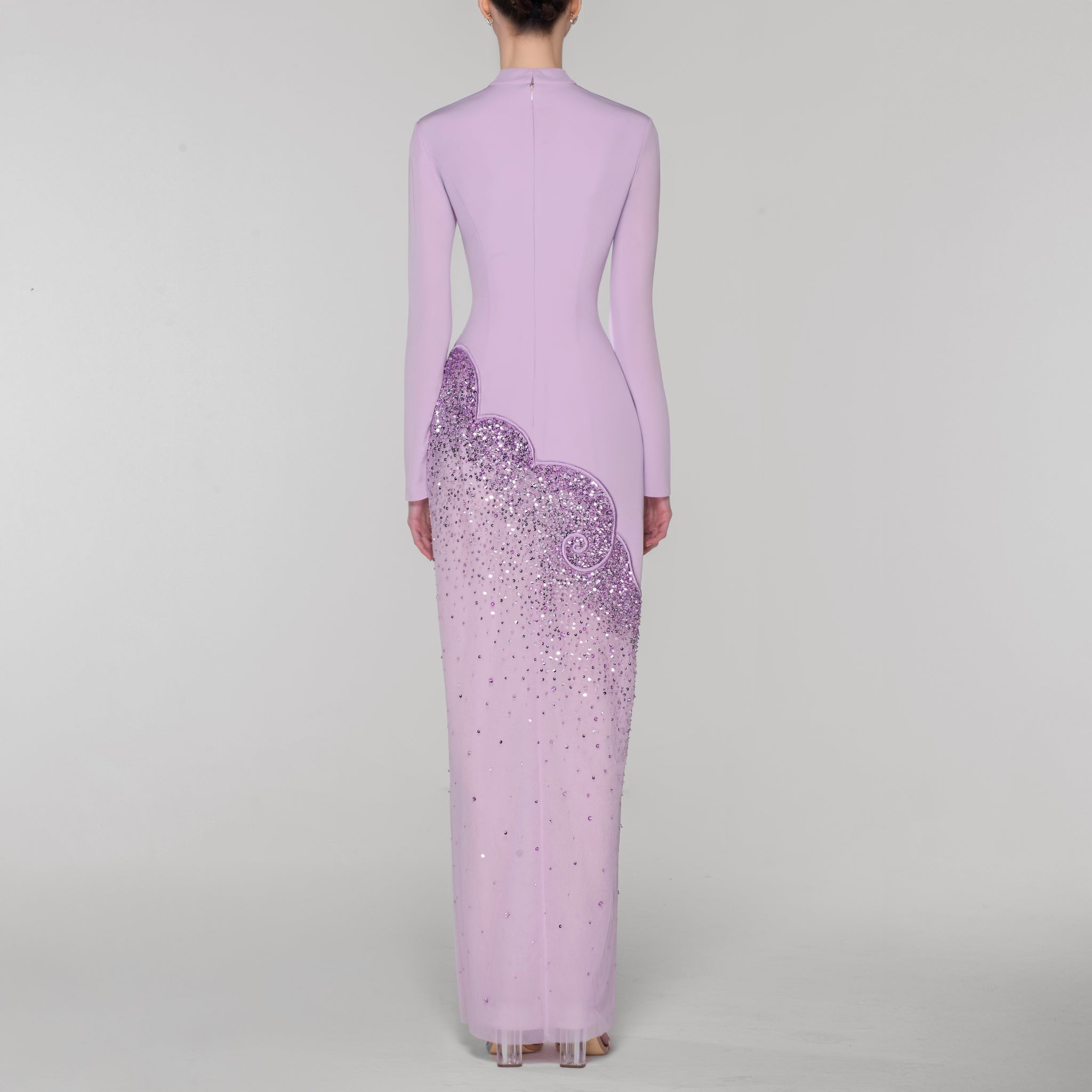 - Embellished with thread embroidered motifs and a sprinkled crystallized tulle skirt
