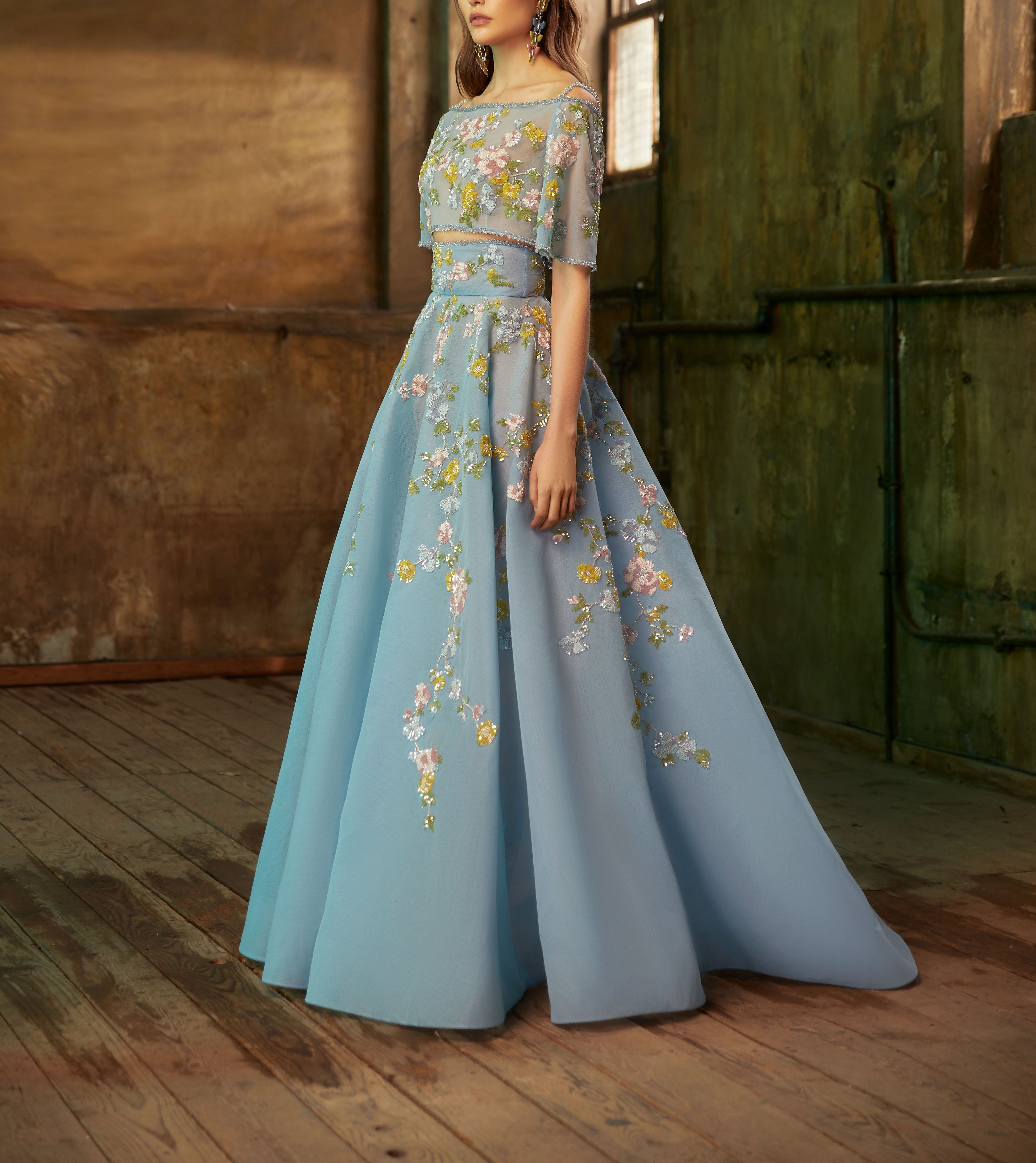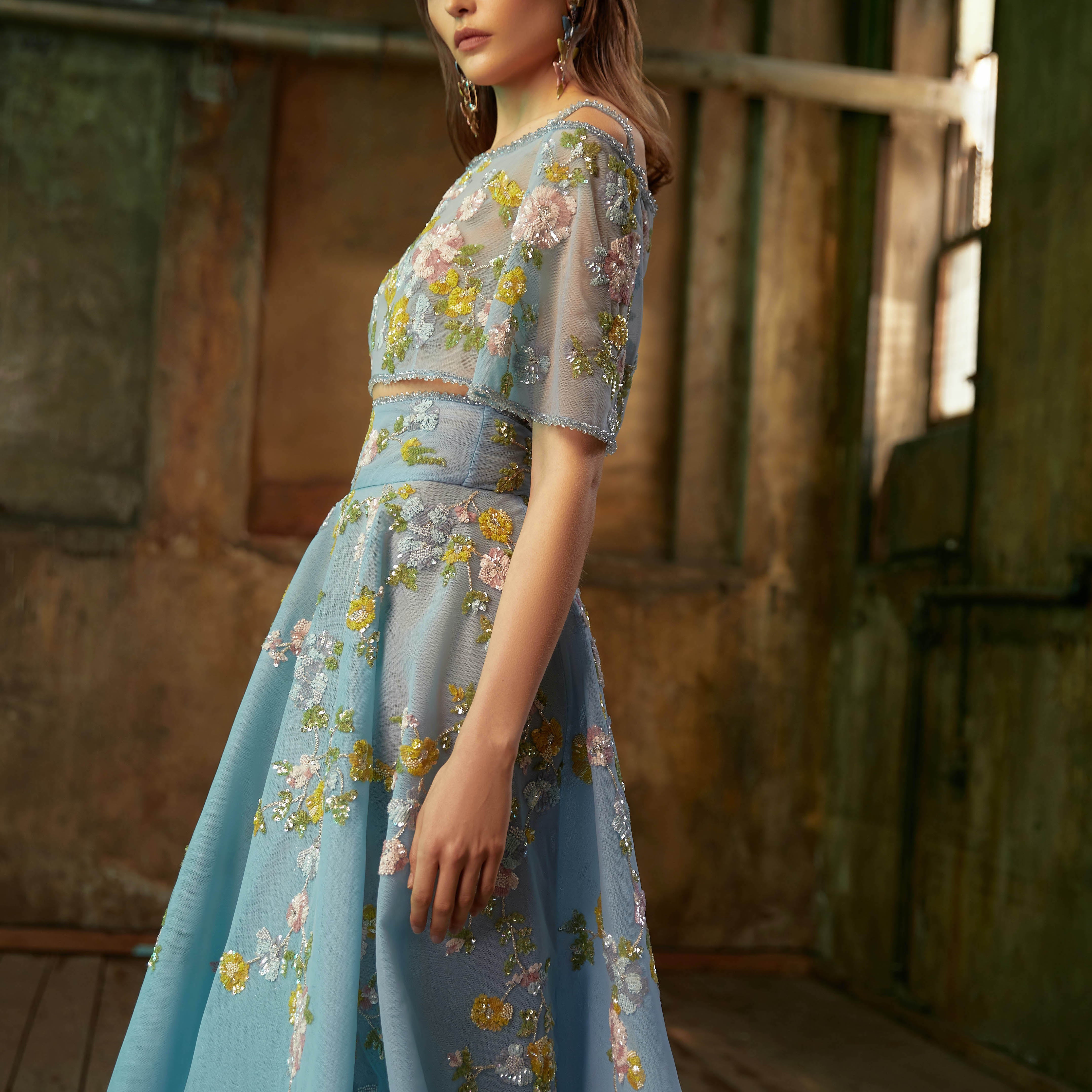 Two Piece Set of Embroidered Tulle with Multicolored Flowers