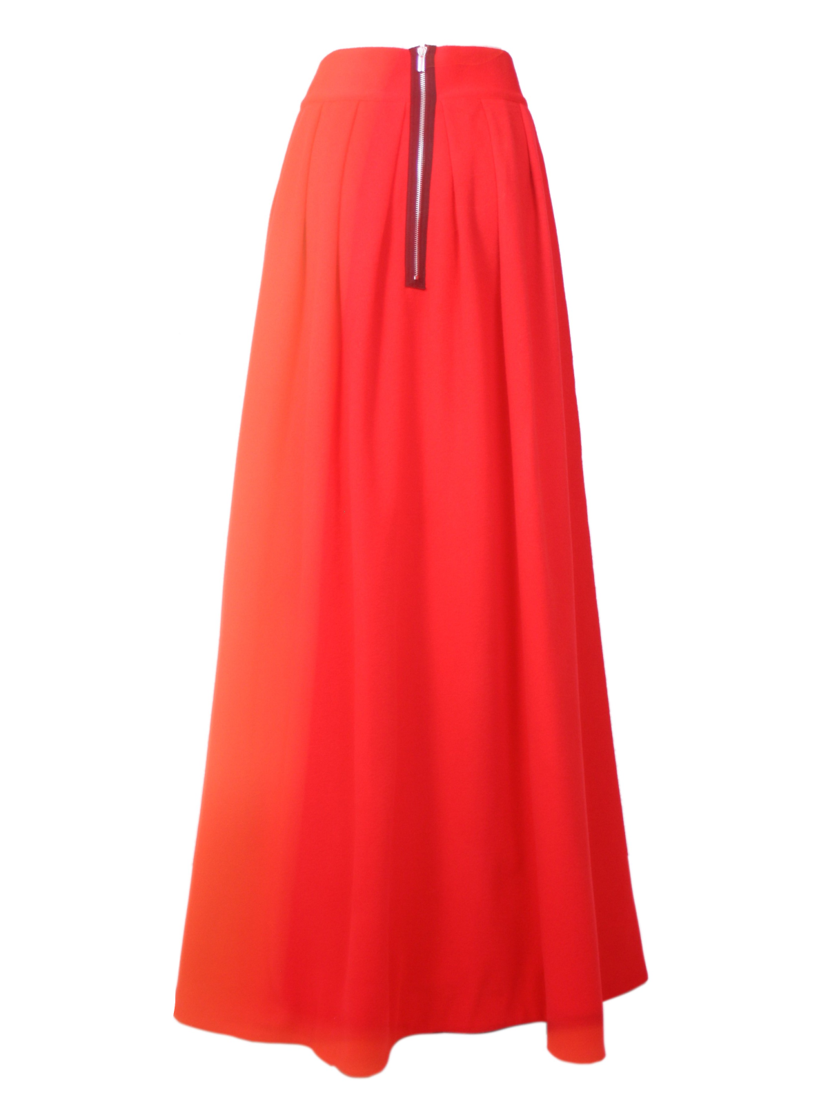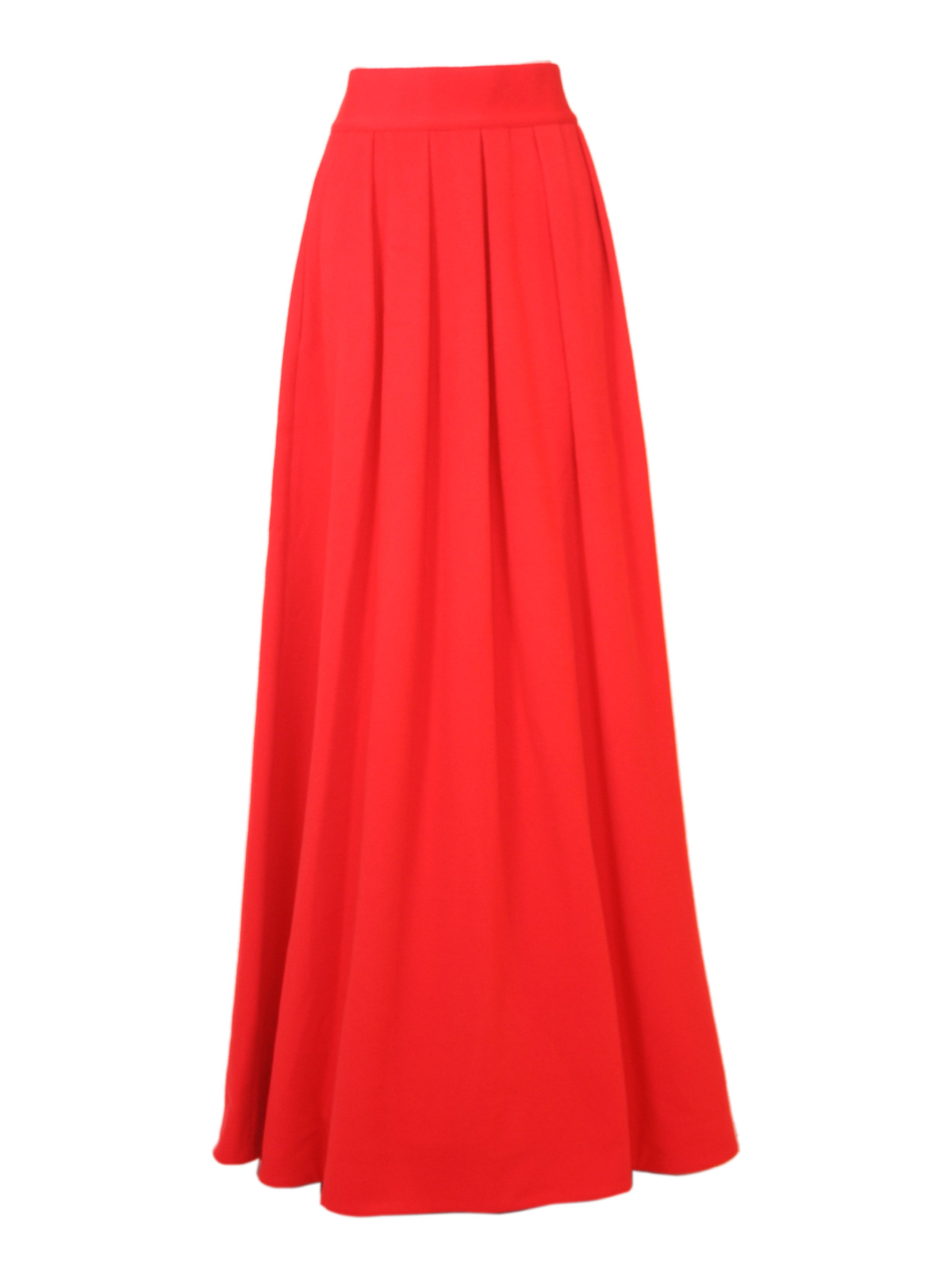 Look awesome in this red wool & cashmere Donjon skirt.This long skirt is ideal for evenings.It features a broad waistband with an enclosed back zip closure.It comes with two invisible pockets and beautifully designed pleats.