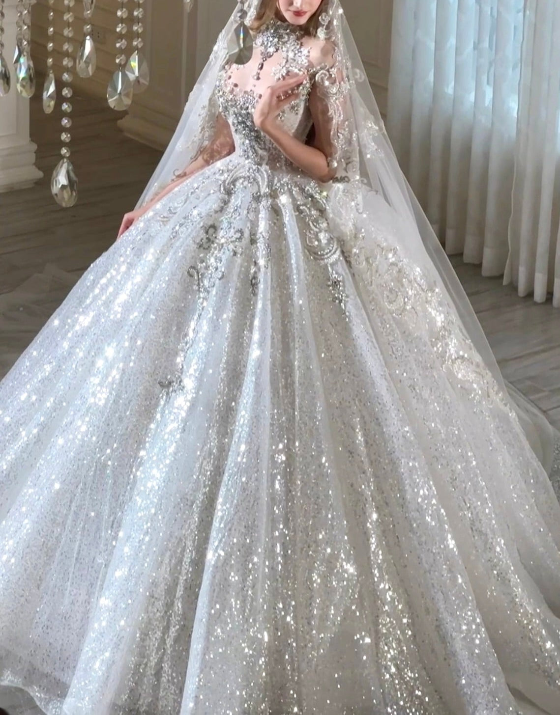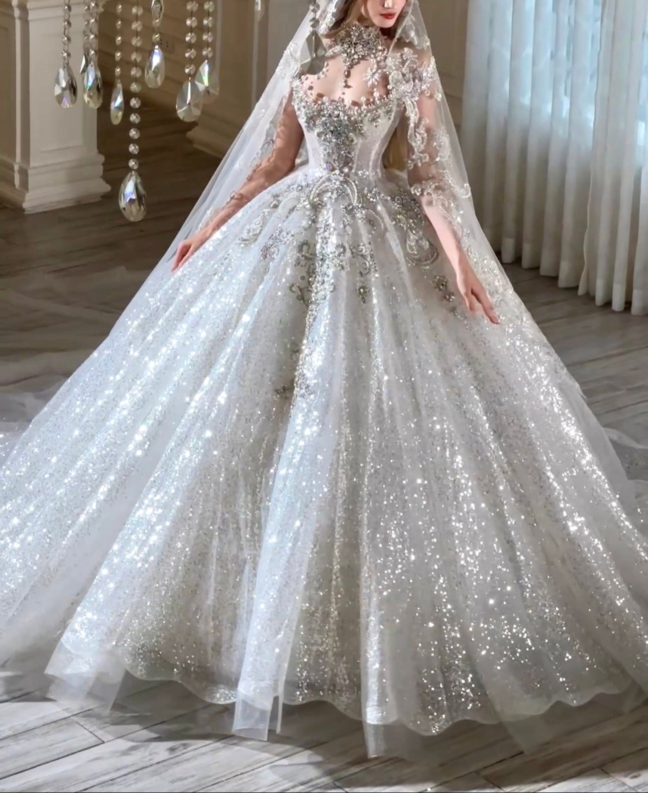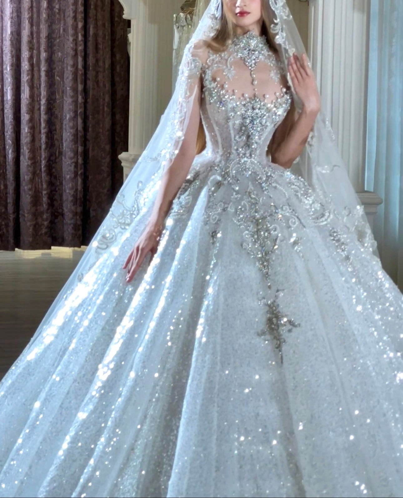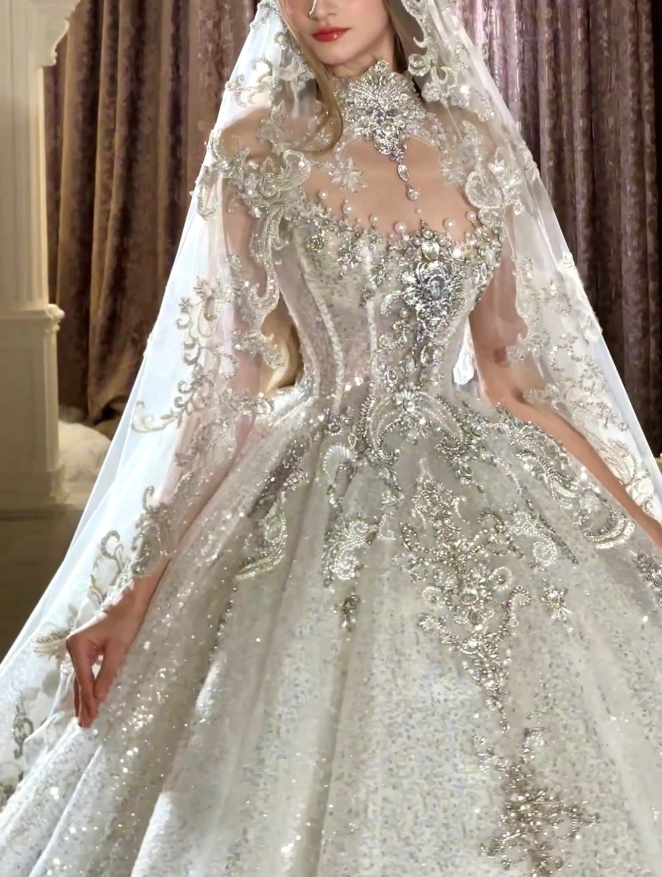 Crystal Pearl Beading with Turkey Stone Ballgown