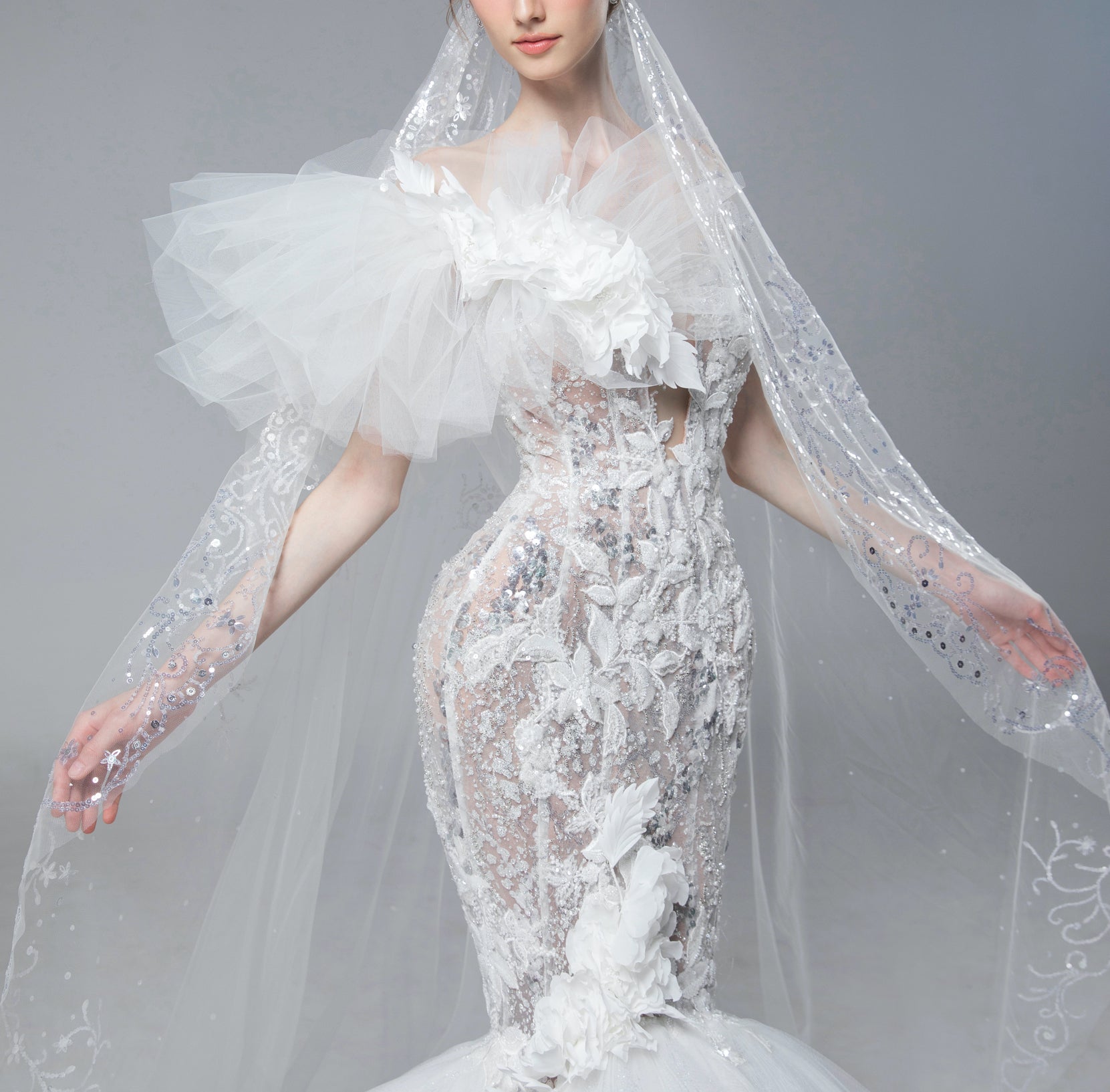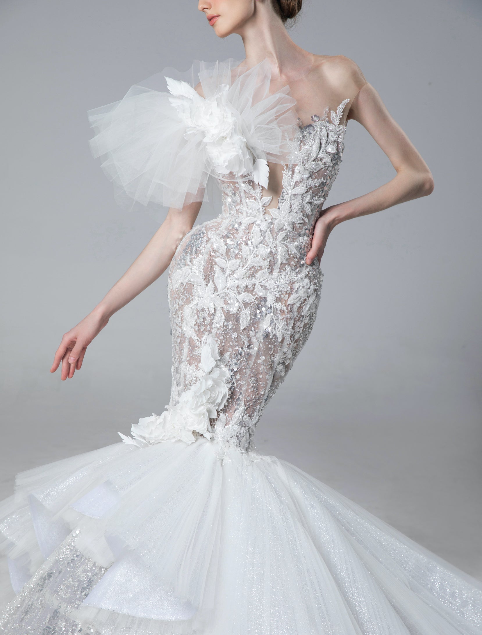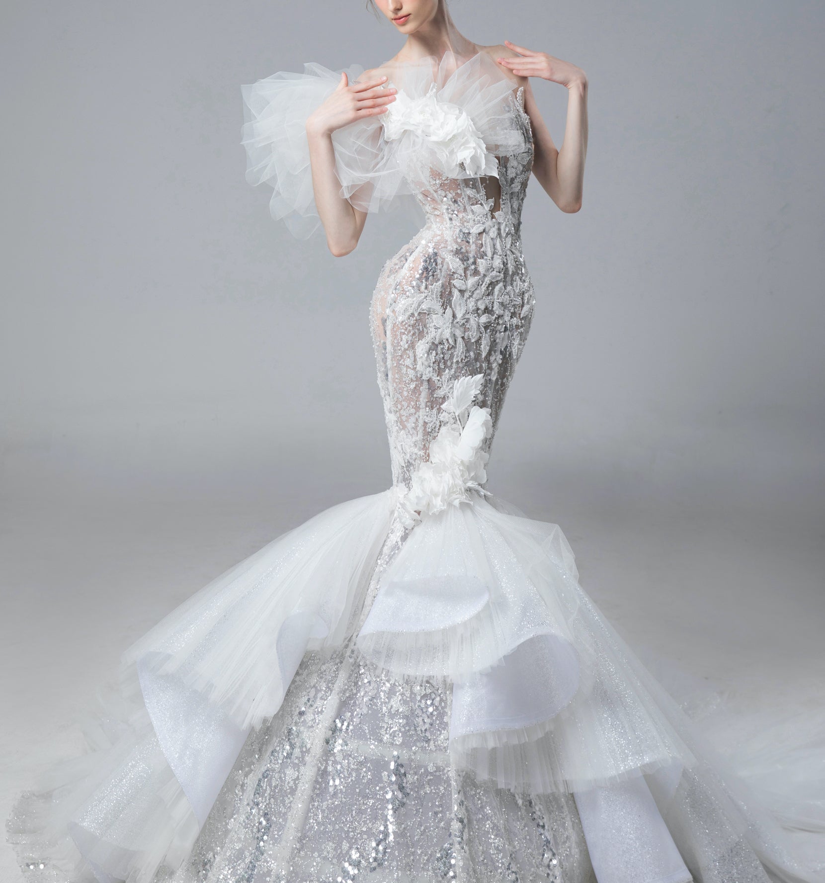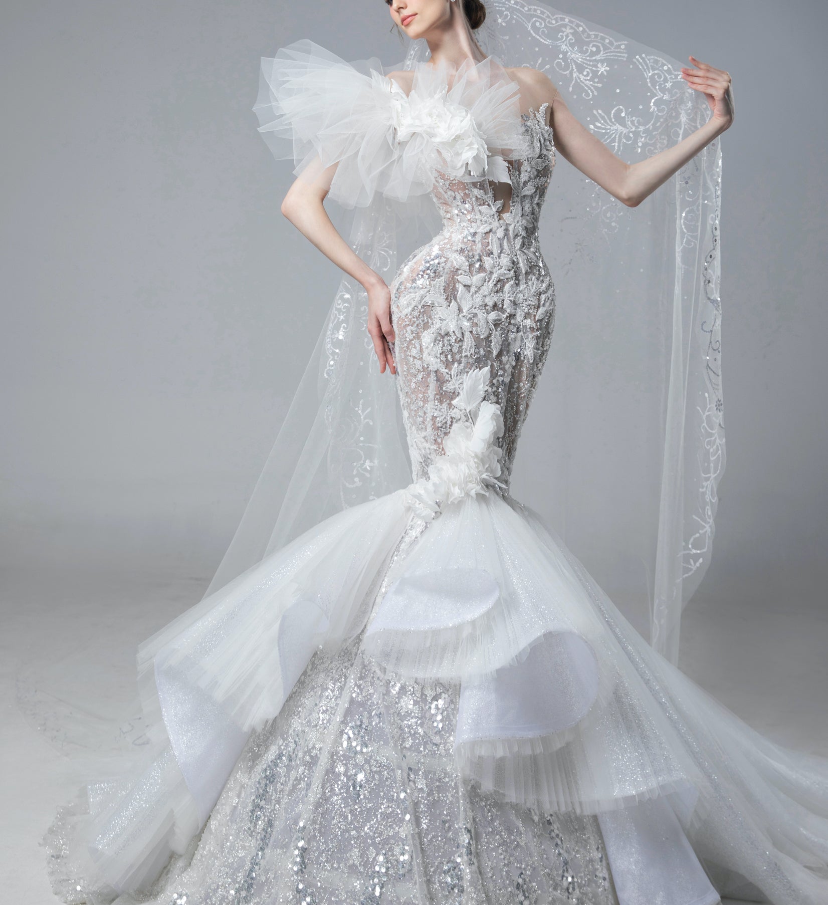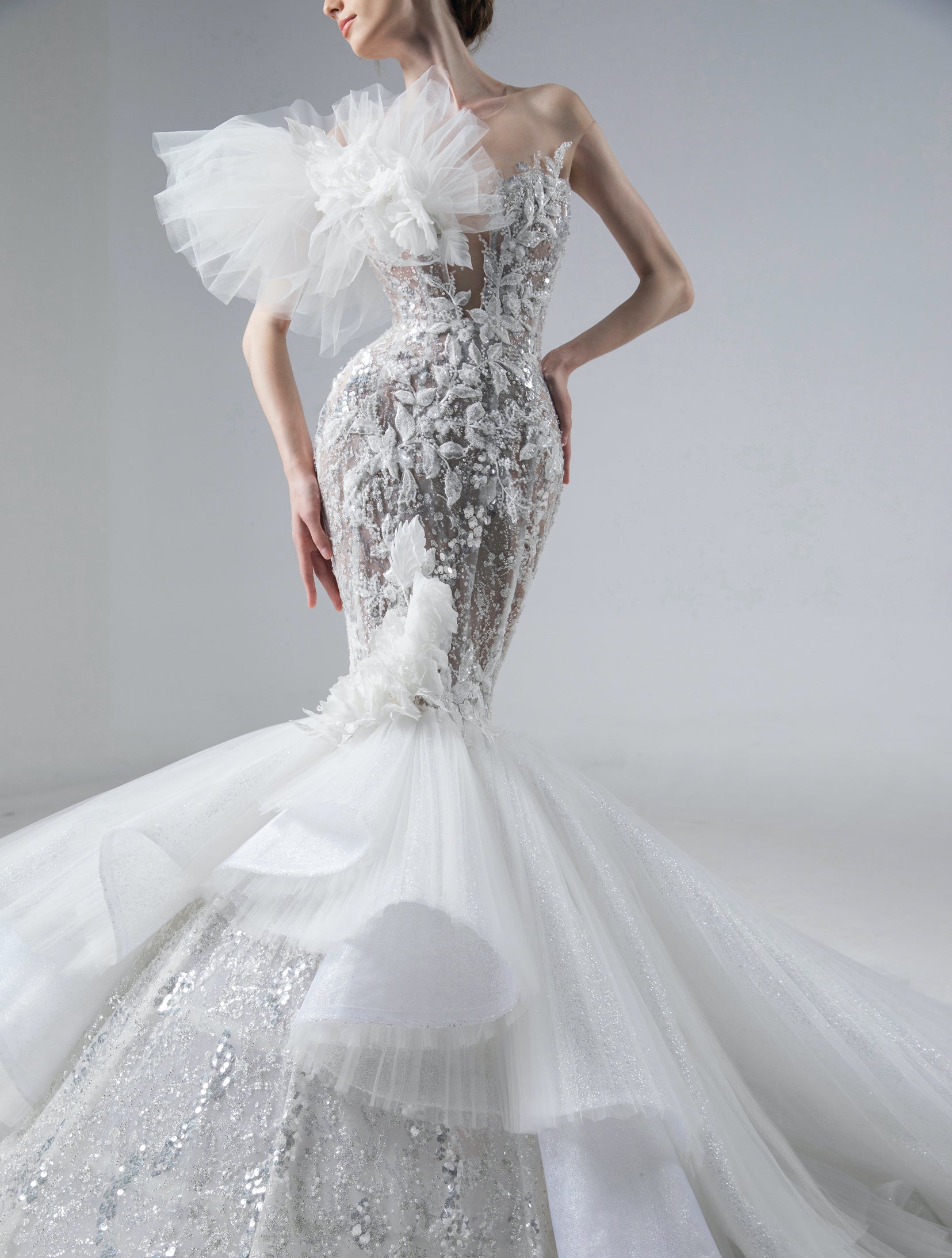 • Silhouette: Mermaid Cut, Fitted Through The Bodice And Hips, Flaring Out Dramatically Below The Knees