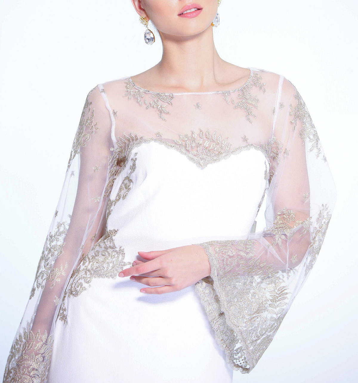 Lace Cape Sleeve Gown-Ivory