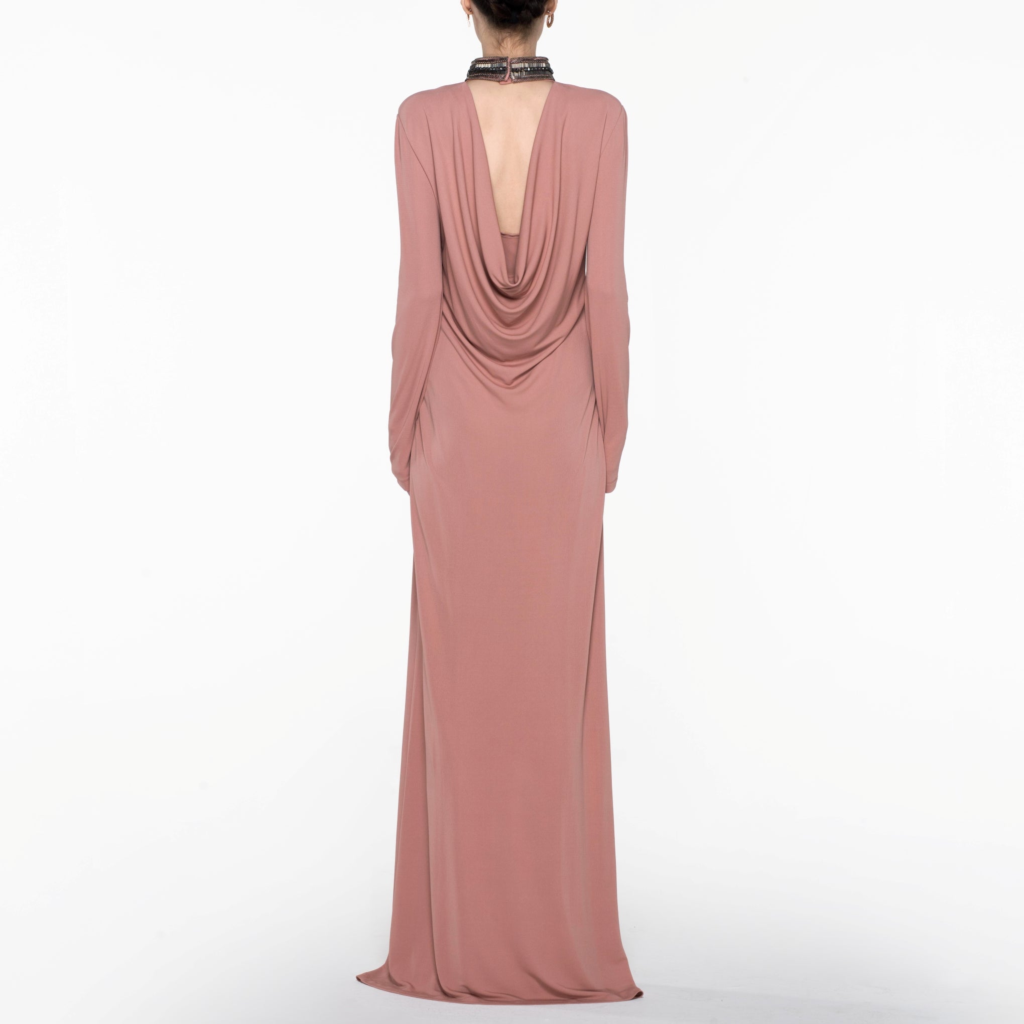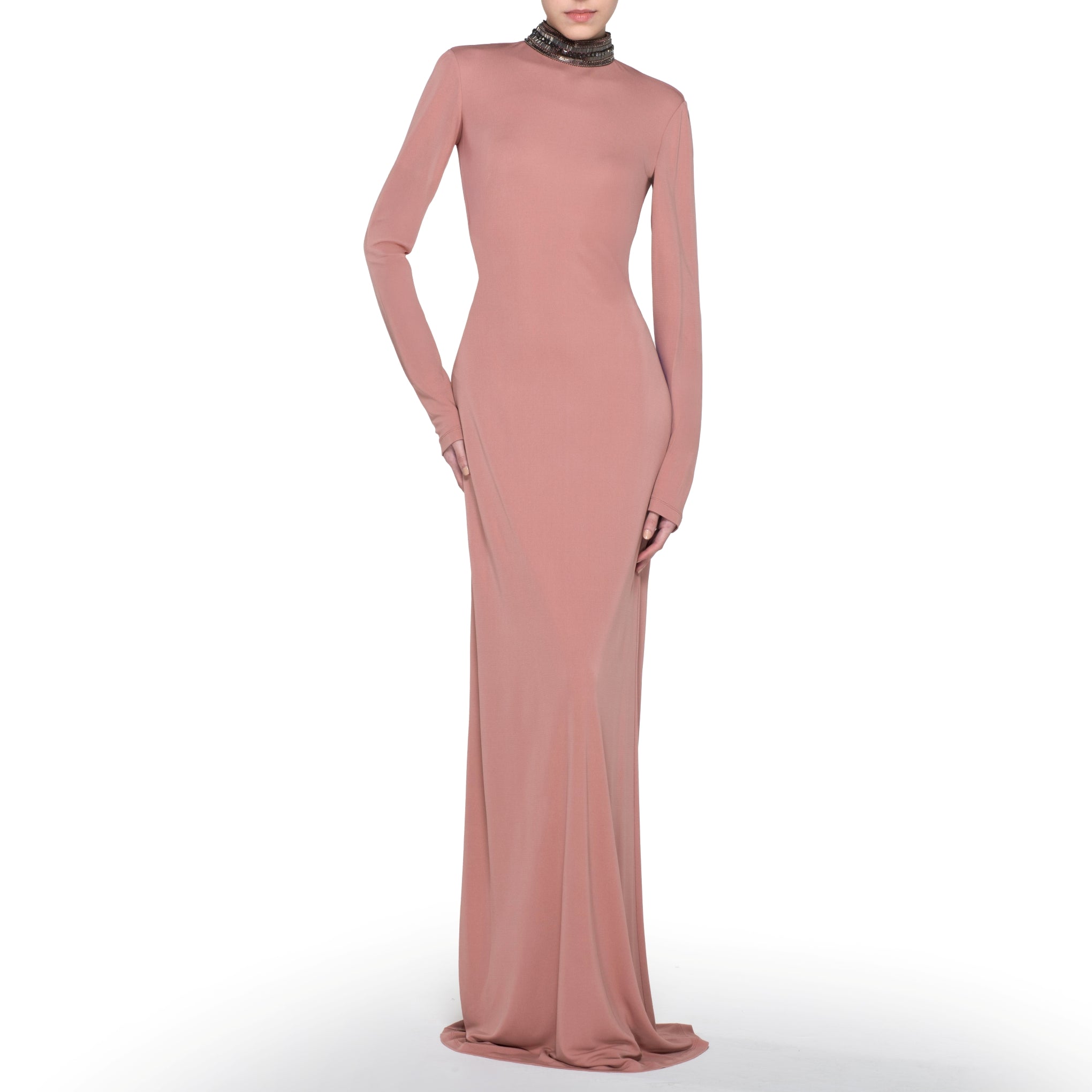 Embroidered High Collar Long Dress