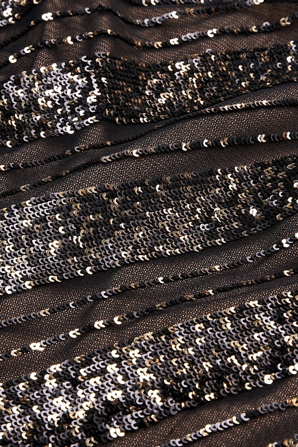 Glittering sequin stripes make this one-shoulder mini a total standout. Designed with a body-hugging silhouette, asymmetrical hem, and soft gathers that accentuate the waist. Just add heels and hoops—this one was made to dance.