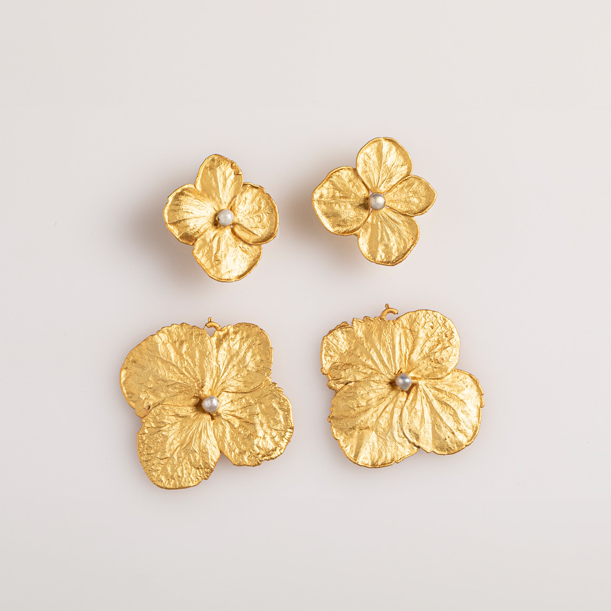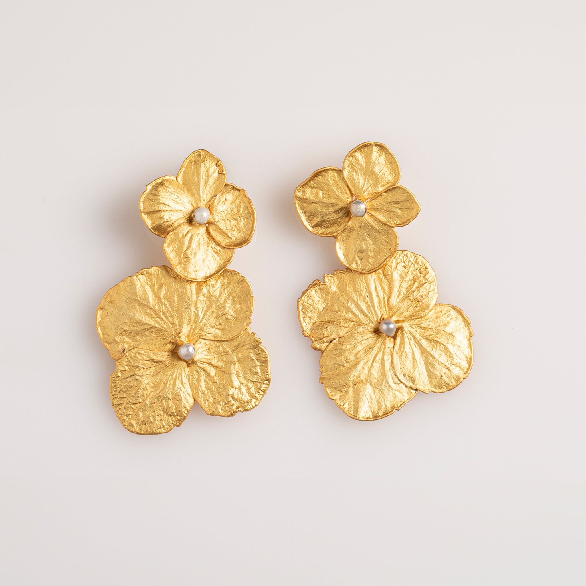 Double Hydrangea and Pearl Earrings