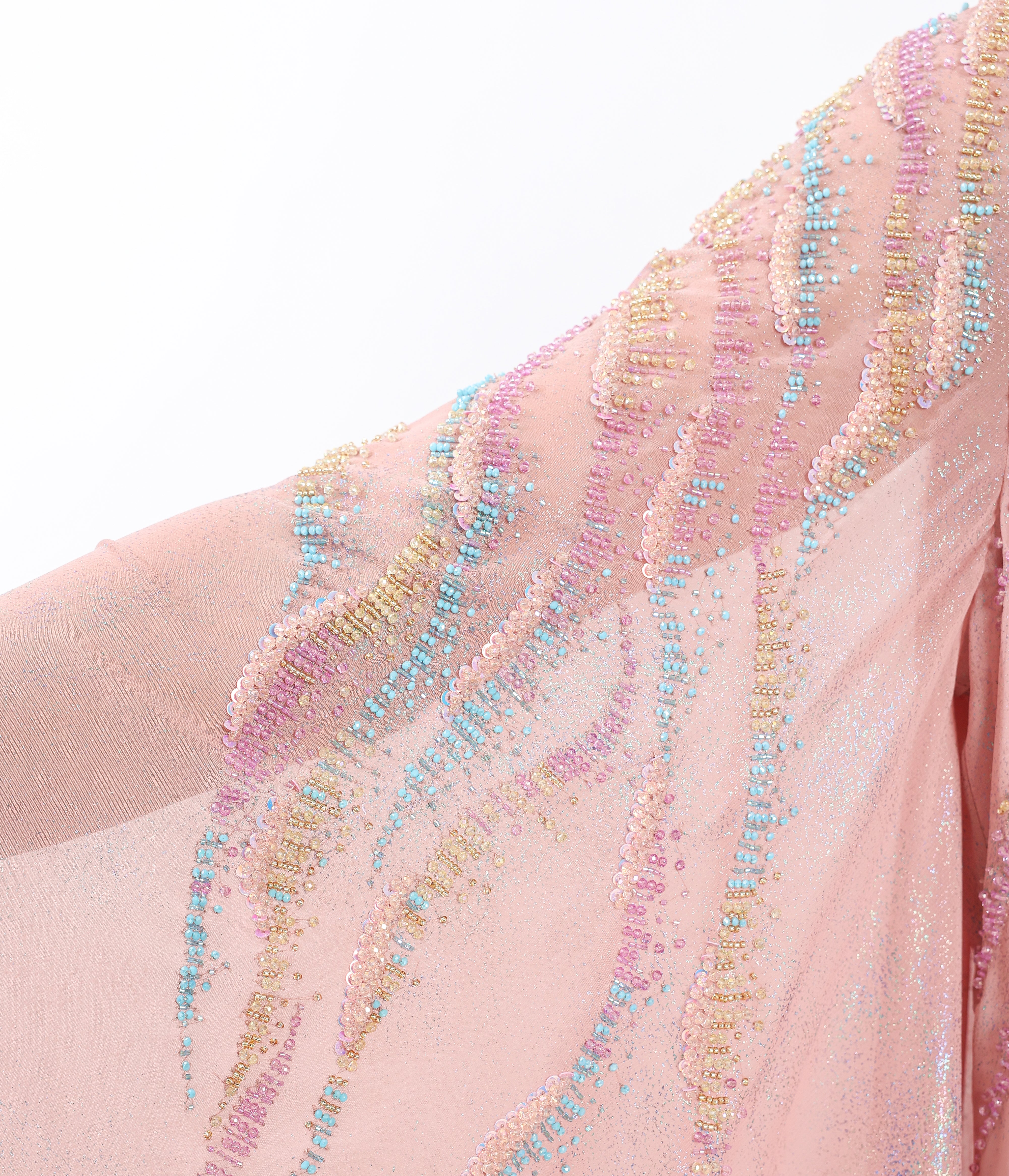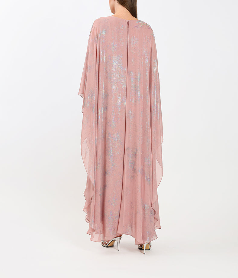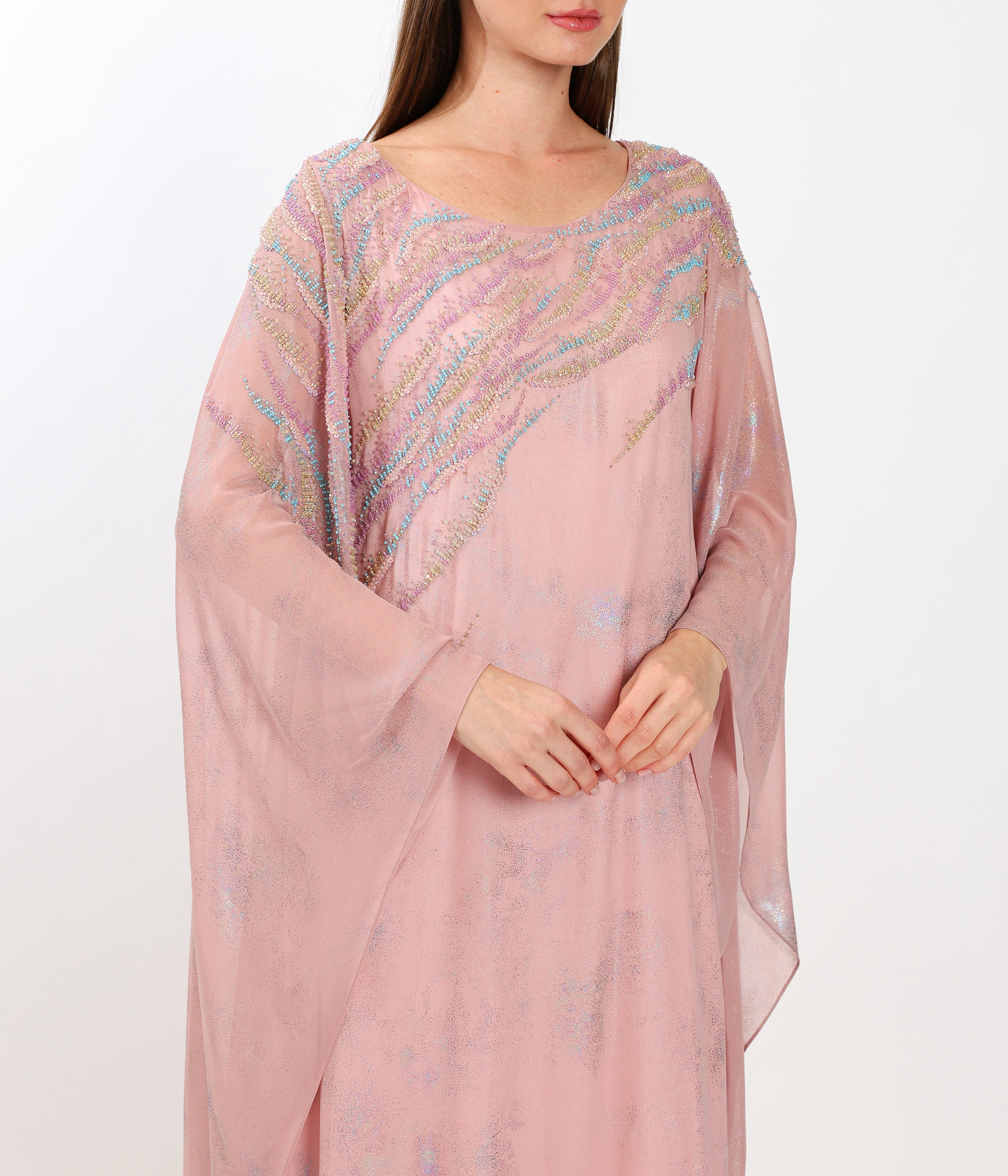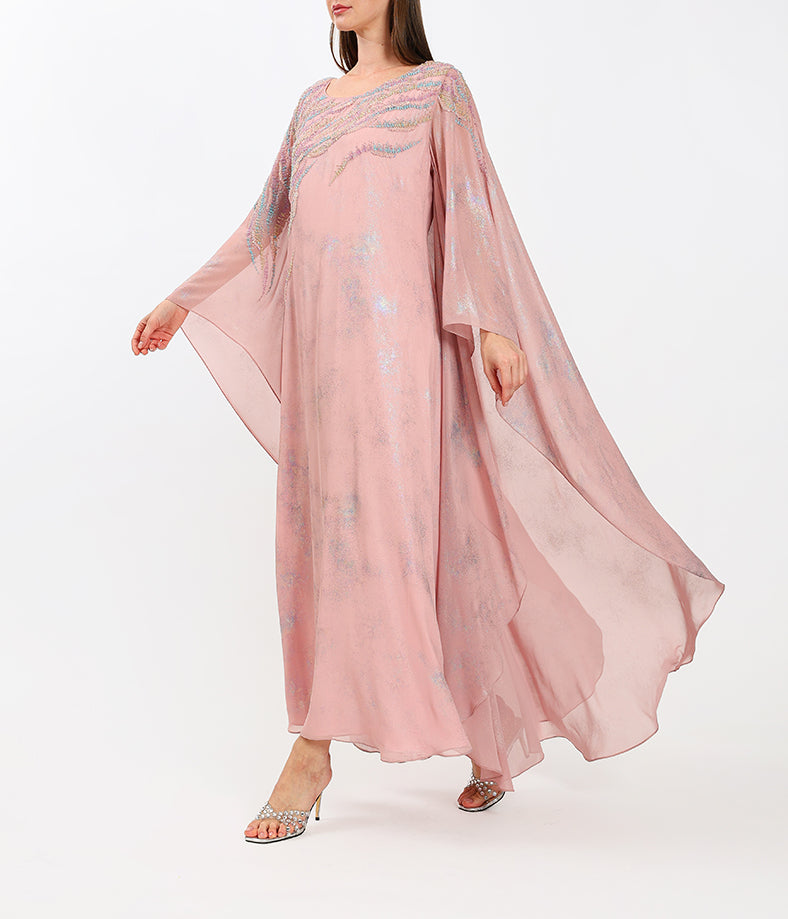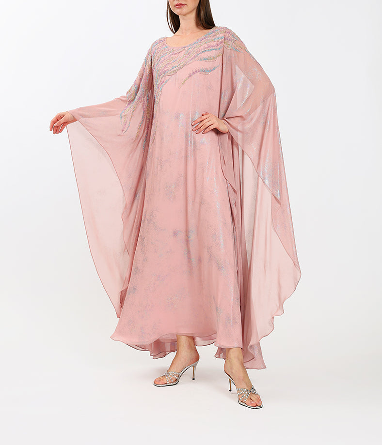 Elegant Pastel Pink Embellished Chiffon Kaftan
