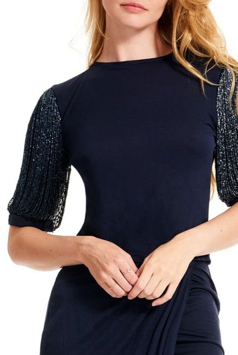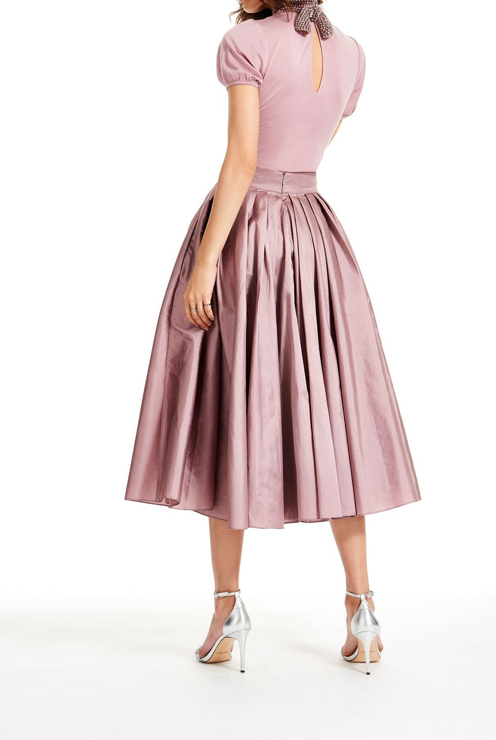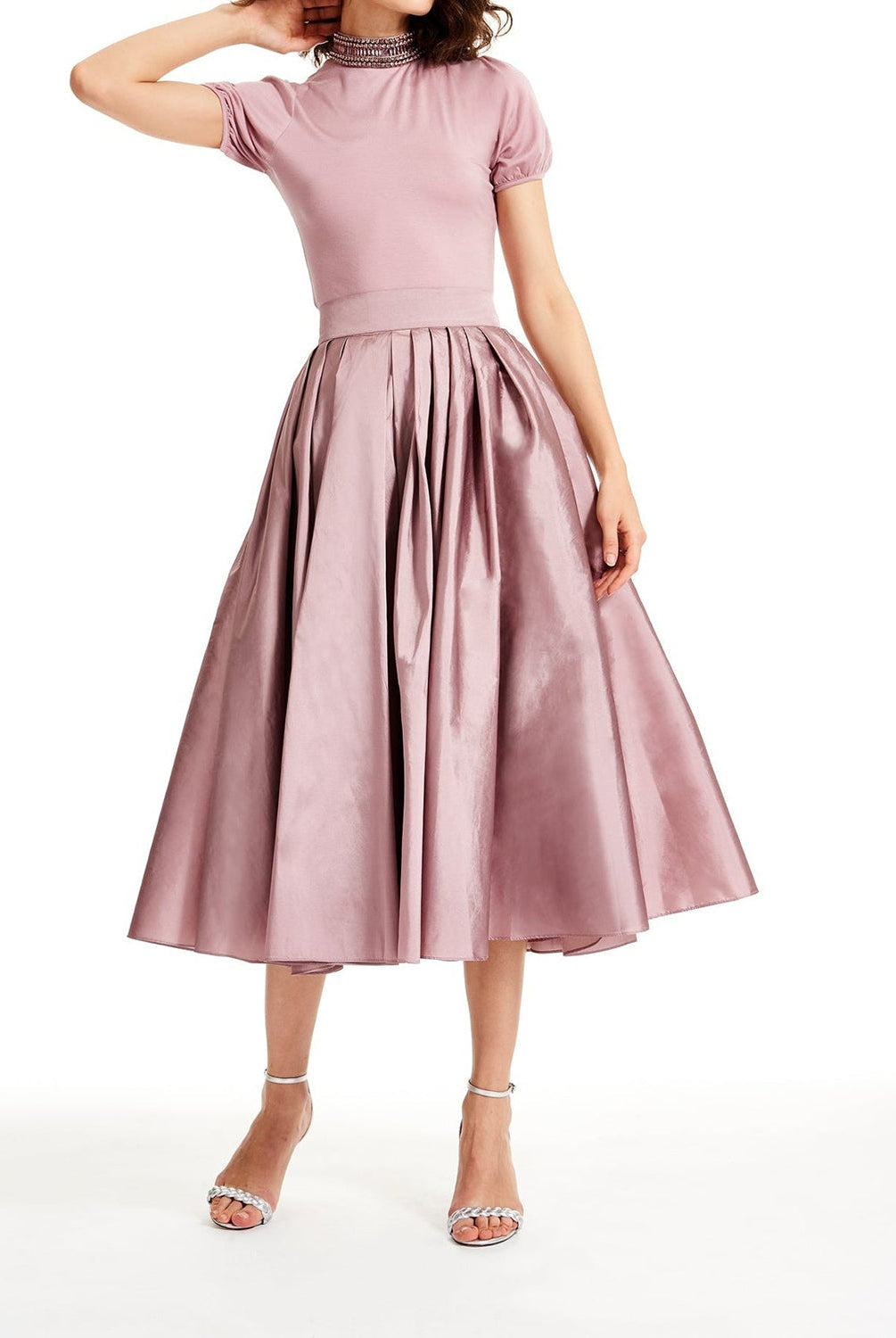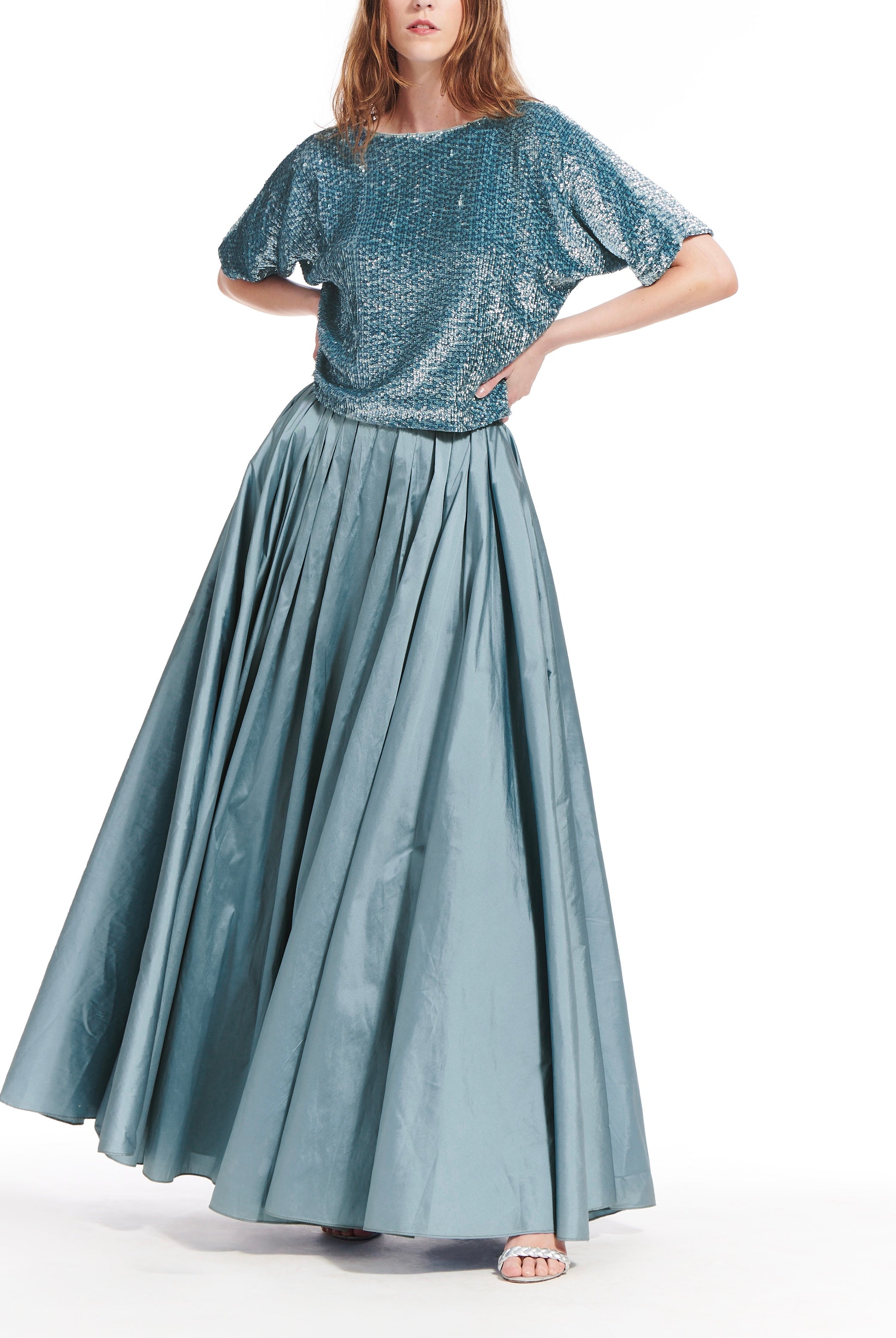 Party skirts in gorgeous taffeta and tees made with tiny pearls or adorned in crystals make dressing up or dressing down easy and always elegant.