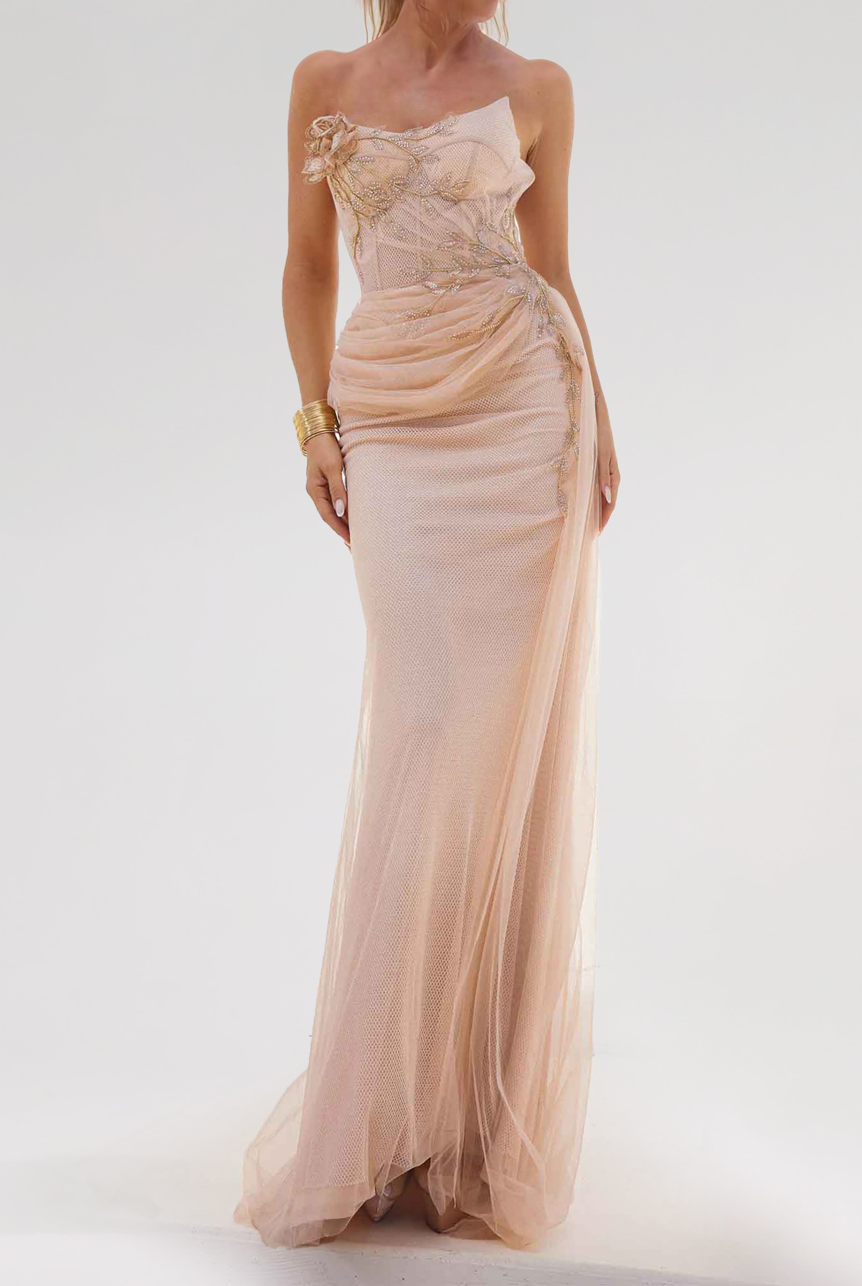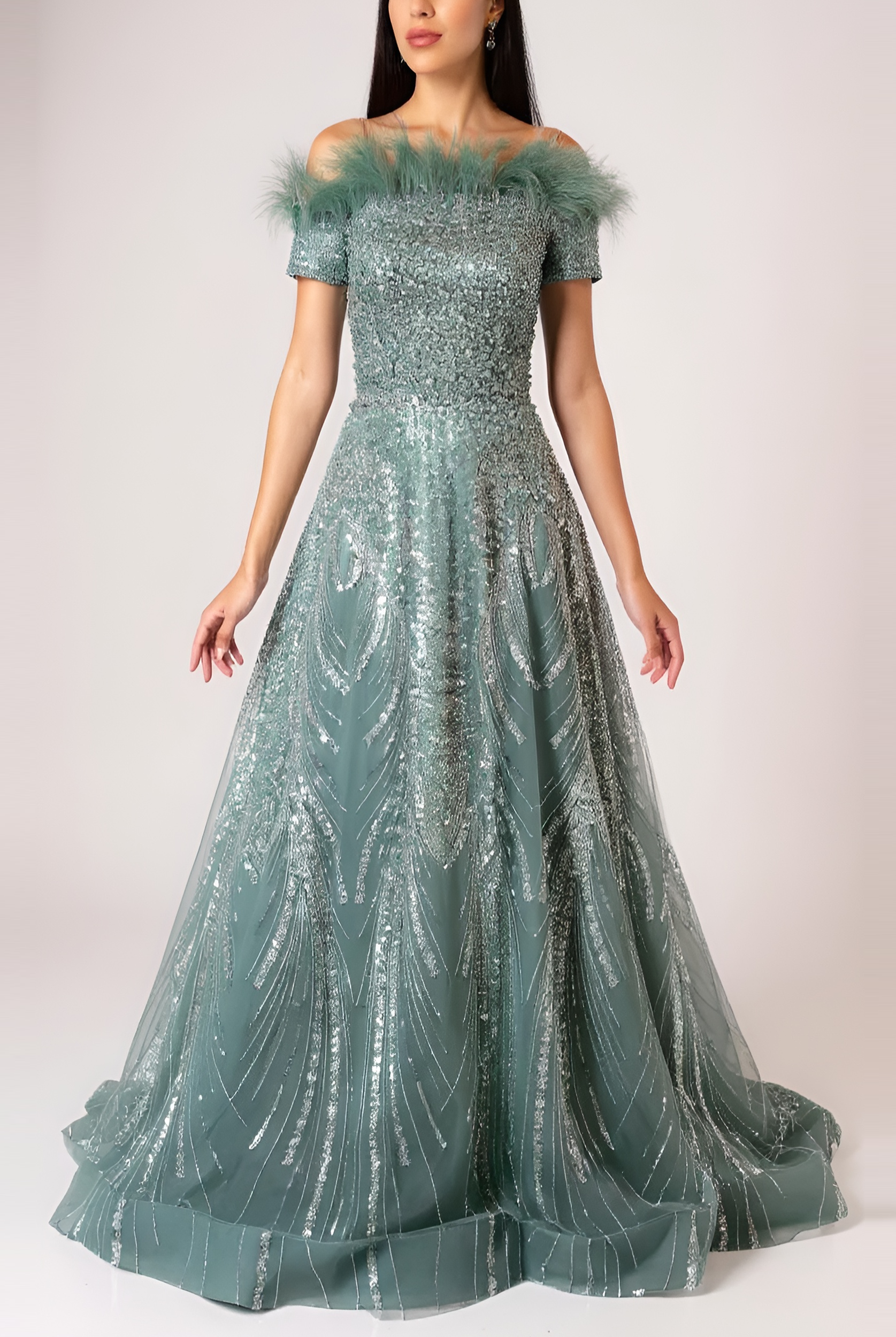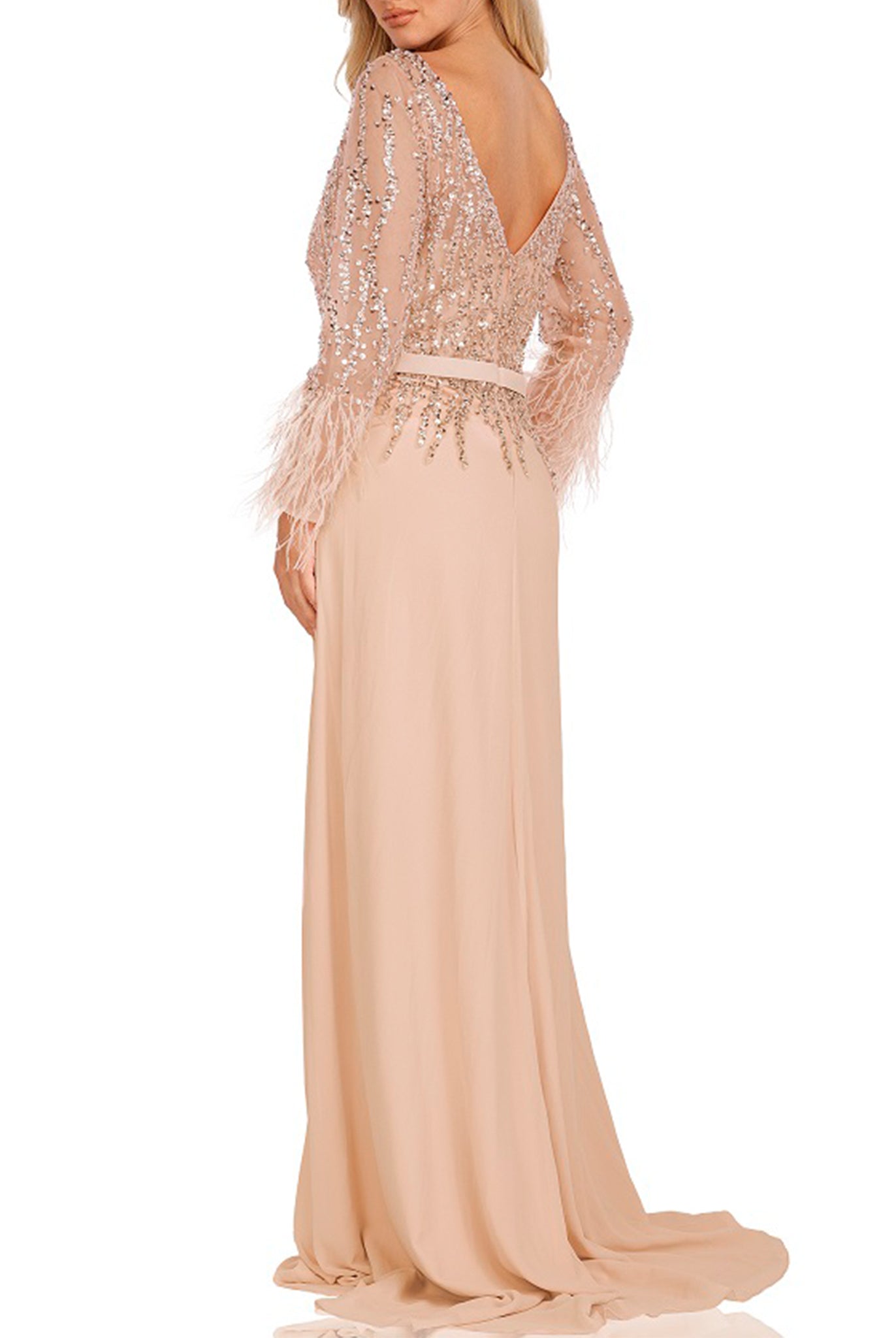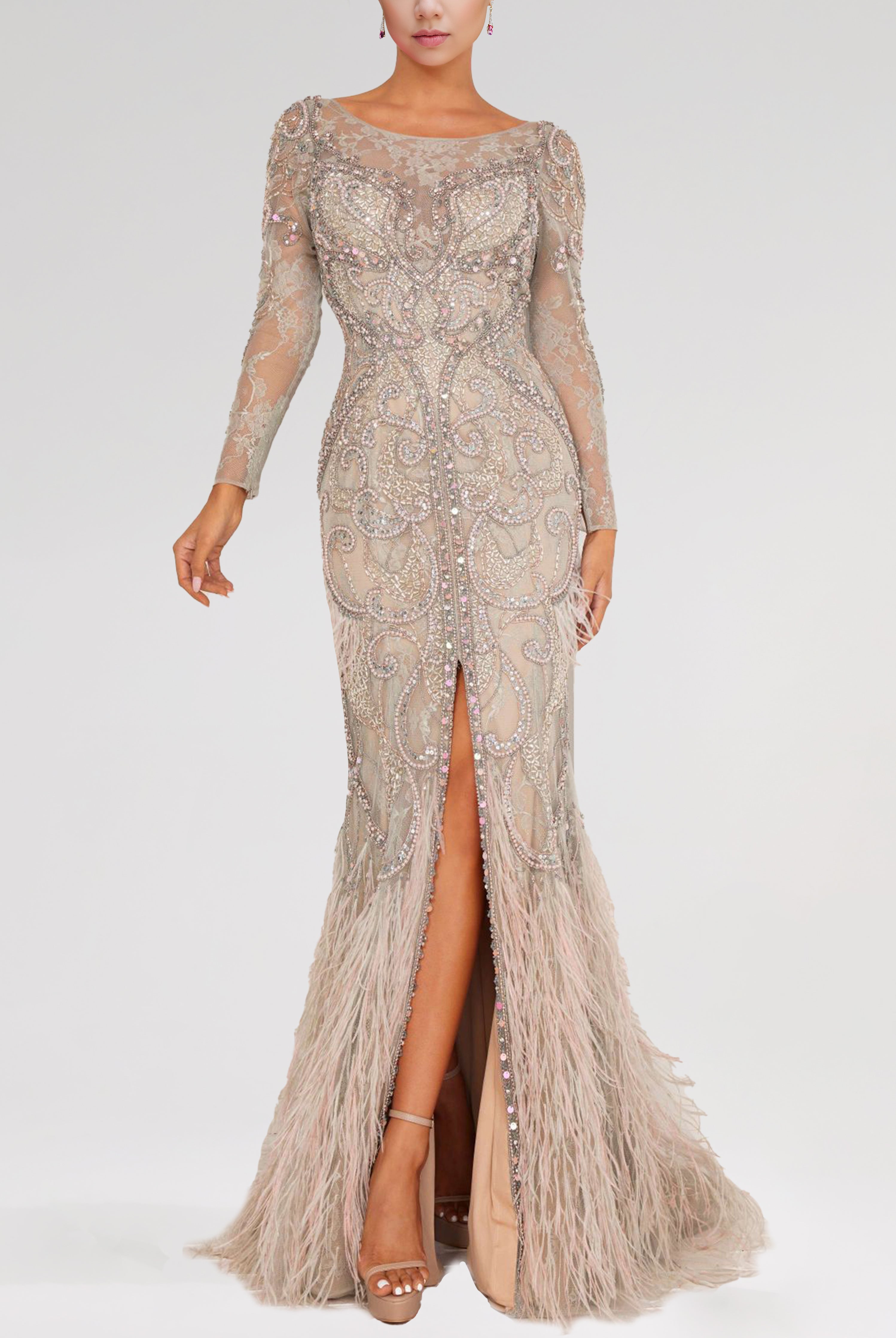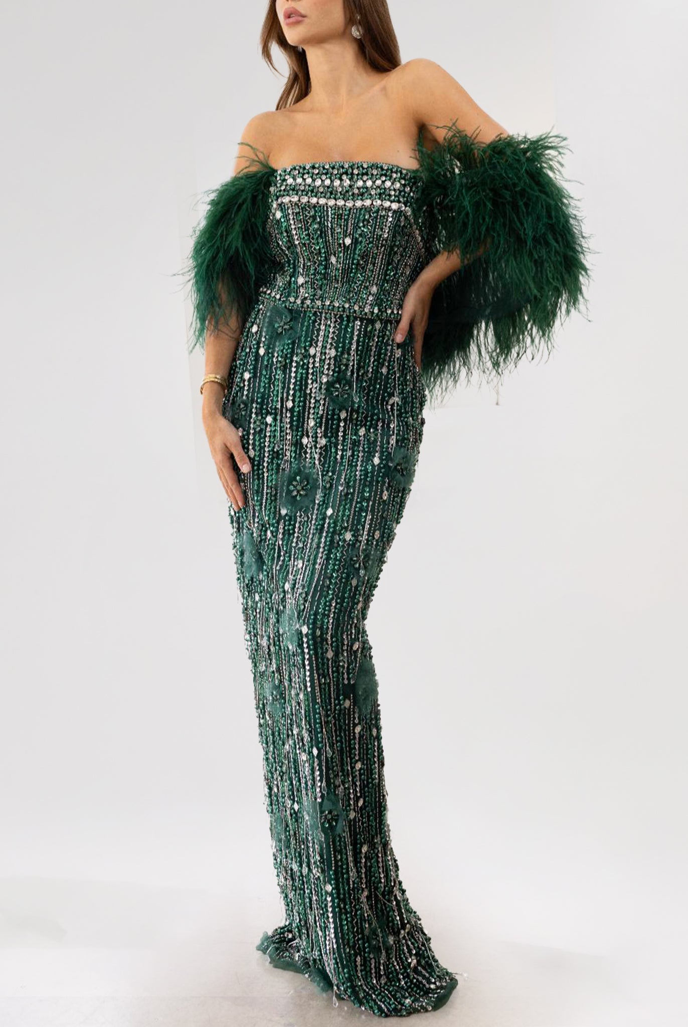 Whether you're looking for a cocktail dress or an evening gown, Elilhaam has got you covered. Their party dresses are made with the finest materials and feature intricate details, such as floral beaded sleeves embellishment and pointed collars, that are sure to make you stand out from the crowd. Shop their latest collection of party dresses today and steal the show at your next event!