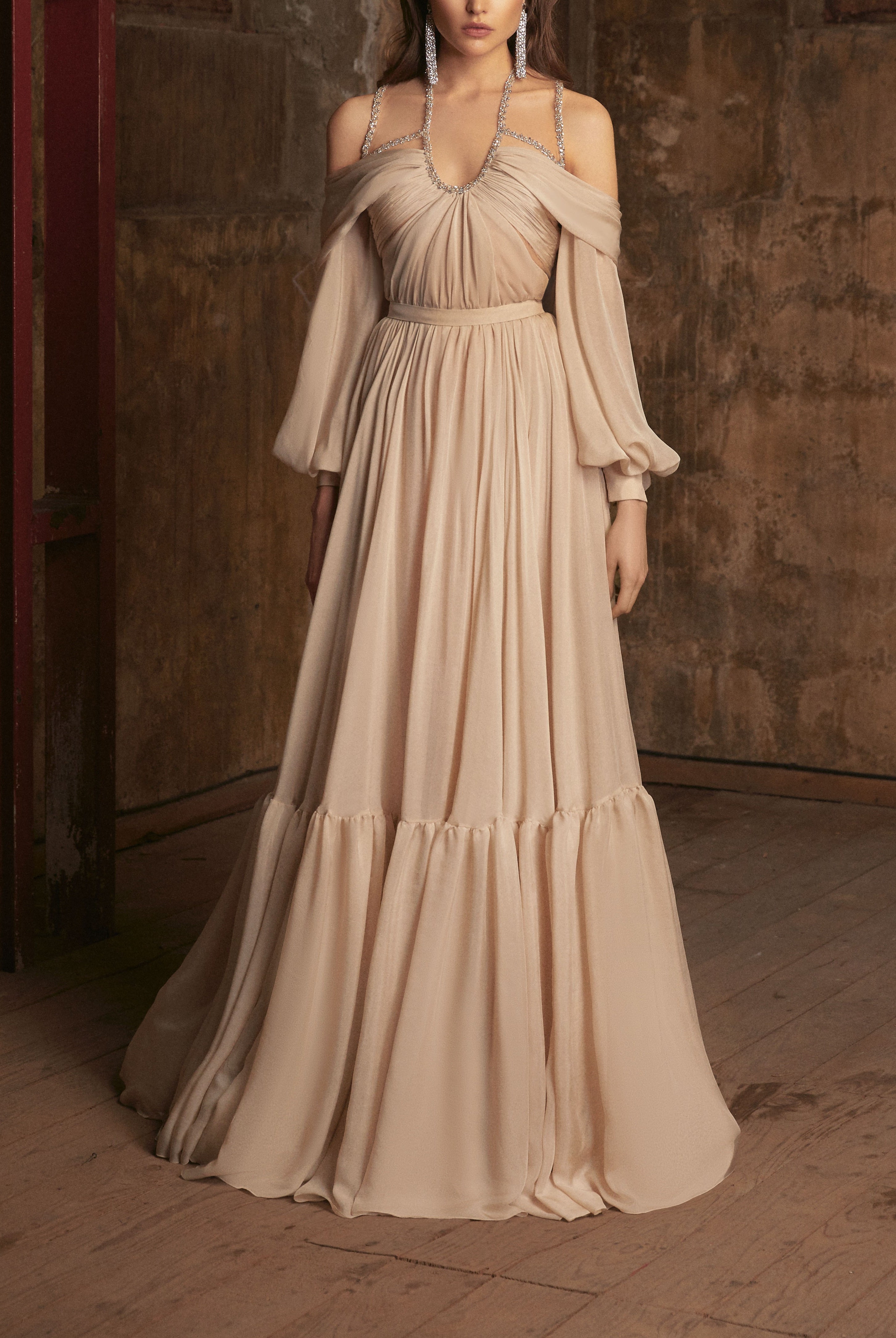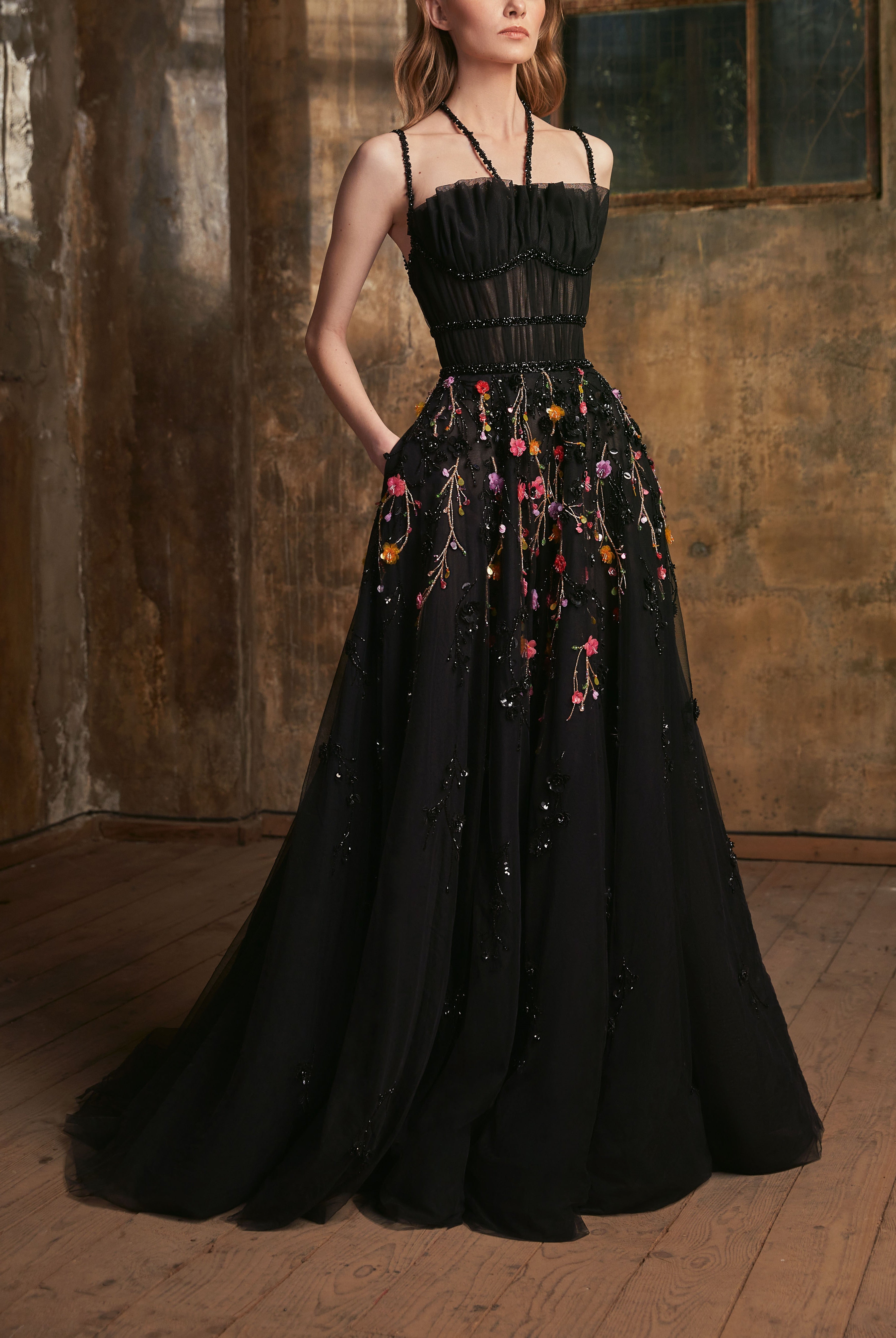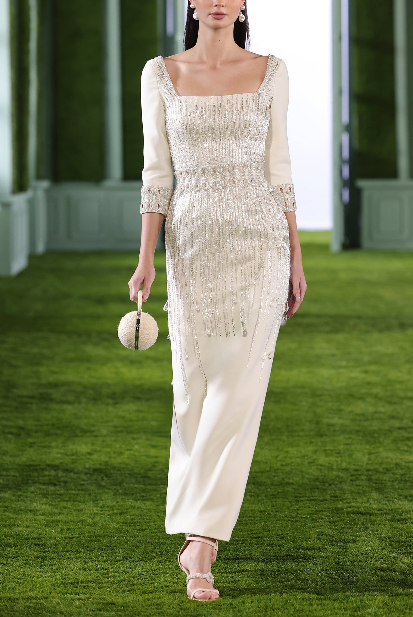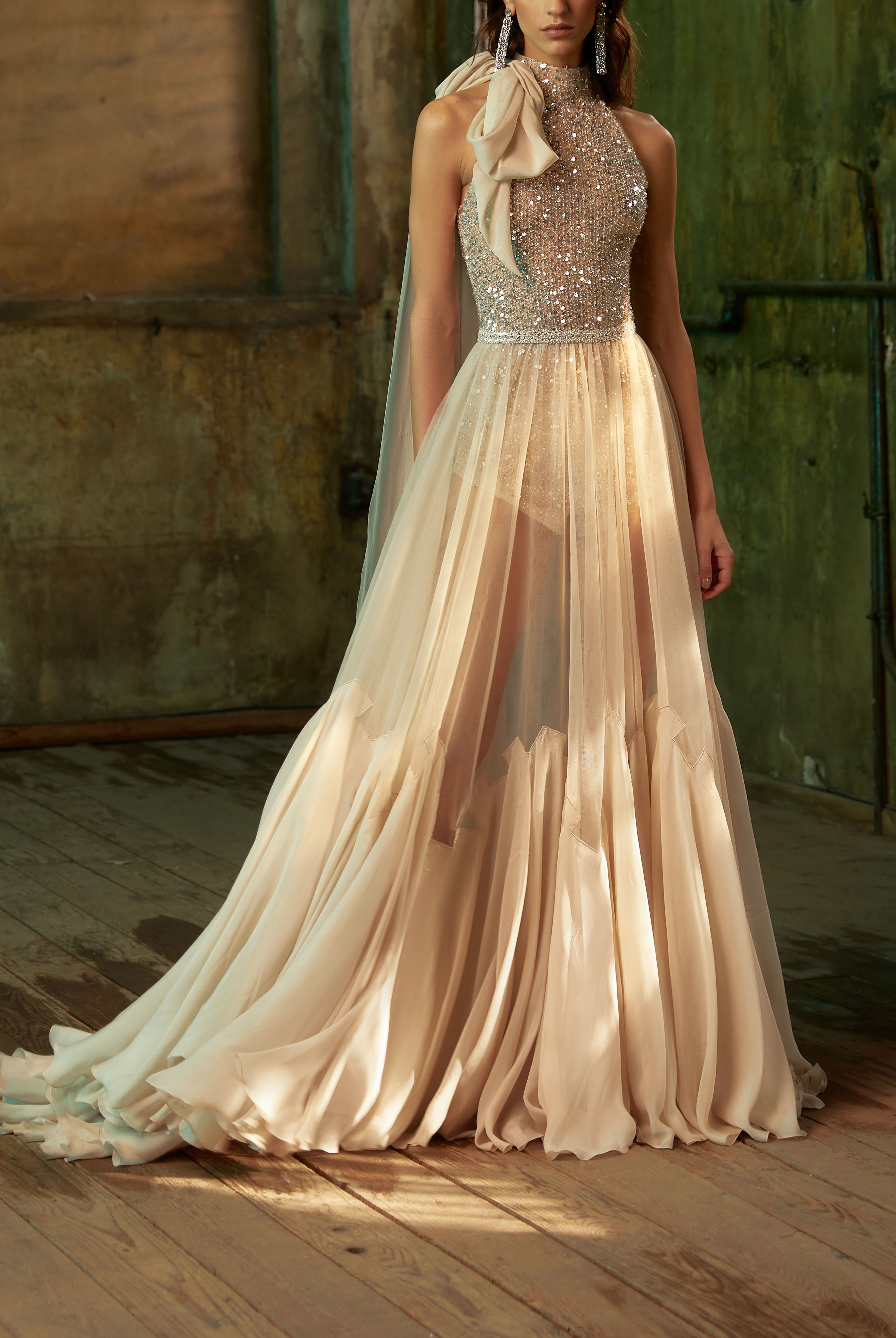 Whether you're looking for a cocktail dress or an evening gown, Elilhaam has got you covered. Their party dresses are made with the finest materials and feature intricate details, such as floral beaded sleeves embellishment and pointed collars, that are sure to make you stand out from the crowd. Shop their latest collection of party dresses today and steal the show at your next event!
