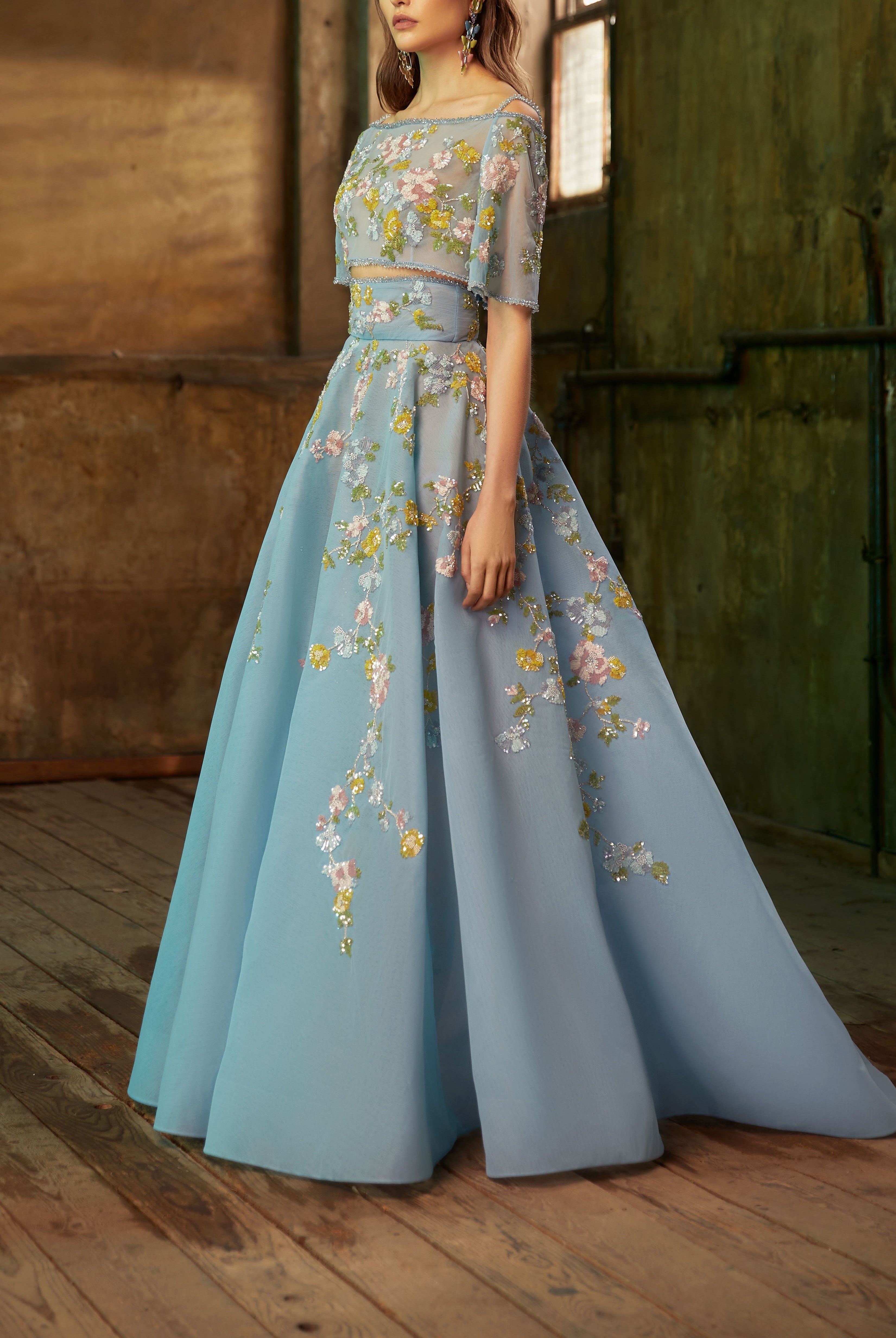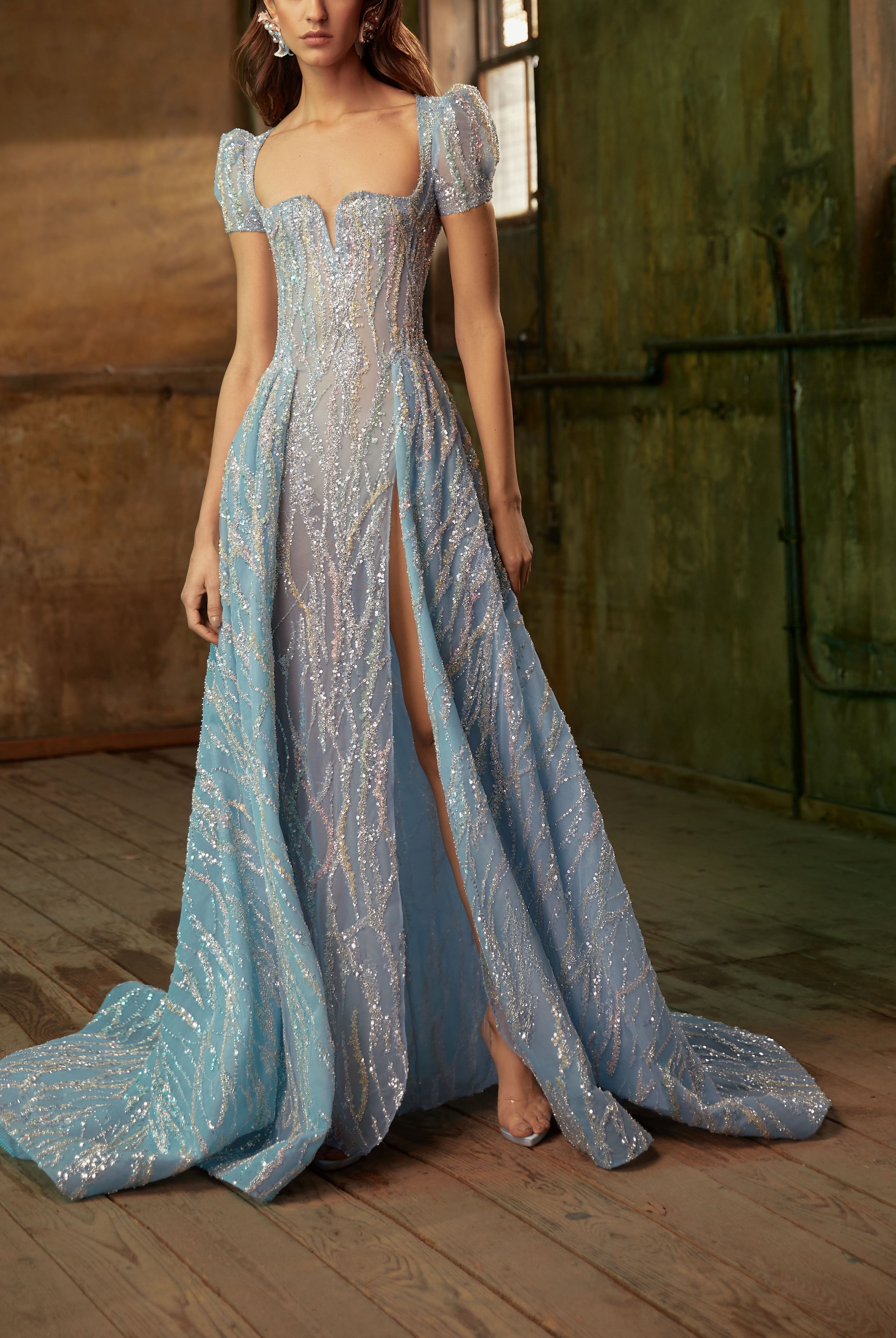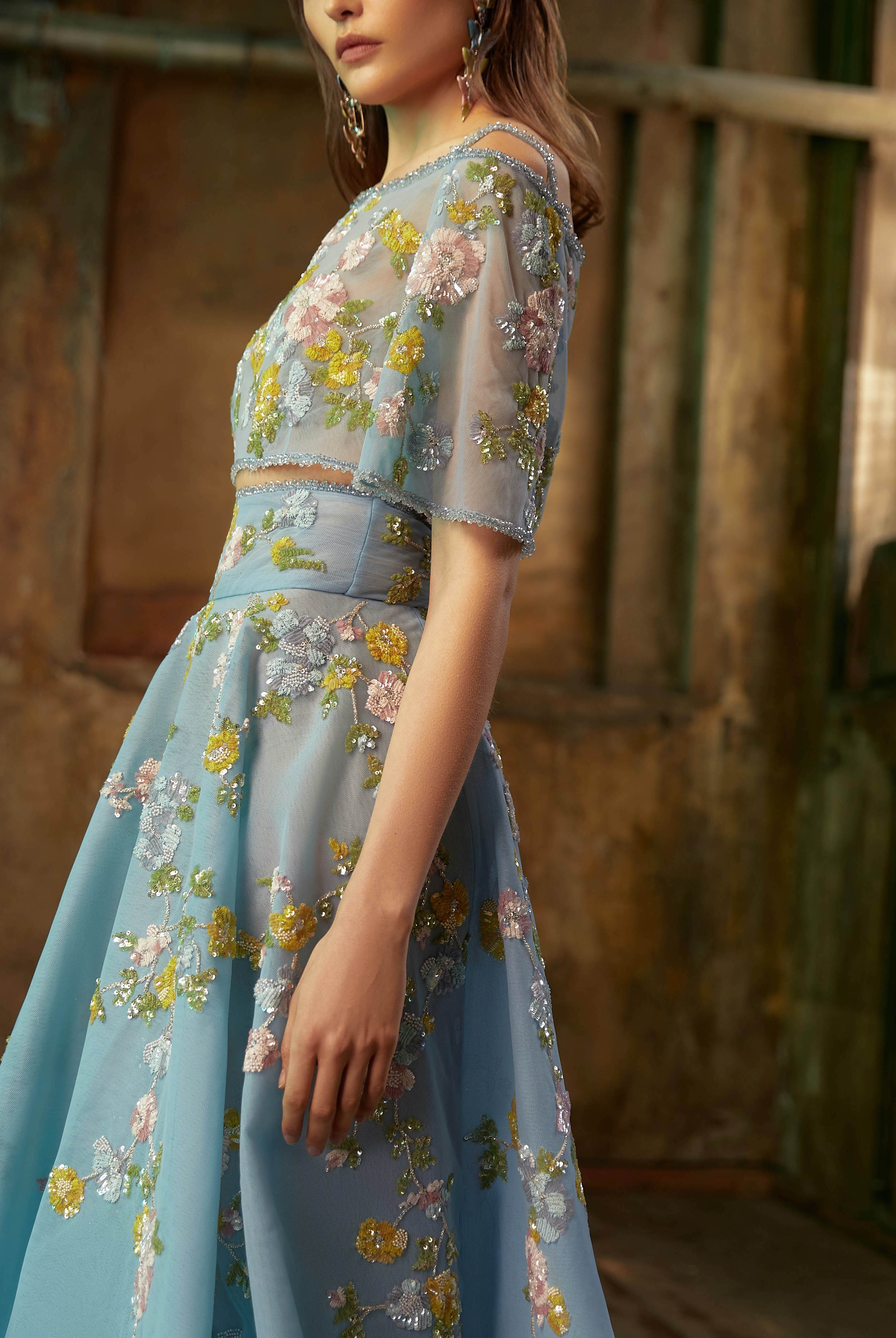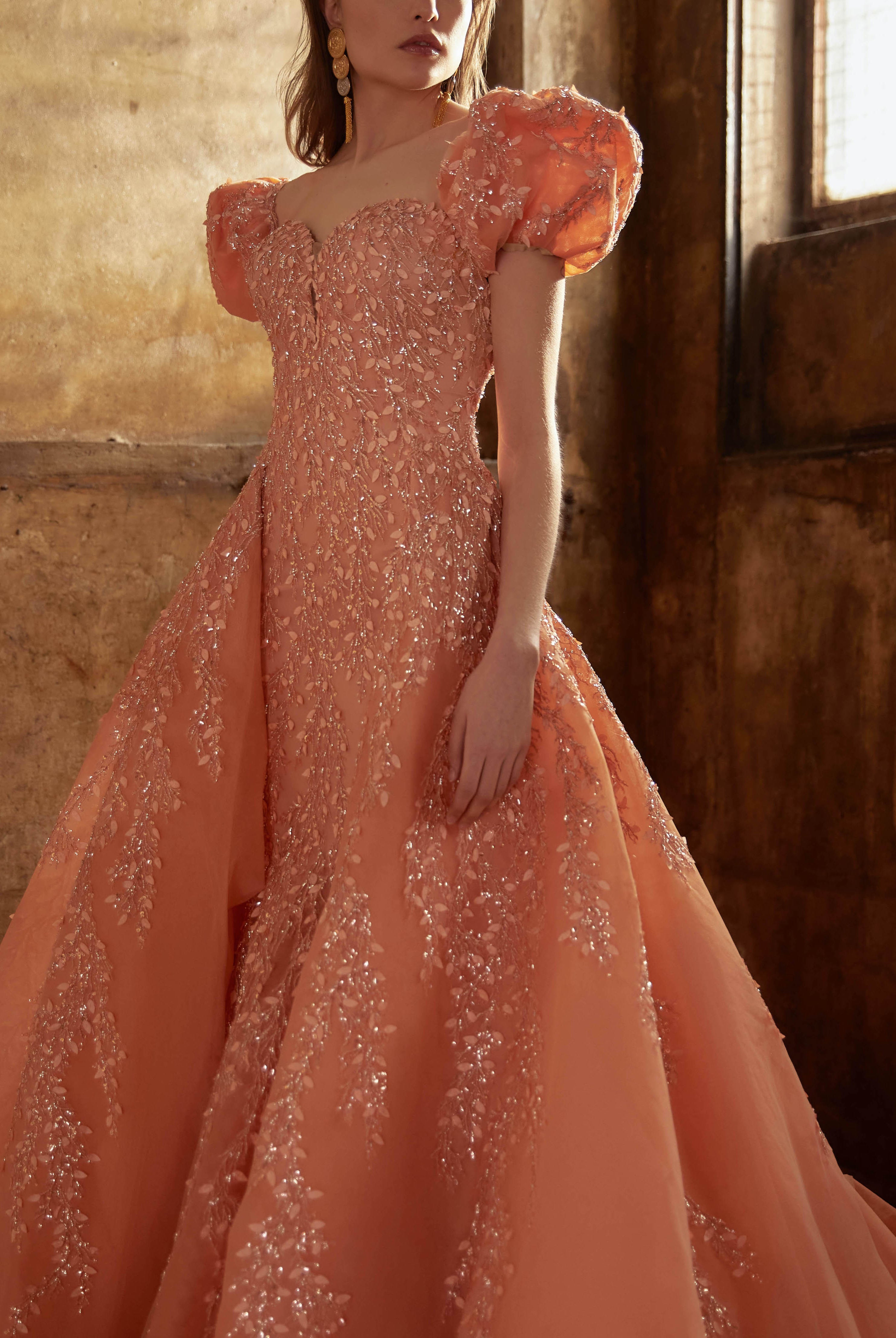 Whether you're looking for a cocktail dress or an evening gown, Elilhaam has got you covered. Their party dresses are made with the finest materials and feature intricate details, such as floral beaded sleeves embellishment and pointed collars, that are sure to make you stand out from the crowd. Shop their latest collection of party dresses today and steal the show at your next event!