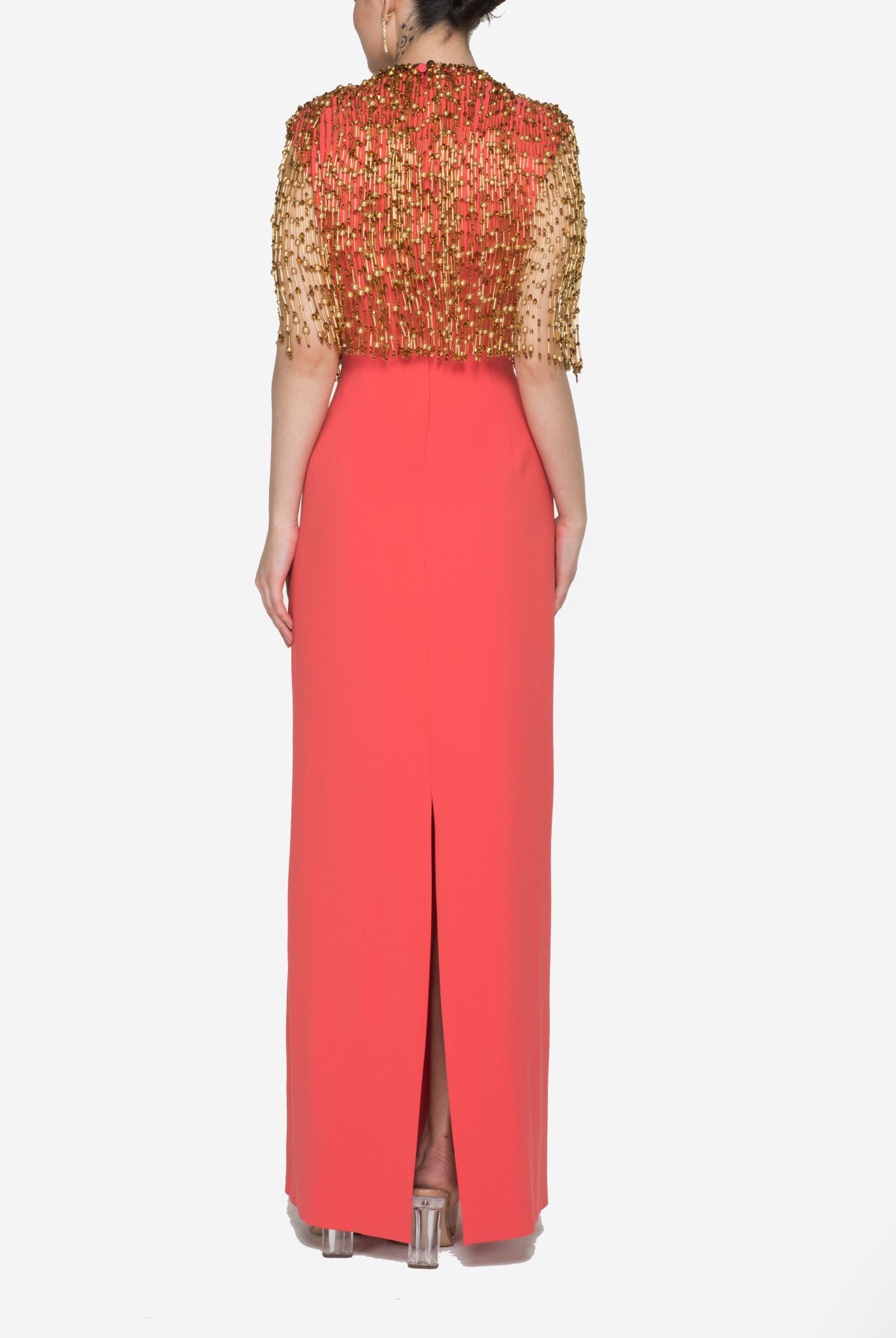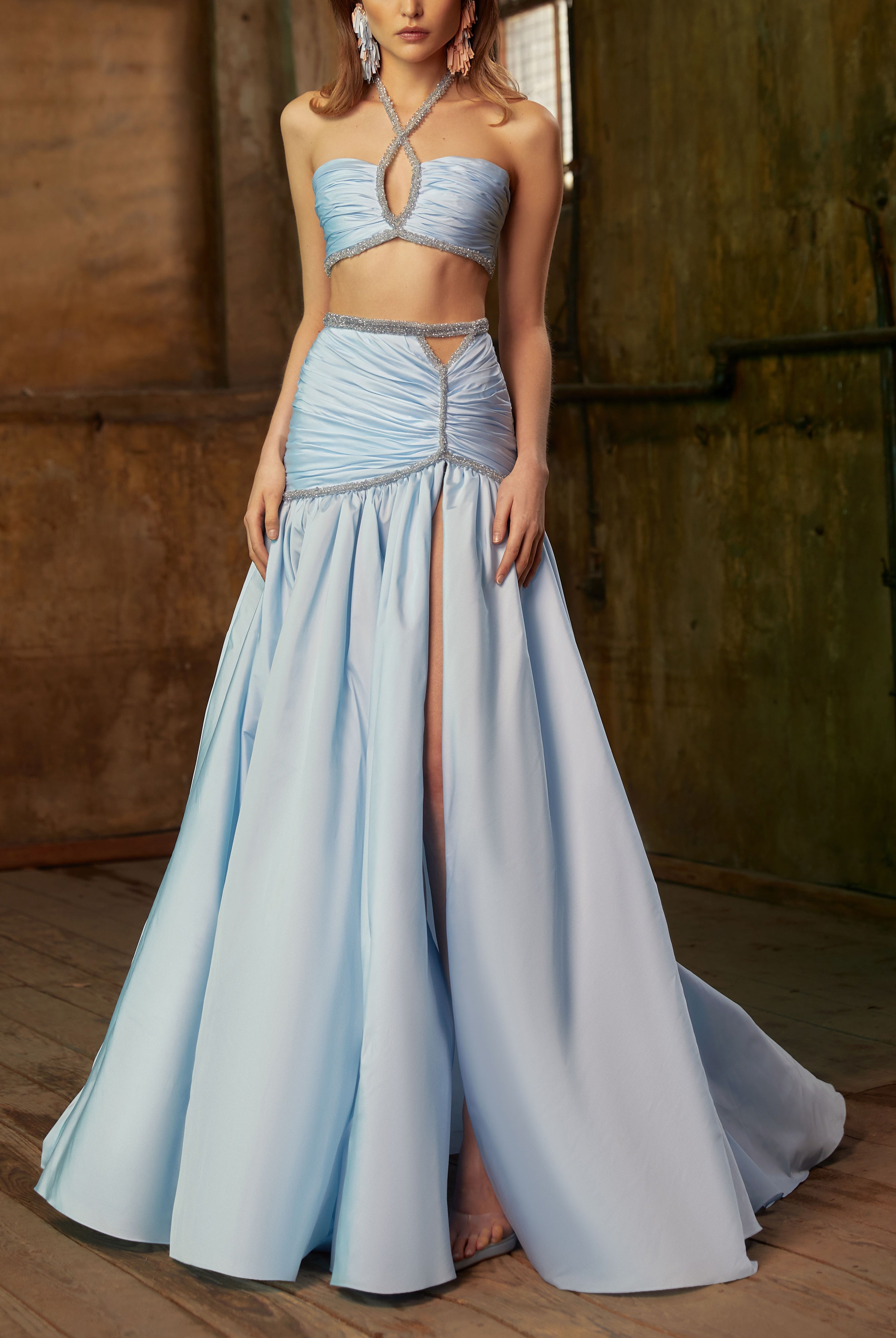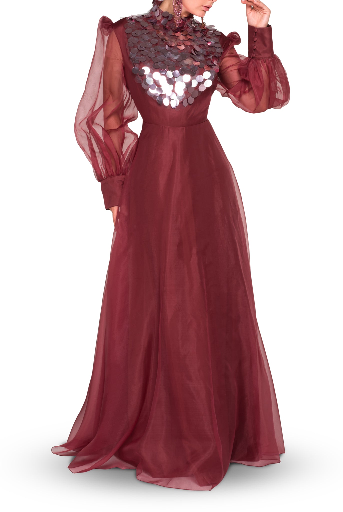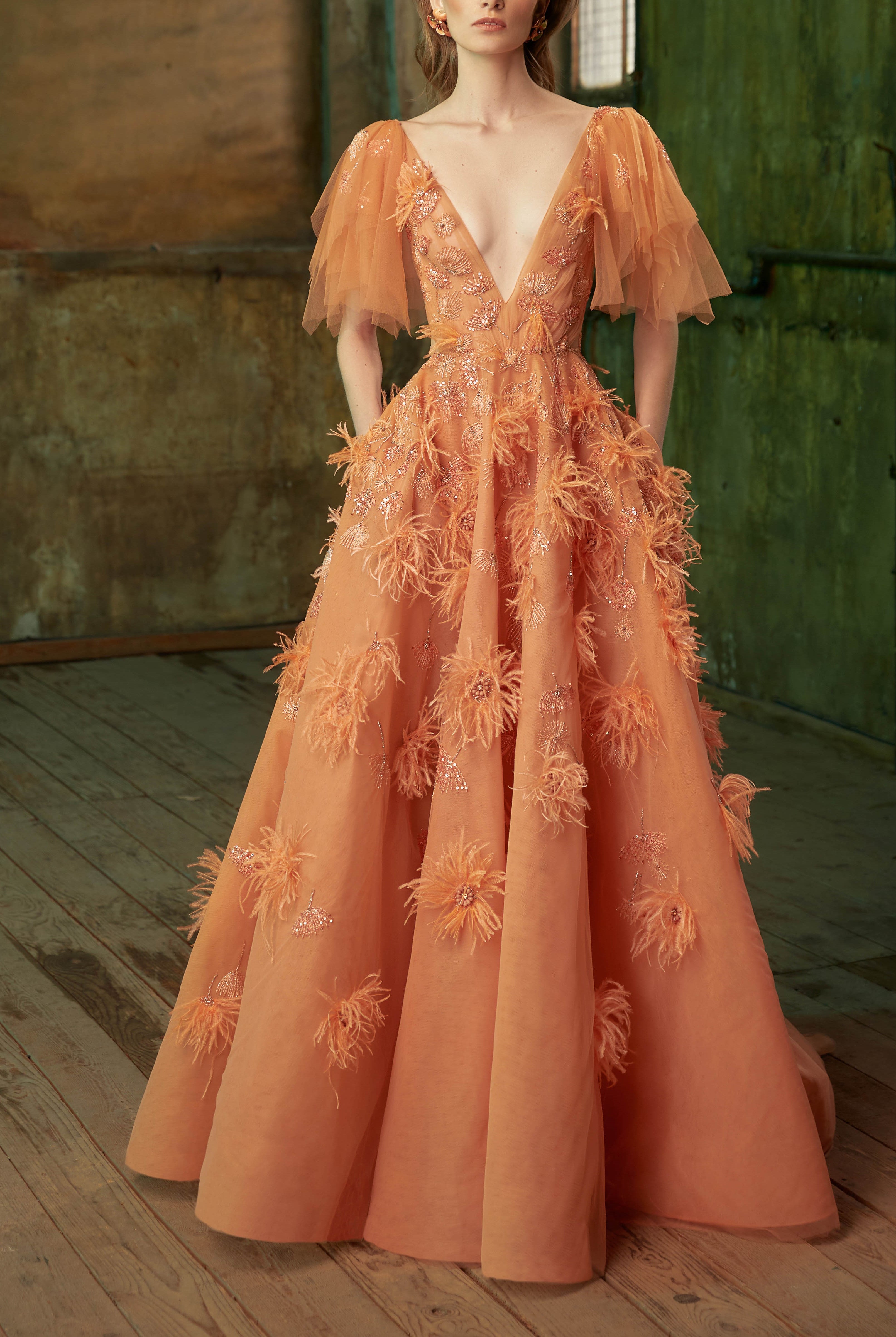 Whether you're looking for a cocktail dress or an evening gown, Elilhaam has got you covered. Their party dresses are made with the finest materials and feature intricate details, such as floral beaded sleeves embellishment and pointed collars, that are sure to make you stand out from the crowd. Shop their latest collection of party dresses today and steal the show at your next event!