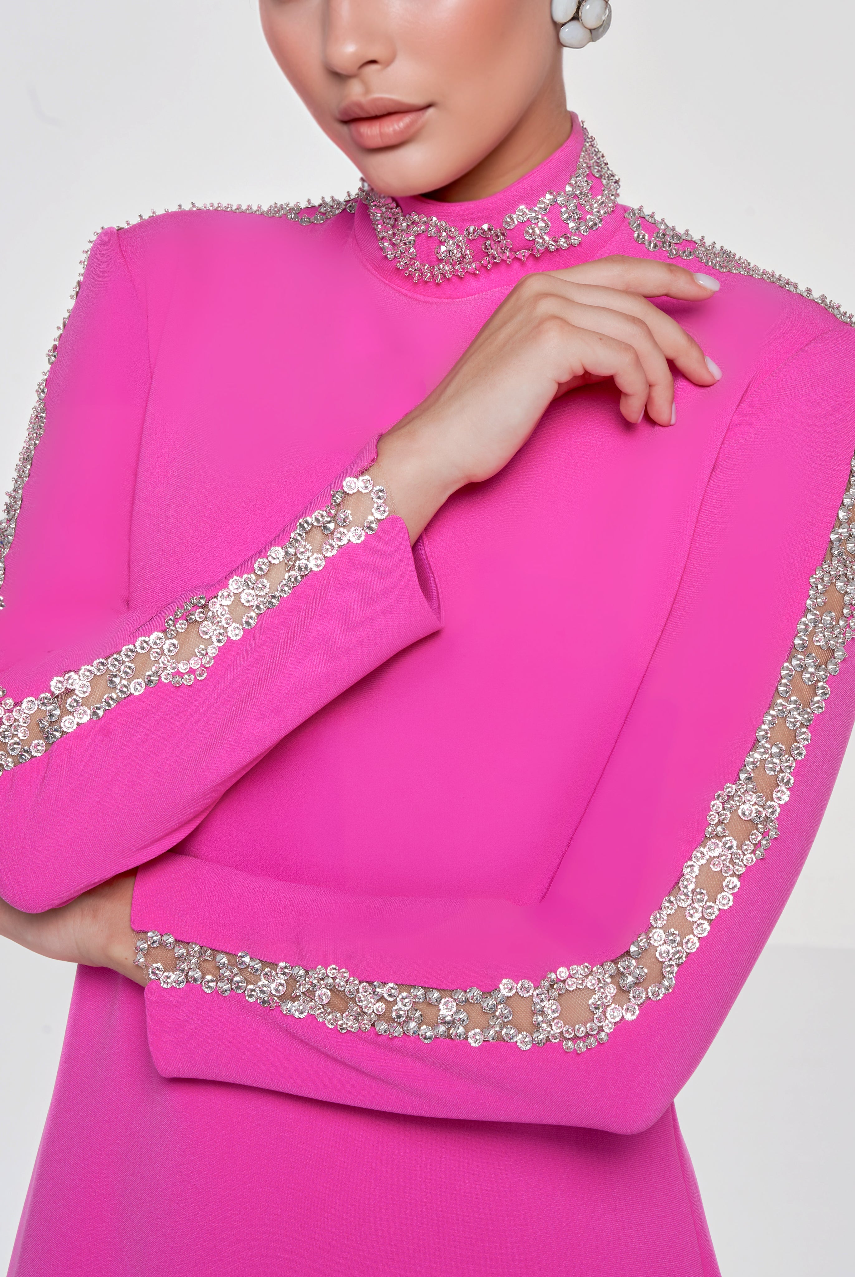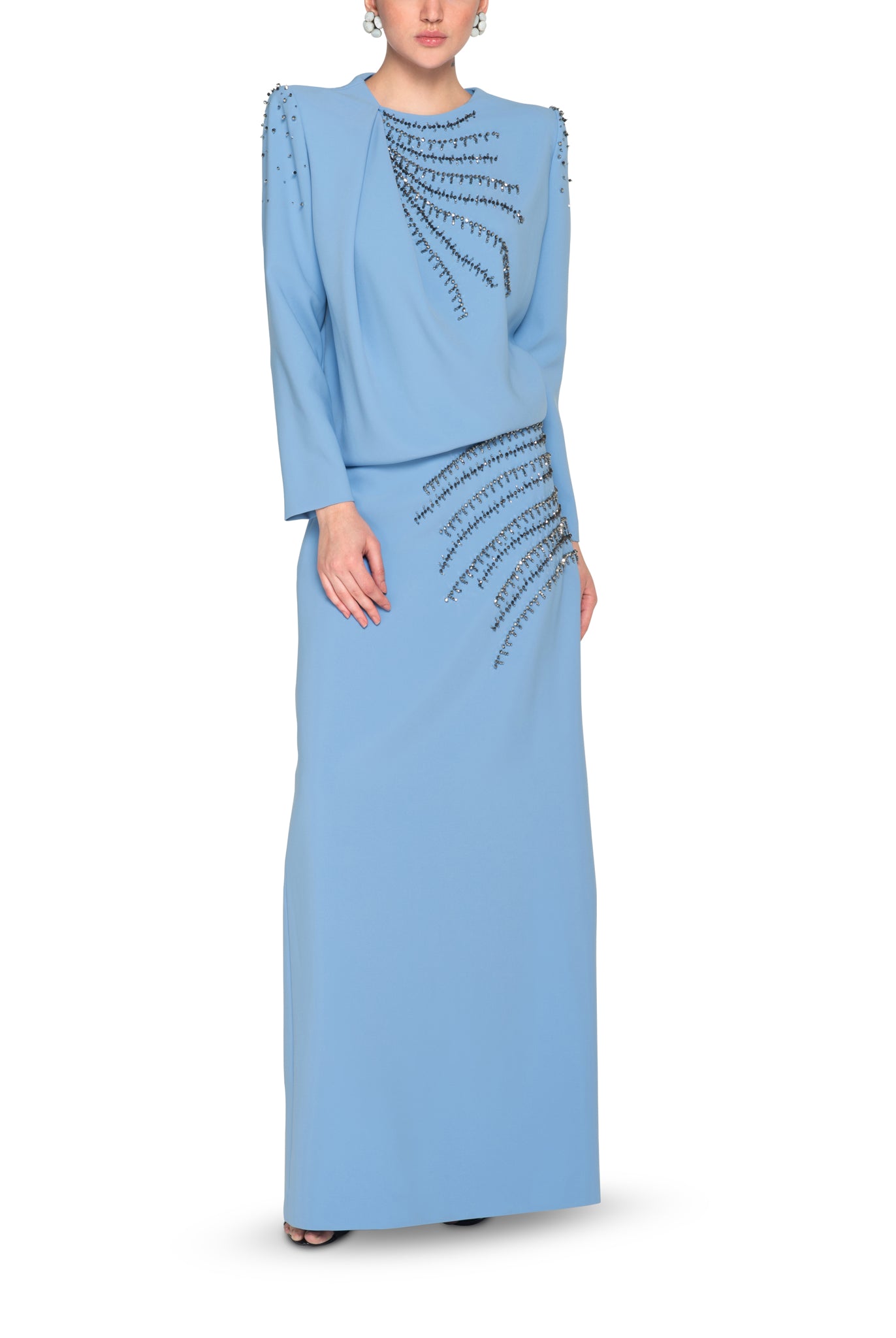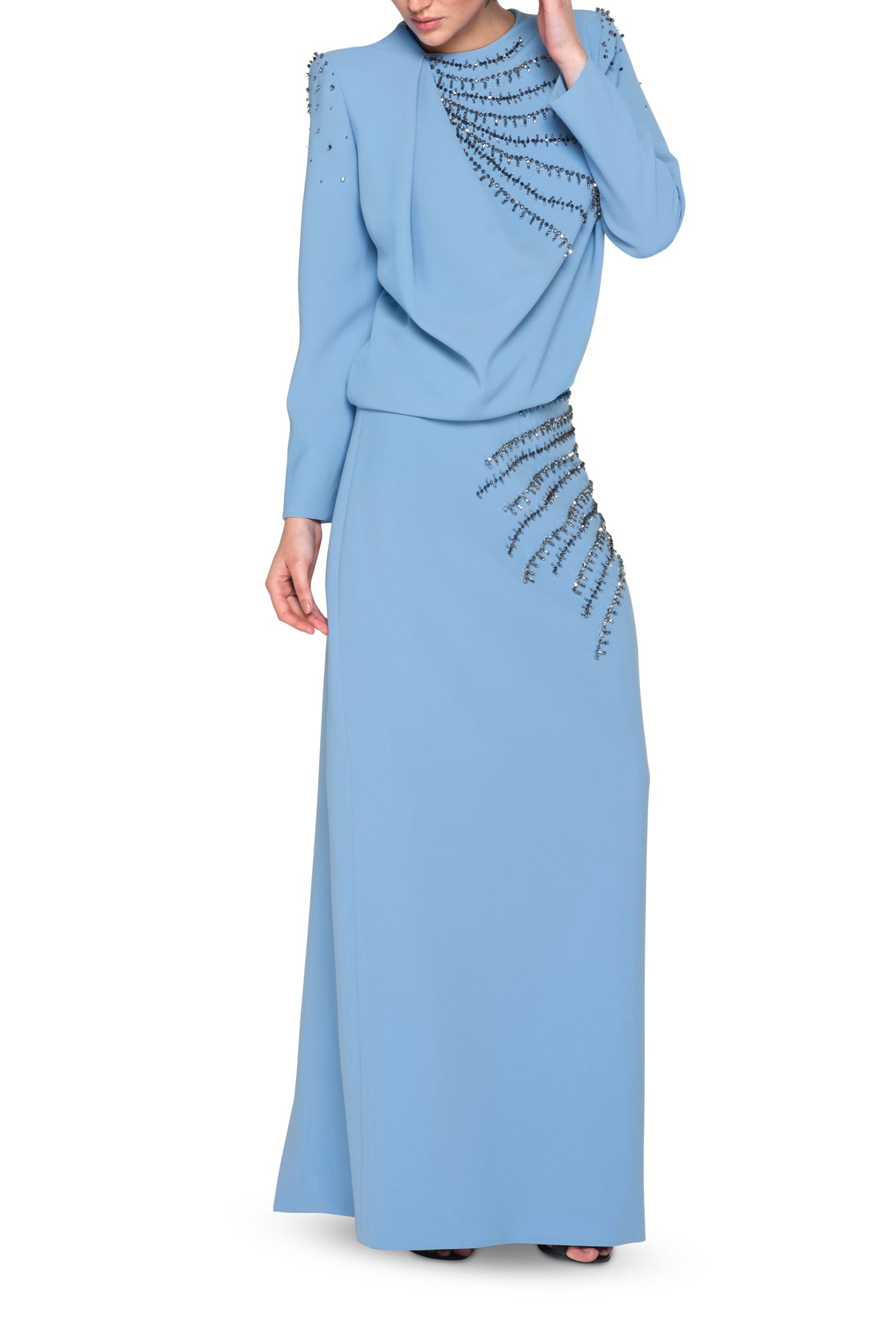 Whether you're looking for a cocktail dress or an evening gown, Elilhaam has got you covered. Their party dresses are made with the finest materials and feature intricate details, such as floral beaded sleeves embellishment and pointed collars, that are sure to make you stand out from the crowd. Shop their latest collection of party dresses today and steal the show at your next event!