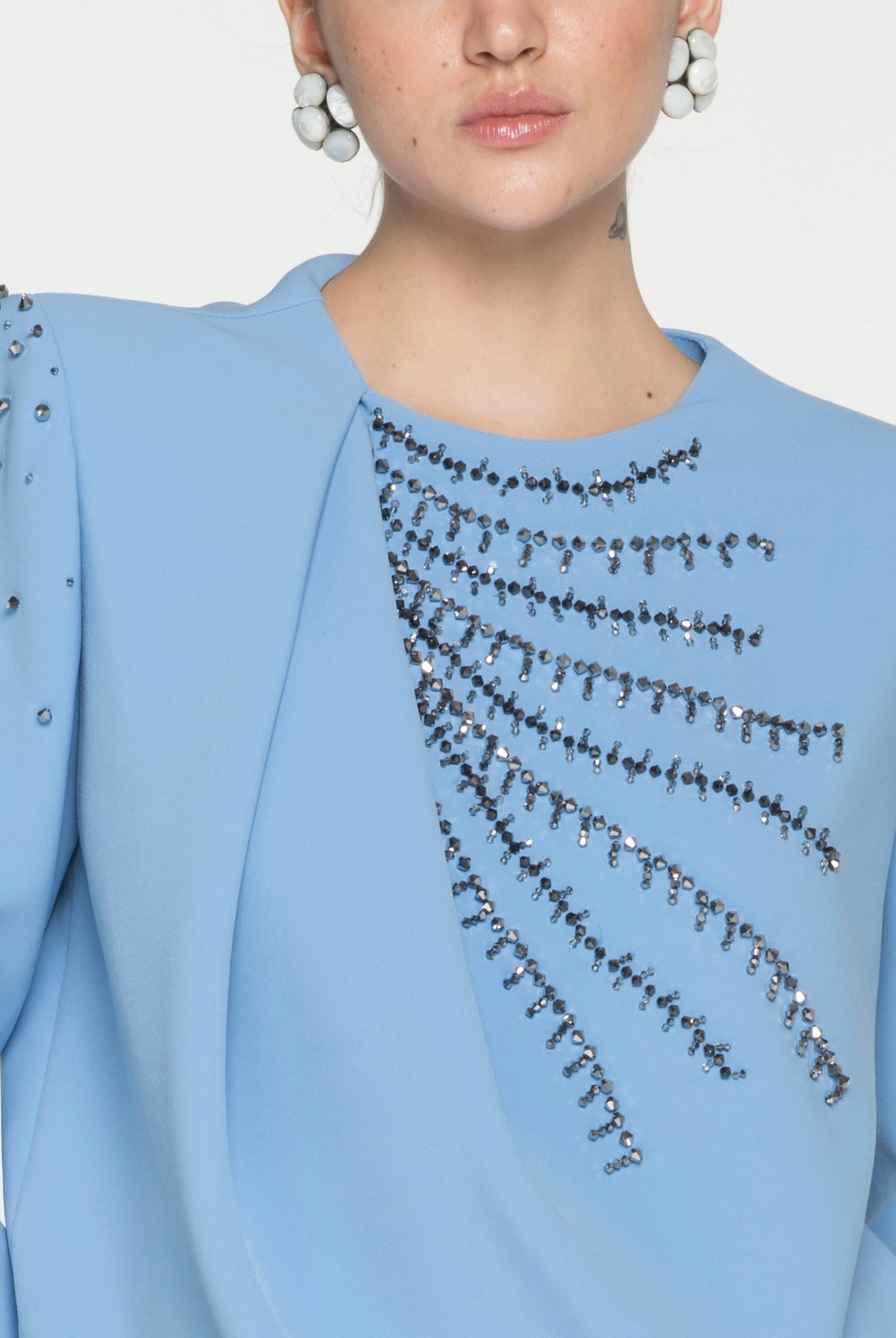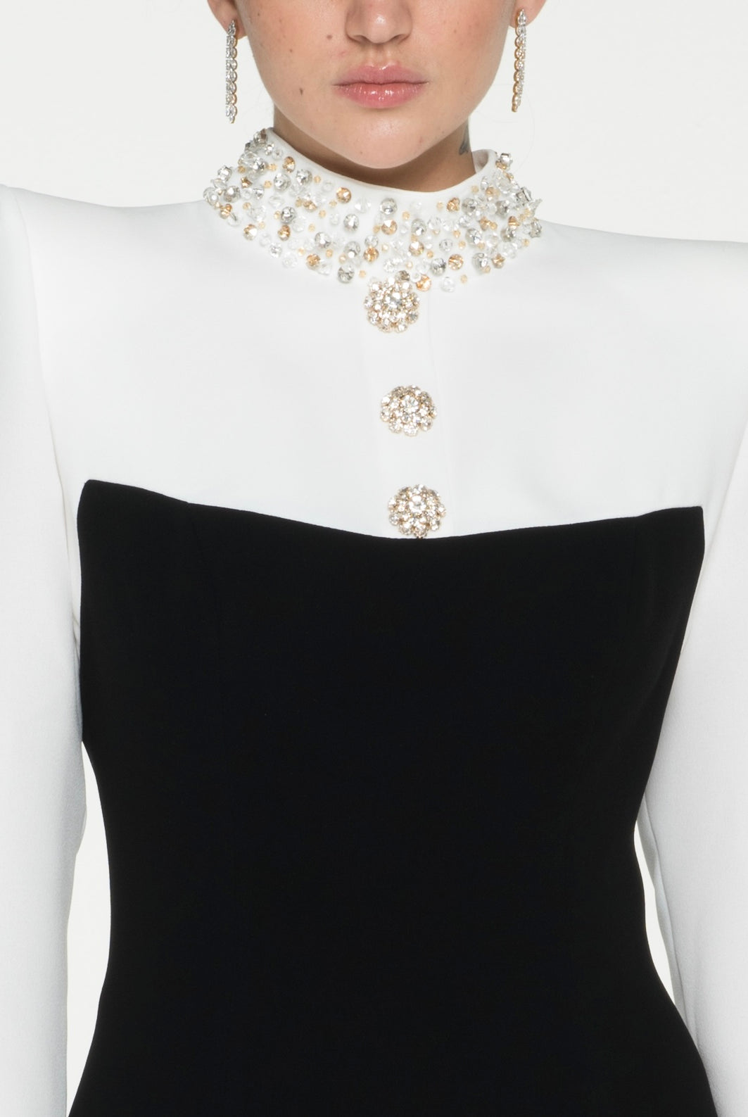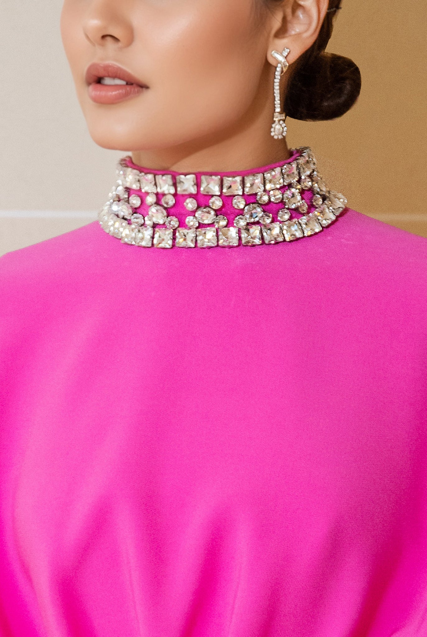 Whether you're looking for a cocktail dress or an evening gown, Elilhaam has got you covered. Their party dresses are made with the finest materials and feature intricate details, such as floral beaded sleeves embellishment and pointed collars, that are sure to make you stand out from the crowd. Shop their latest collection of party dresses today and steal the show at your next event!