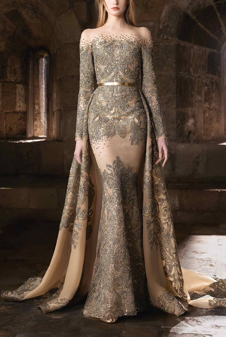 Whether you're looking for a cocktail dress or an evening gown, Elilhaam has got you covered. Their party dresses are made with the finest materials and feature intricate details, such as floral beaded sleeves embellishment and pointed collars, that are sure to make you stand out from the crowd. Shop their latest collection of party dresses today and steal the show at your next event!