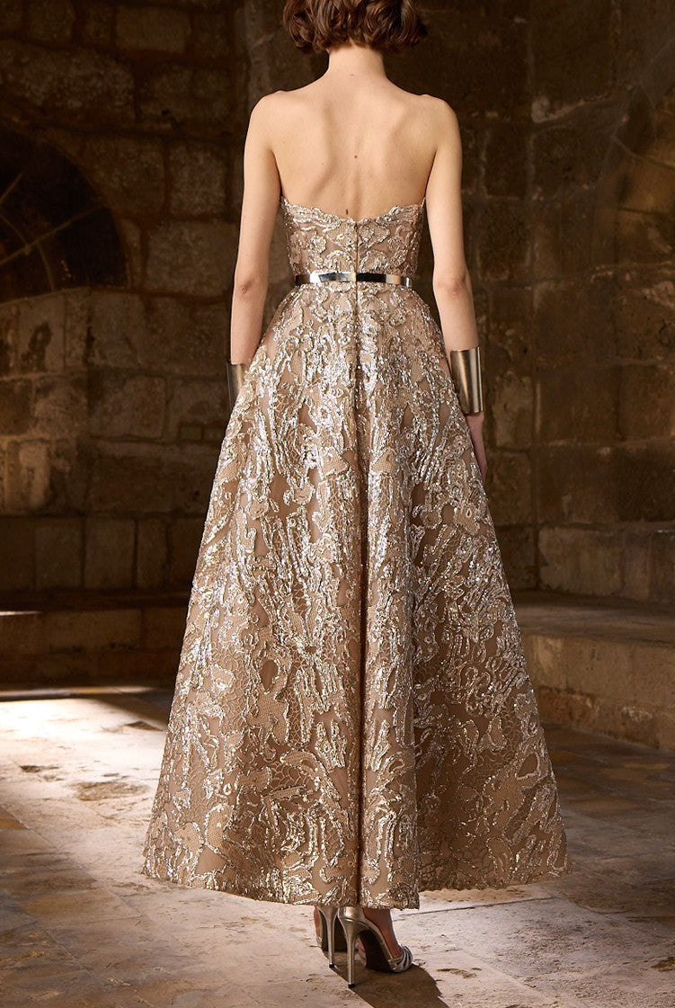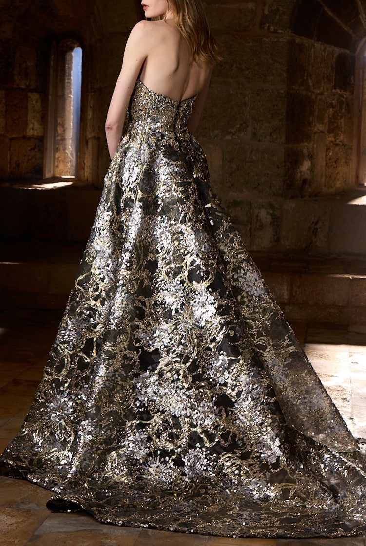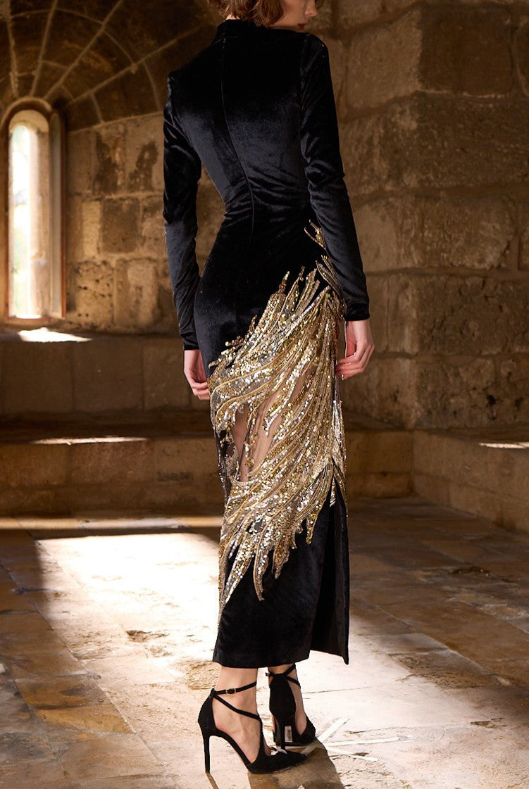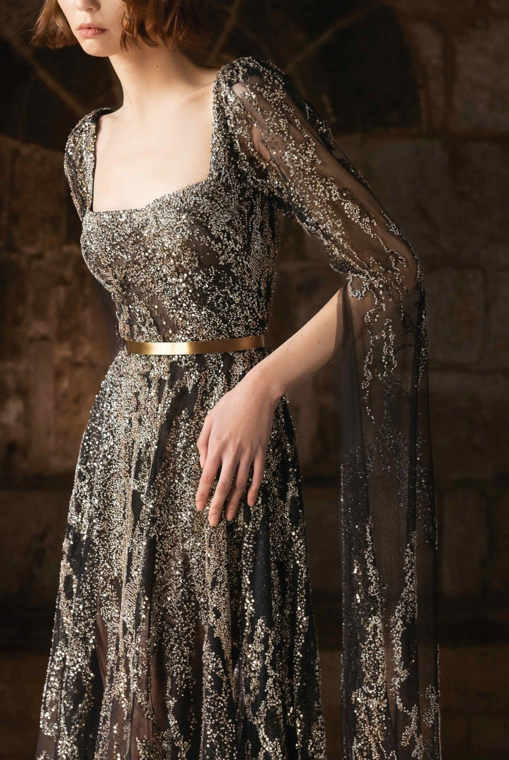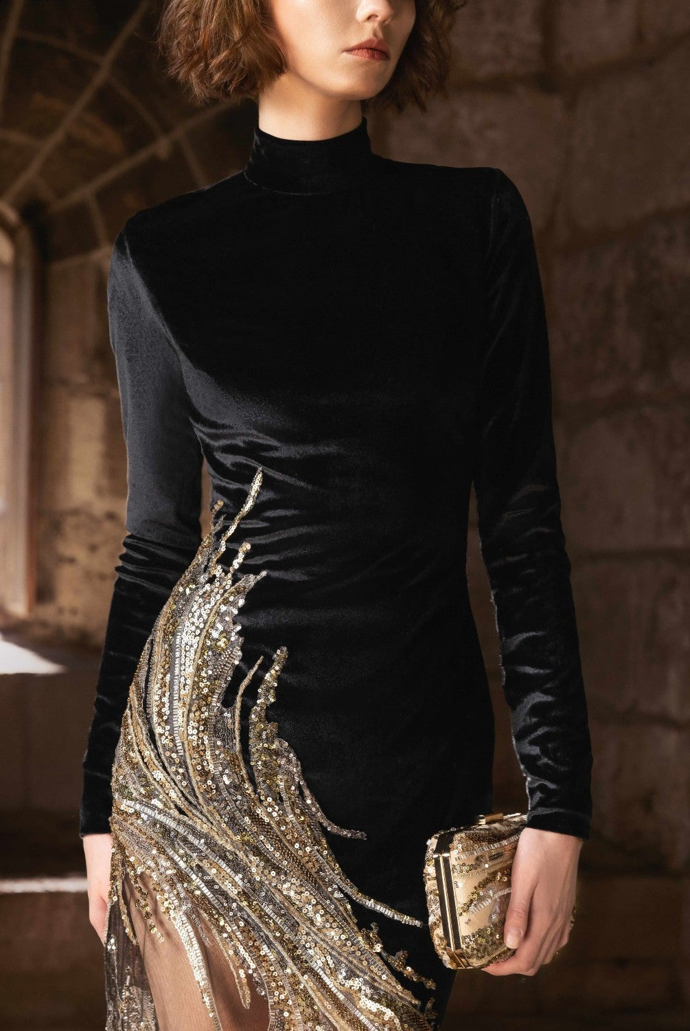 Whether you're looking for a cocktail dress or an evening gown, Elilhaam has got you covered. Their party dresses are made with the finest materials and feature intricate details, such as floral beaded sleeves embellishment and pointed collars, that are sure to make you stand out from the crowd. Shop their latest collection of party dresses today and steal the show at your next event!