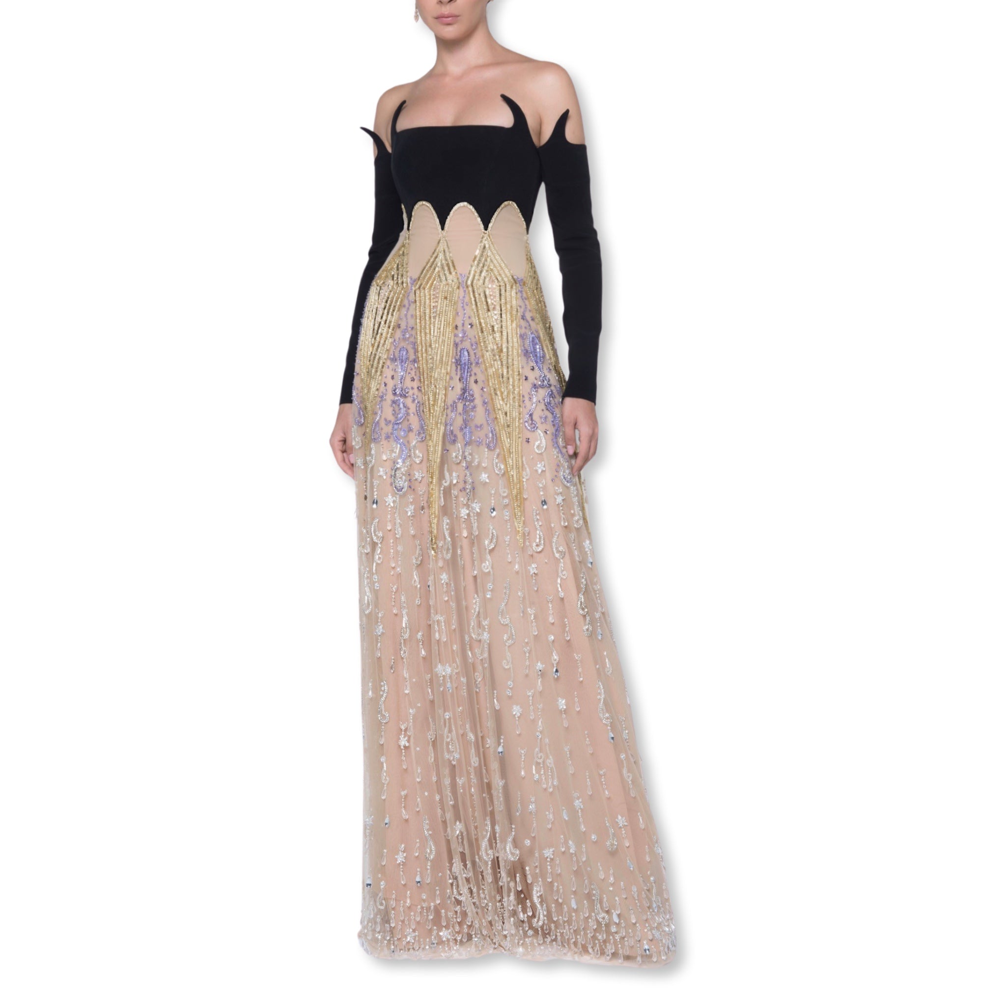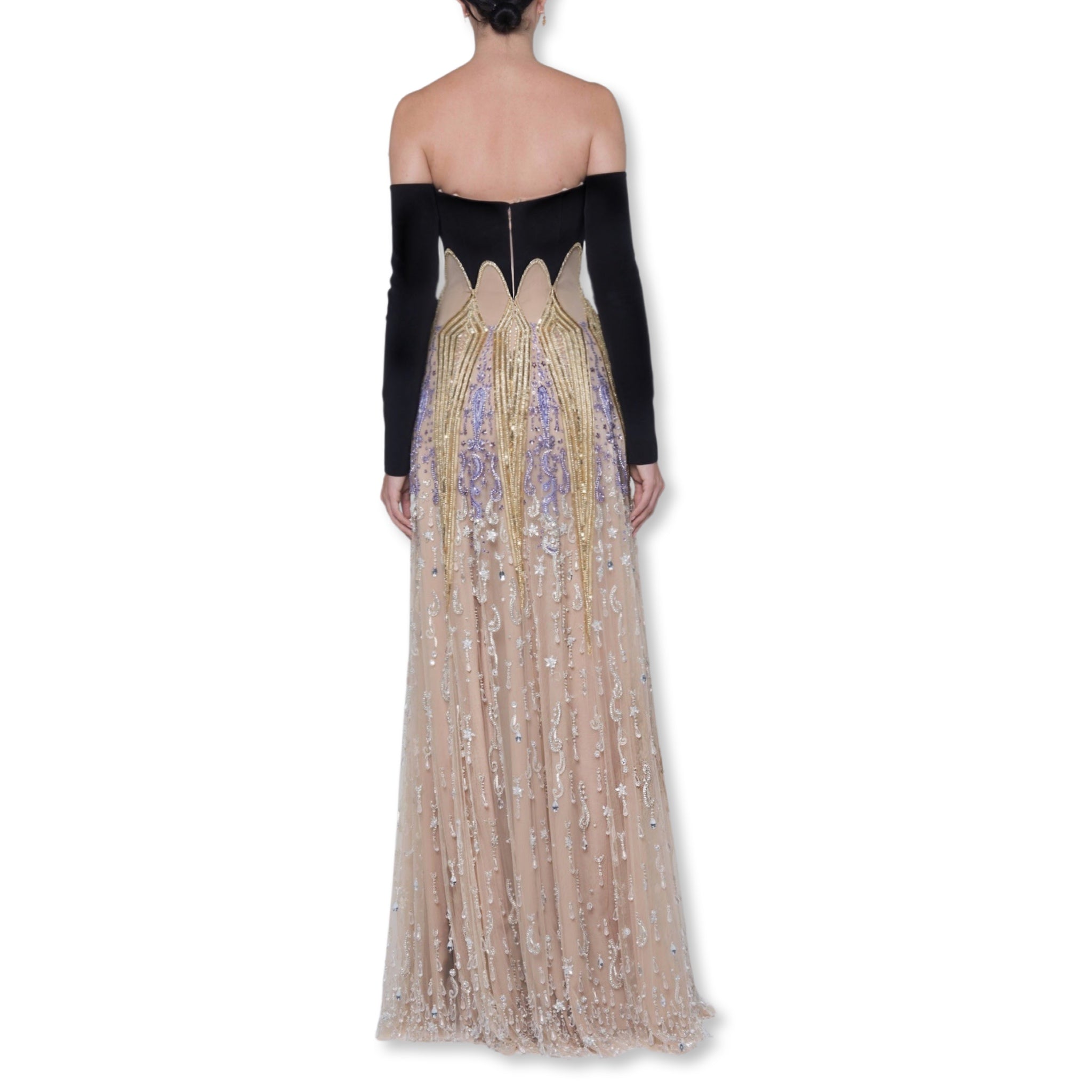 Beaded Tulle Dress in Crepe Bust And Sleeves
