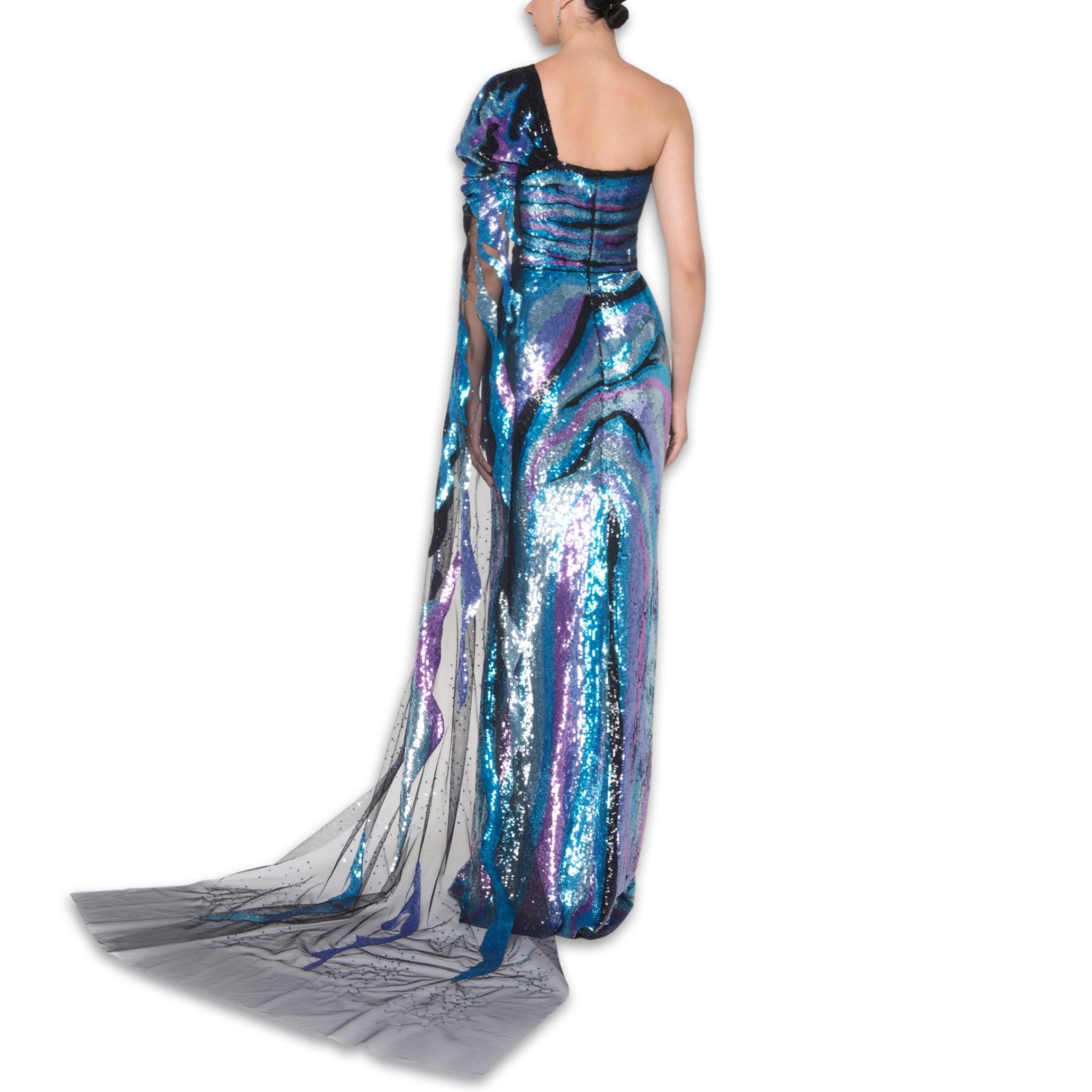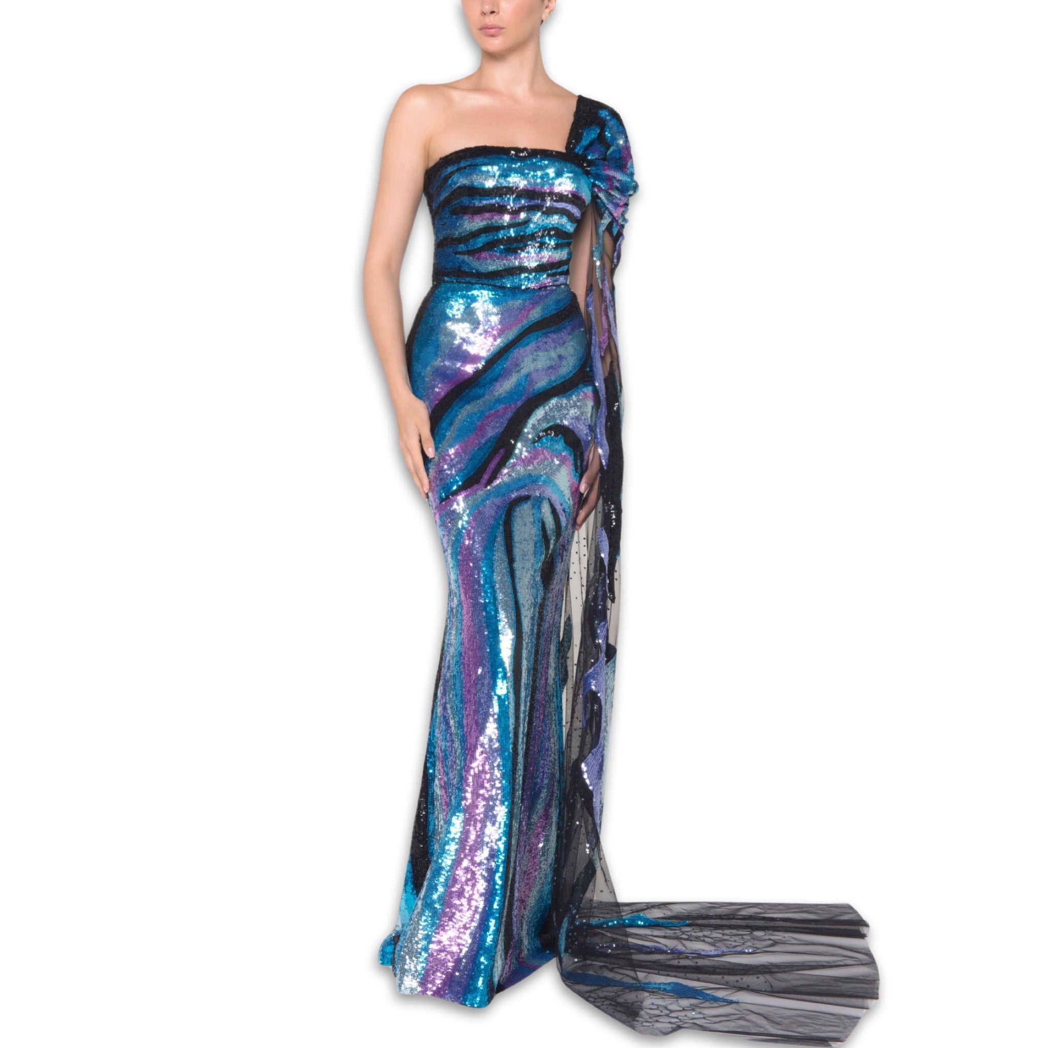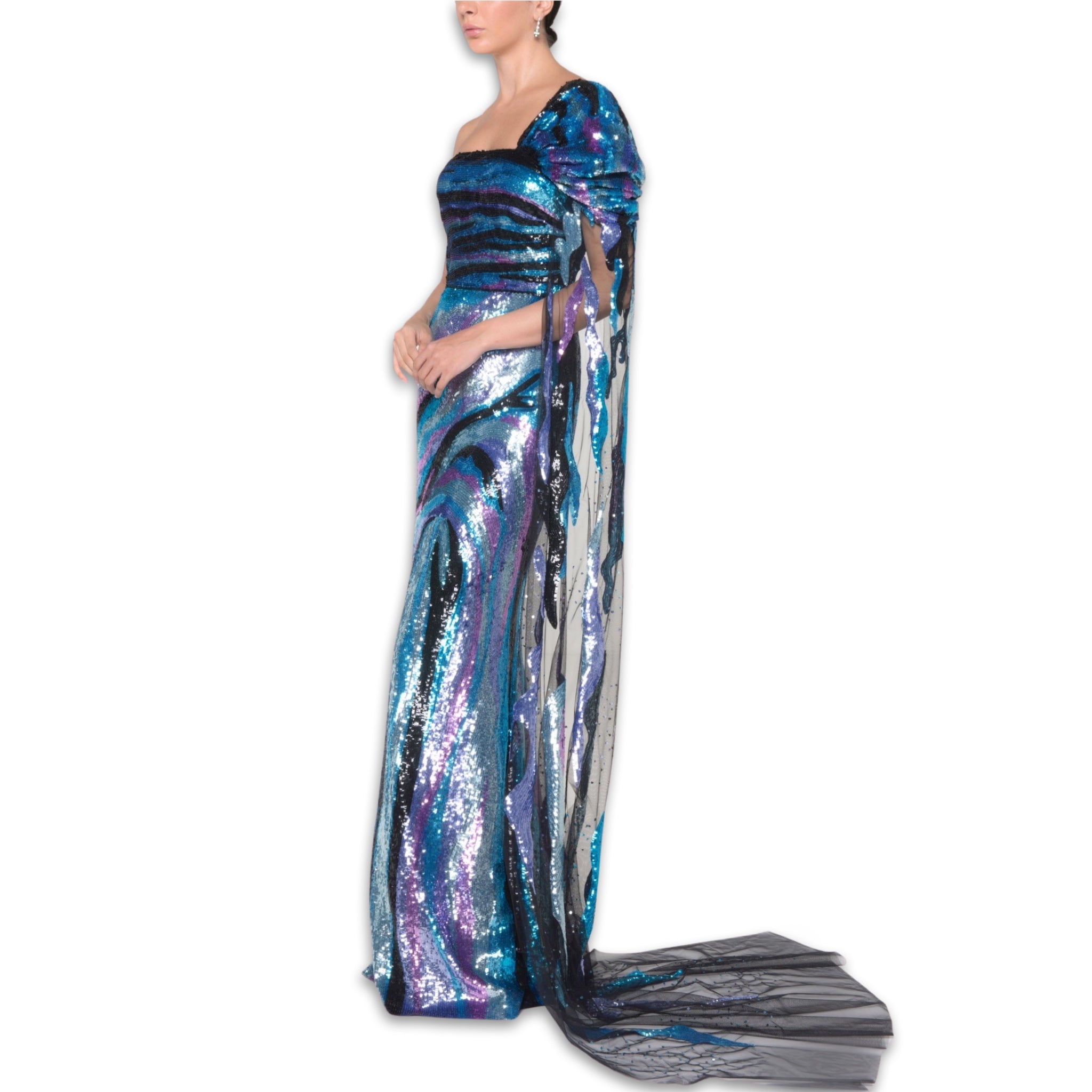 Strapless Tulle Dress With One-Shoulder Draped Shawl