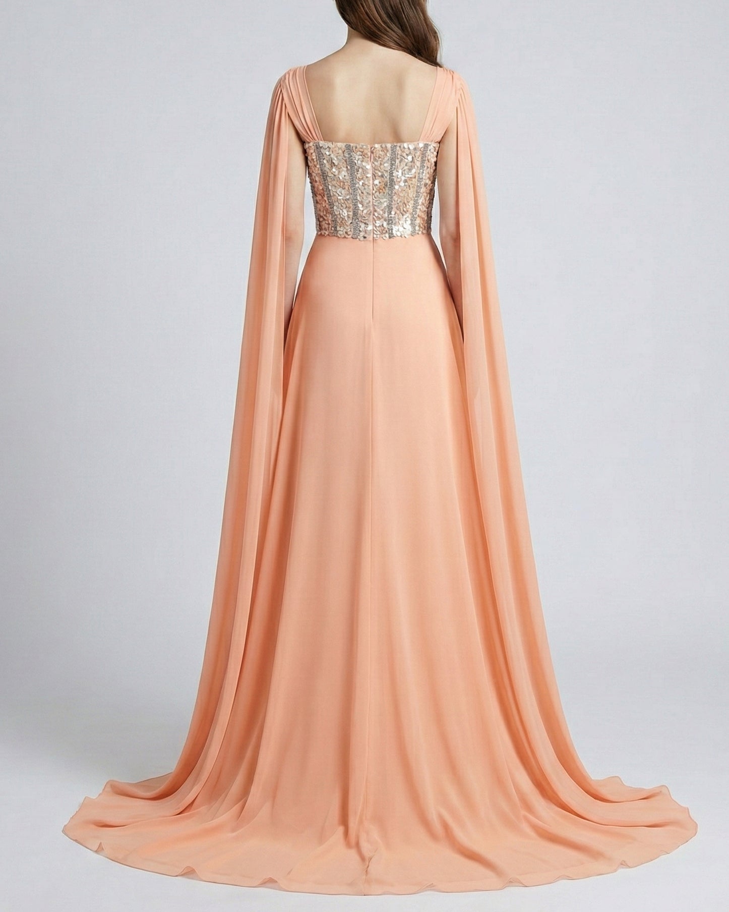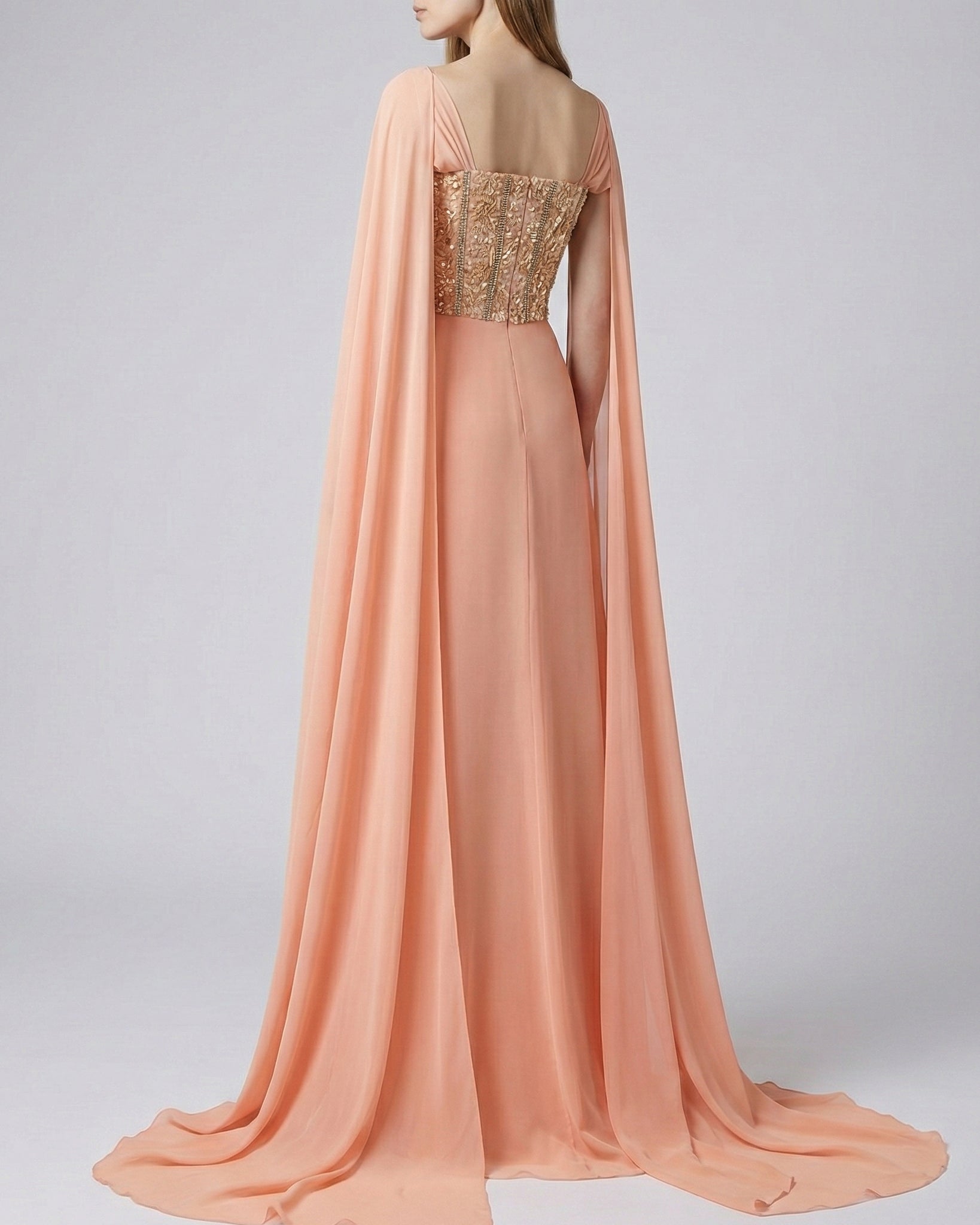 Peach Dress with Cape Sleeves