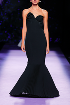 - Fabric: Stretch crepe with 3D rose details and pleated hem