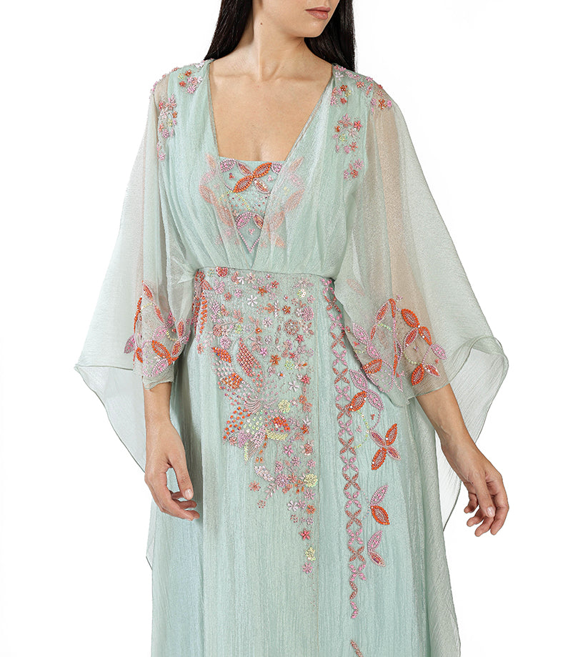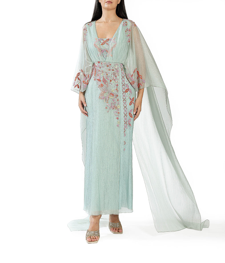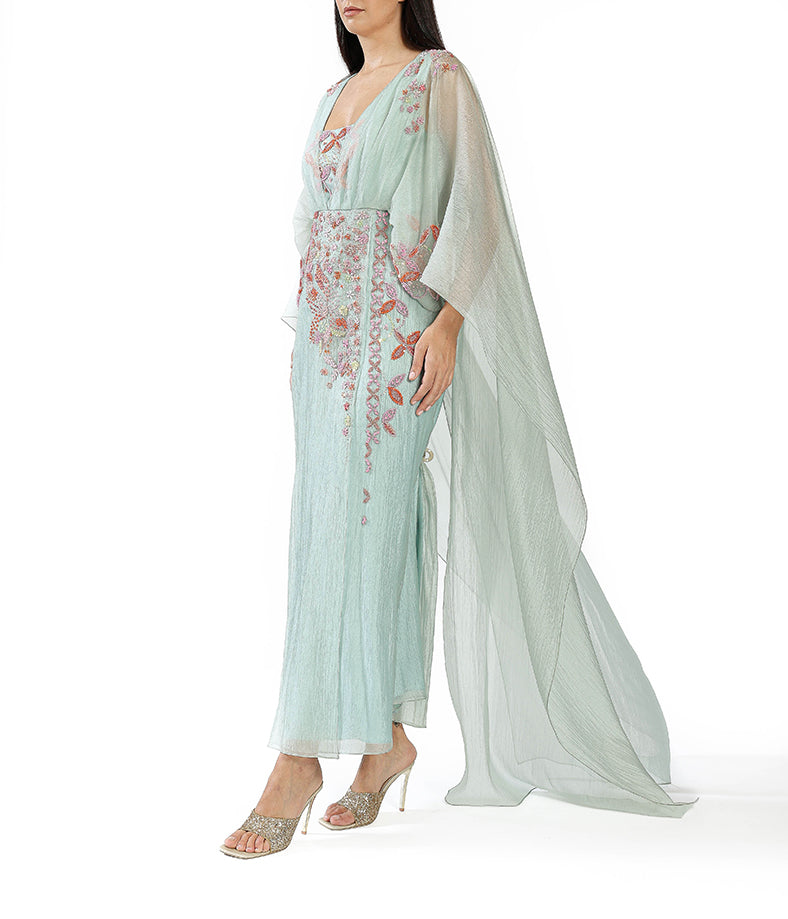 Light Blue Gown With Floral Applique