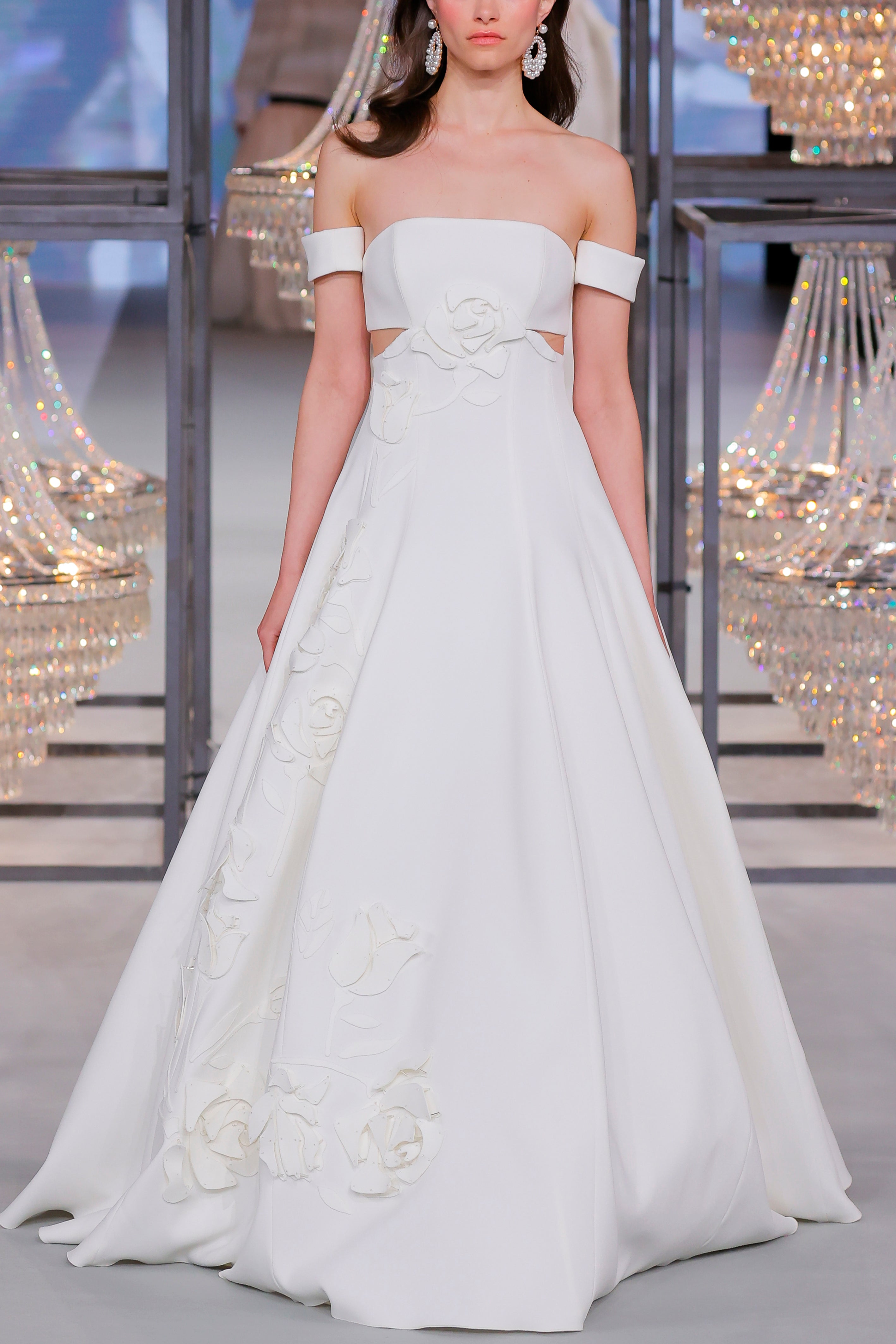 - Off-the-shoulder ballgown with floral appliqués