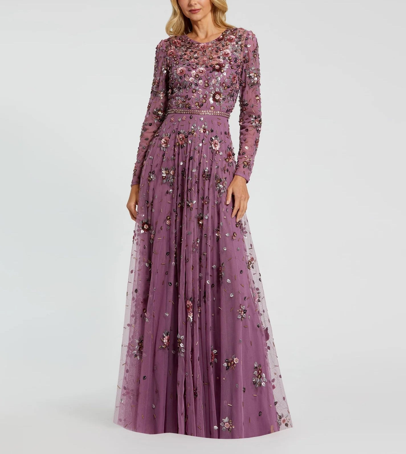 Long Sleeve High Neck Beaded Gown