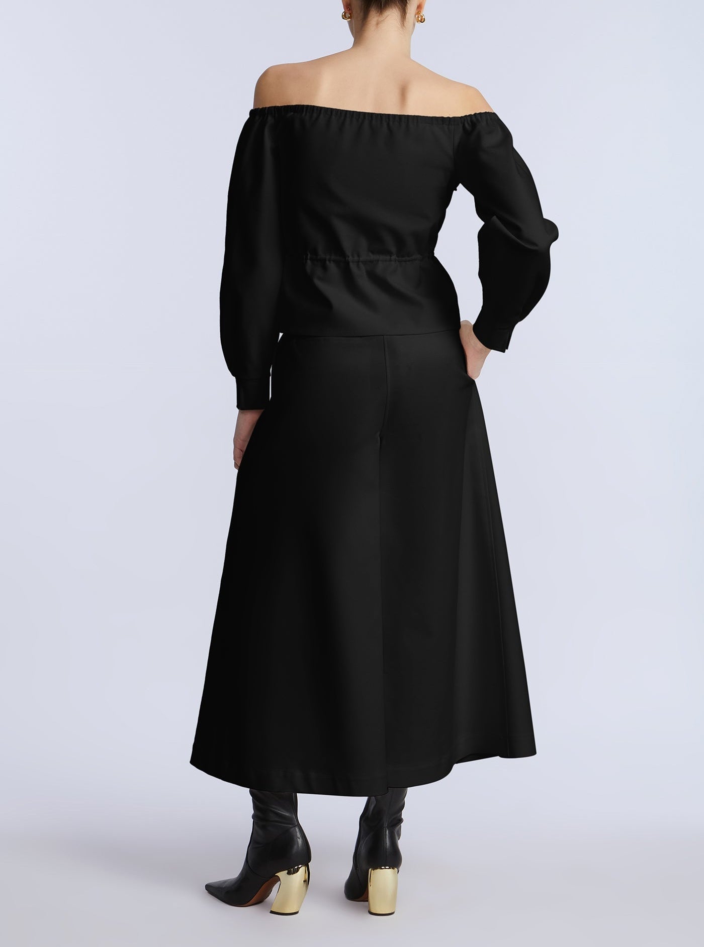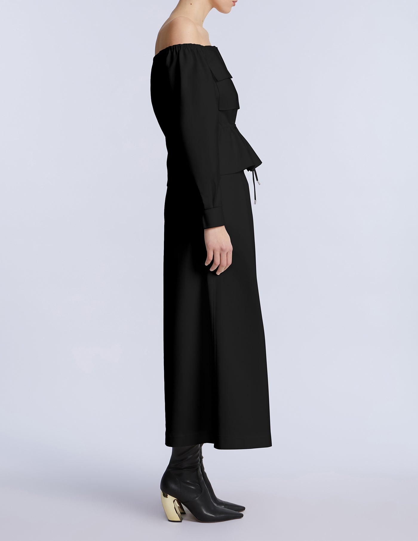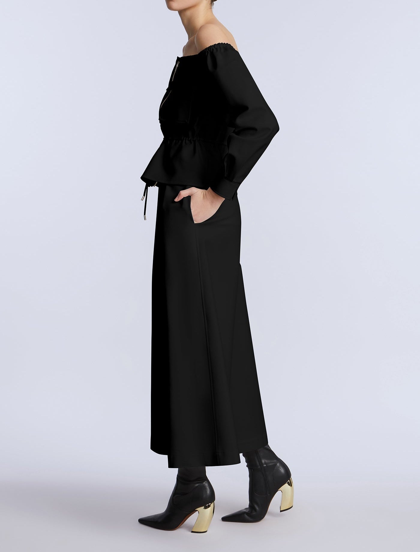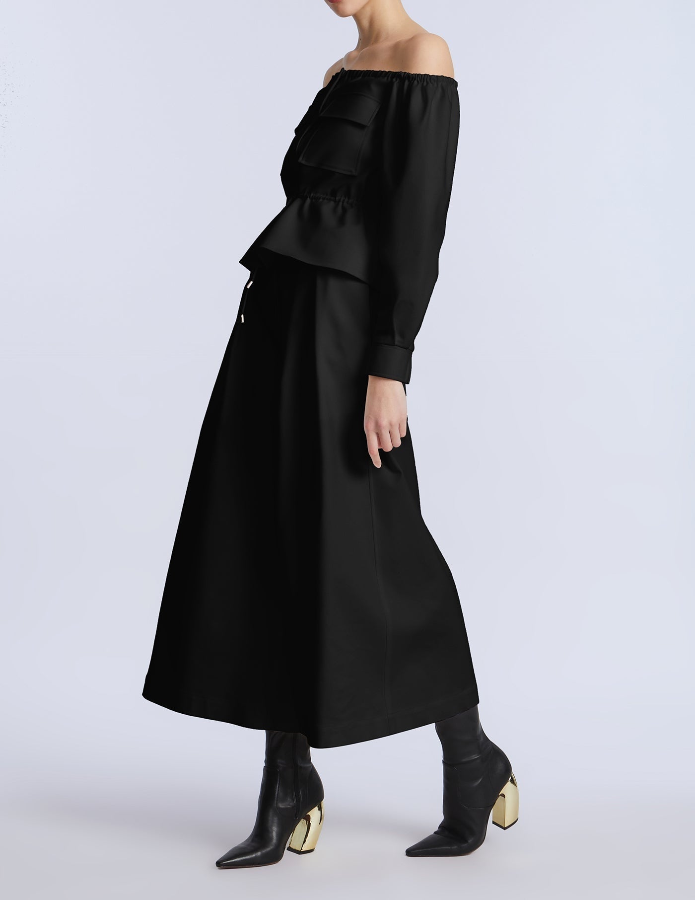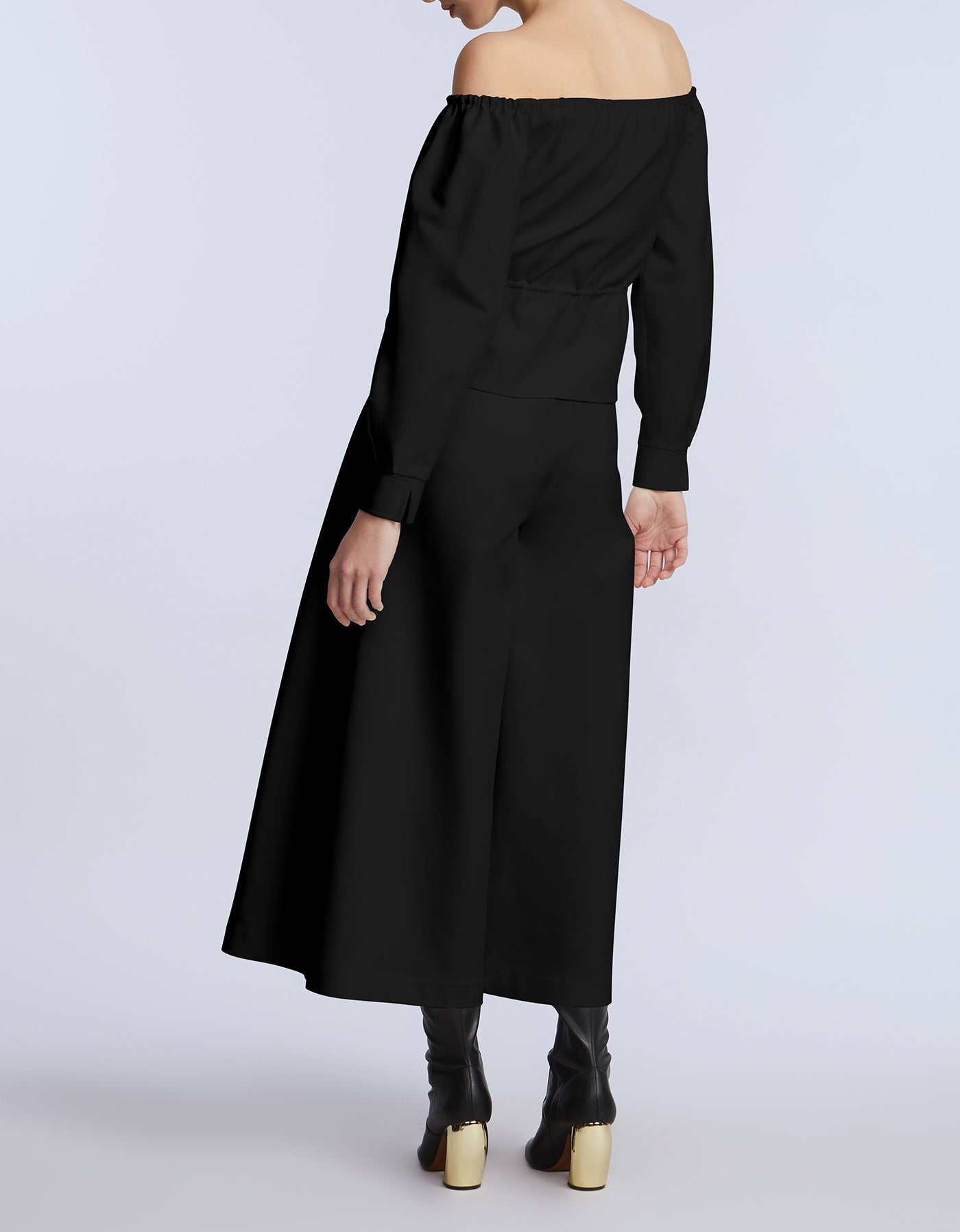 Wide-leg cropped pants in classic black cotton sateen. Designed with pleated front detailing and a clean waistband for a sculpted finish. Add the matching top for a sleek monochrome moment.