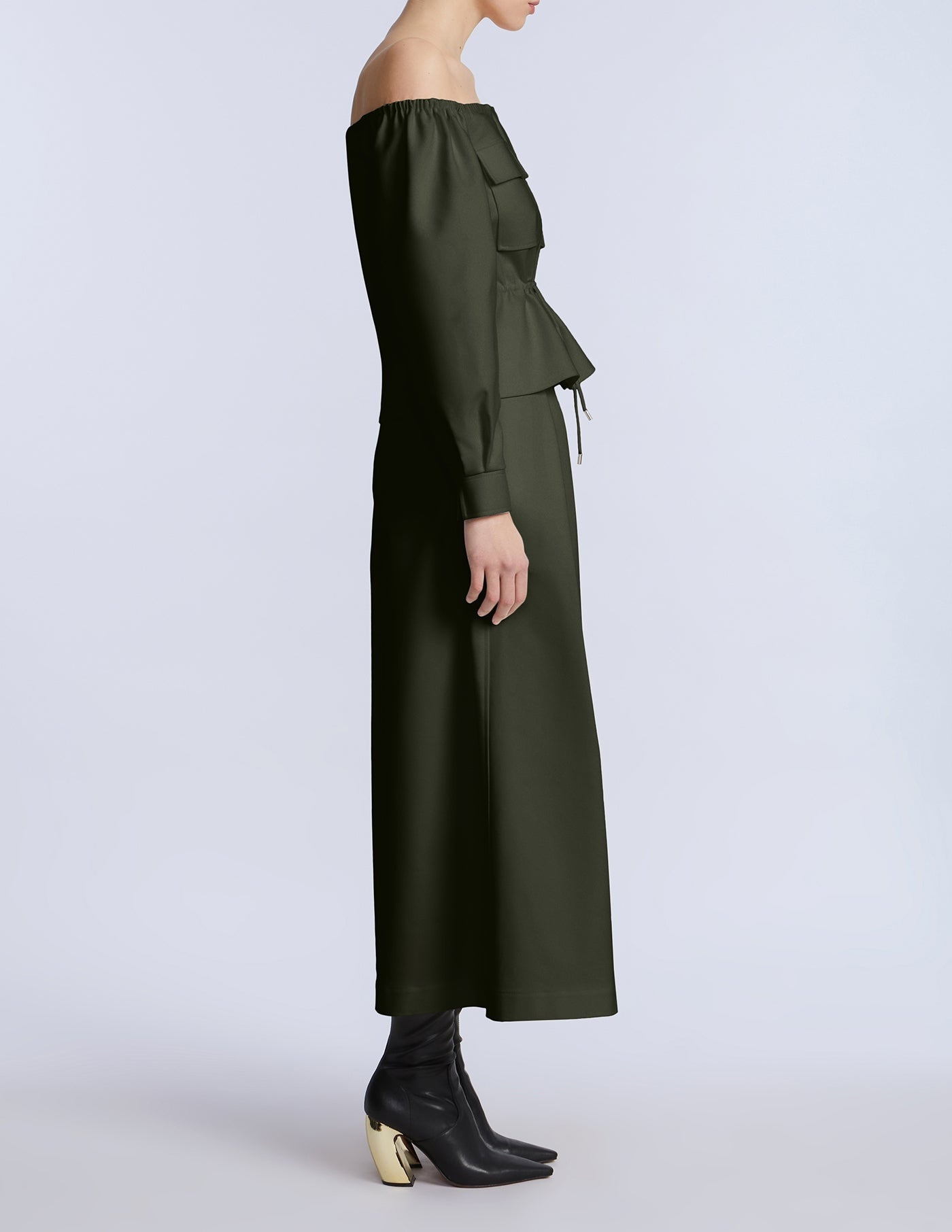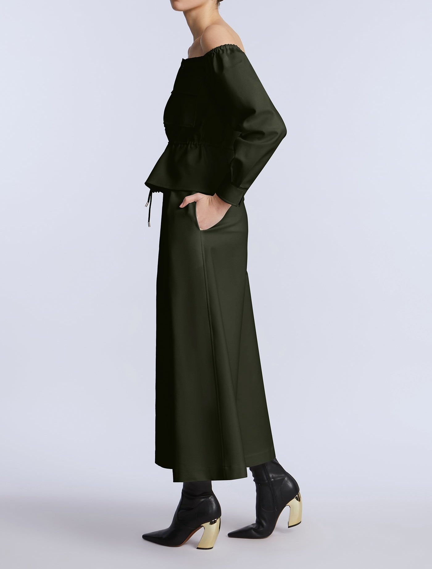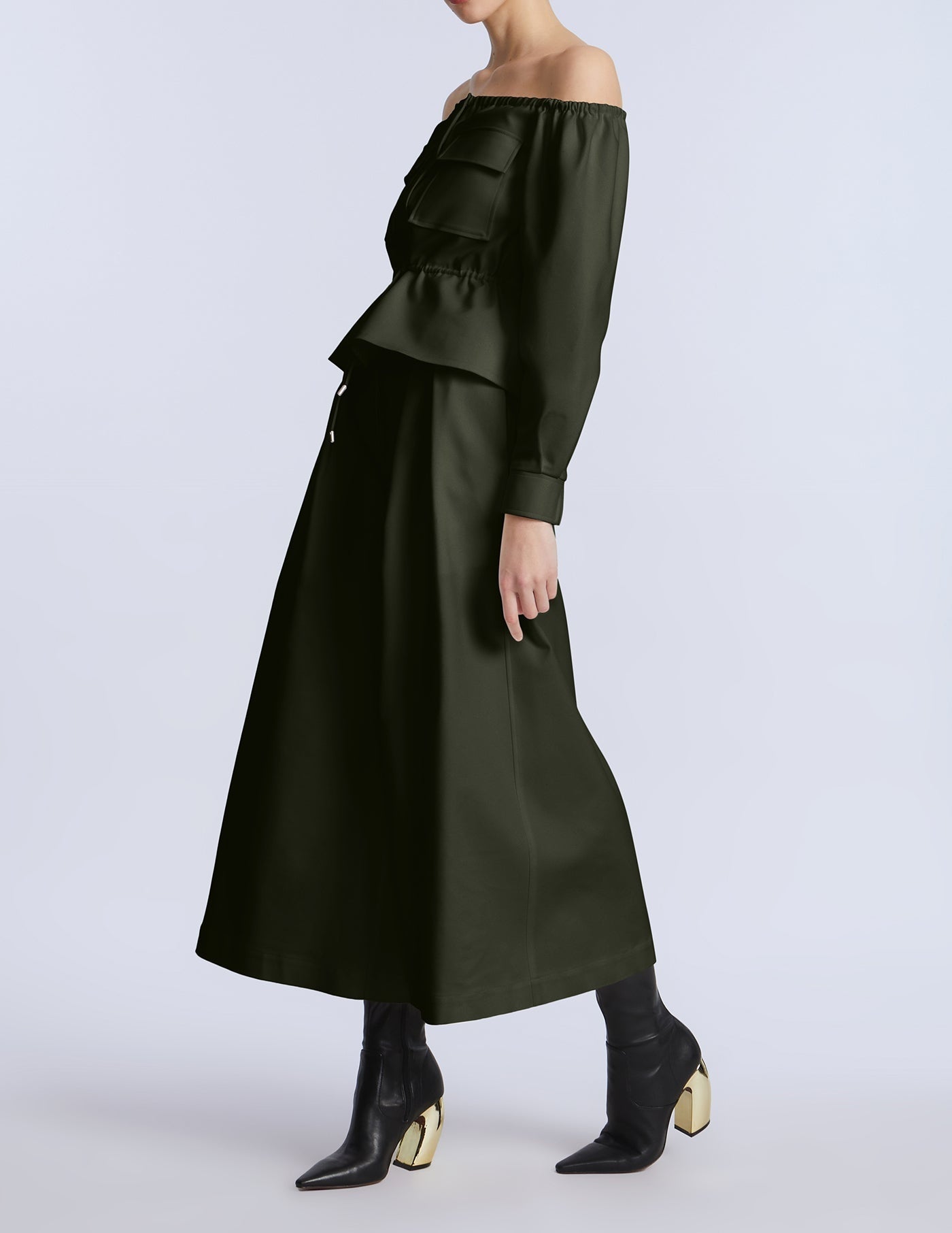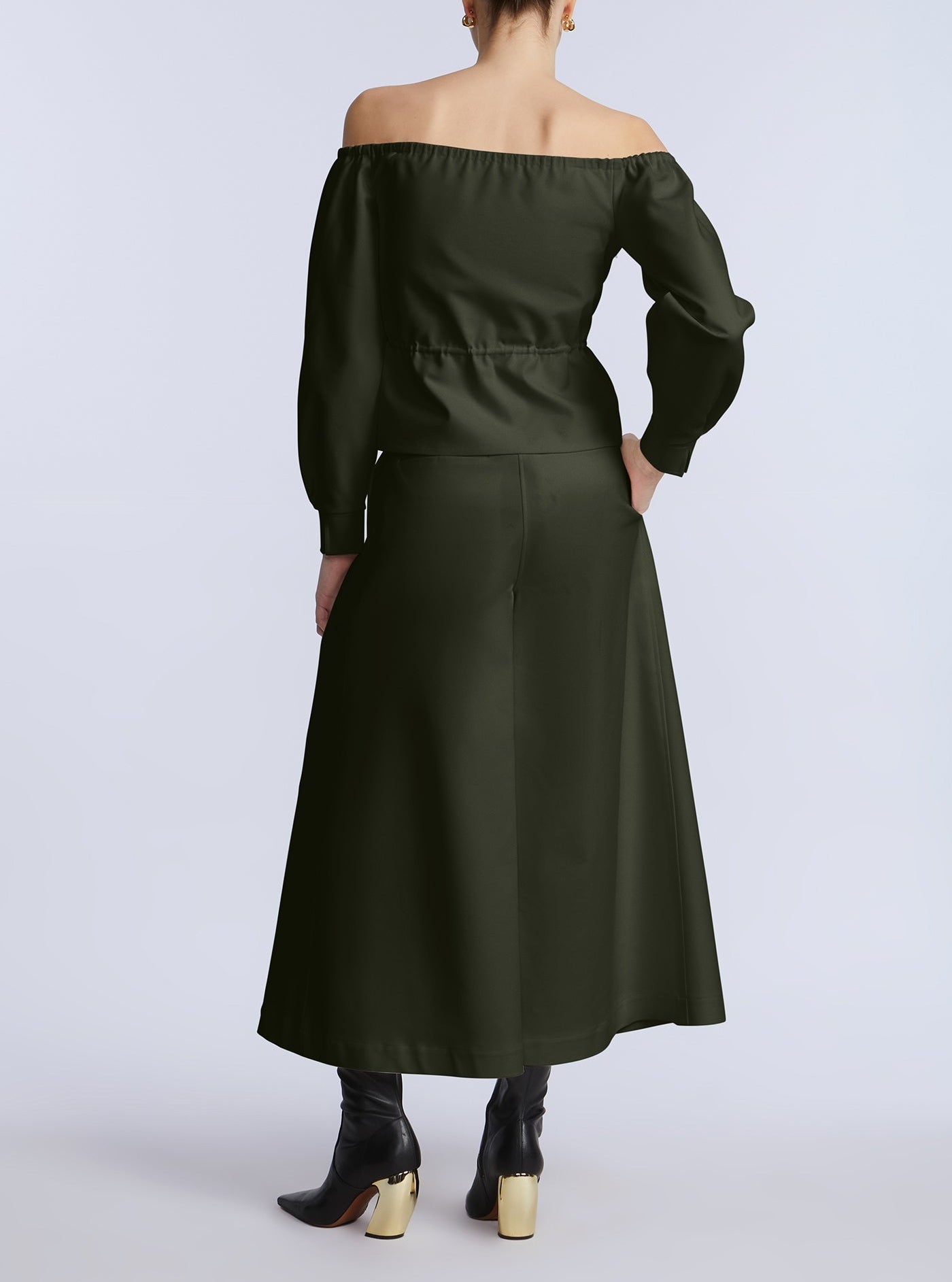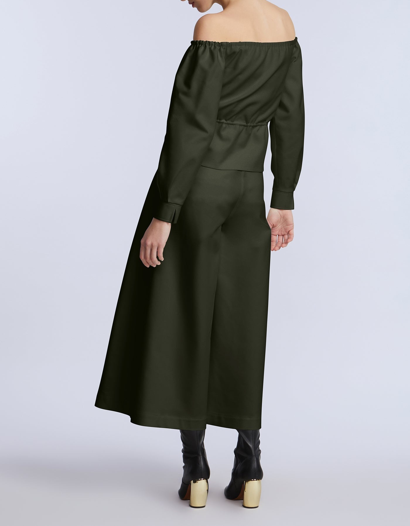 Wide-leg cropped pants in a rich olive green cotton sateen. Designed with pleated front detailing and a clean waistband for a sculpted finish. Add the matching top for a bold monochrome moment.