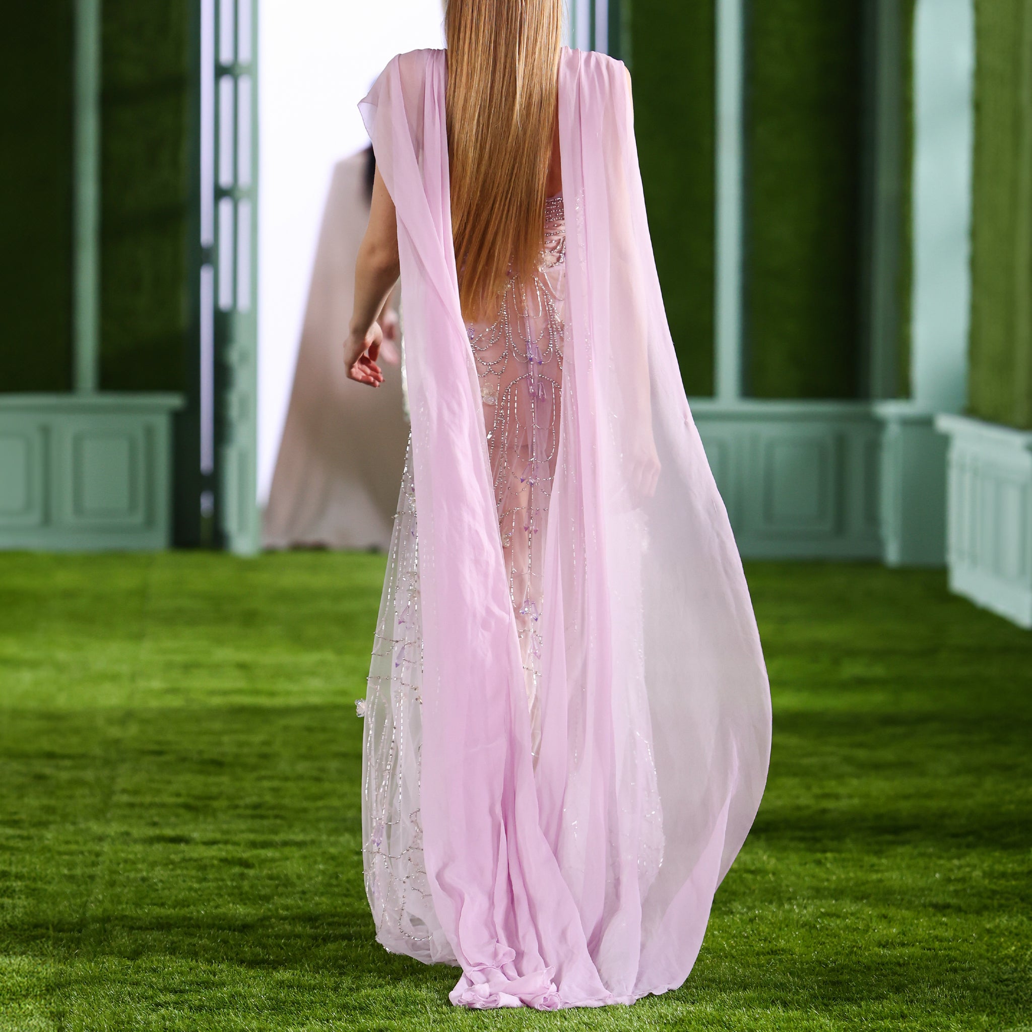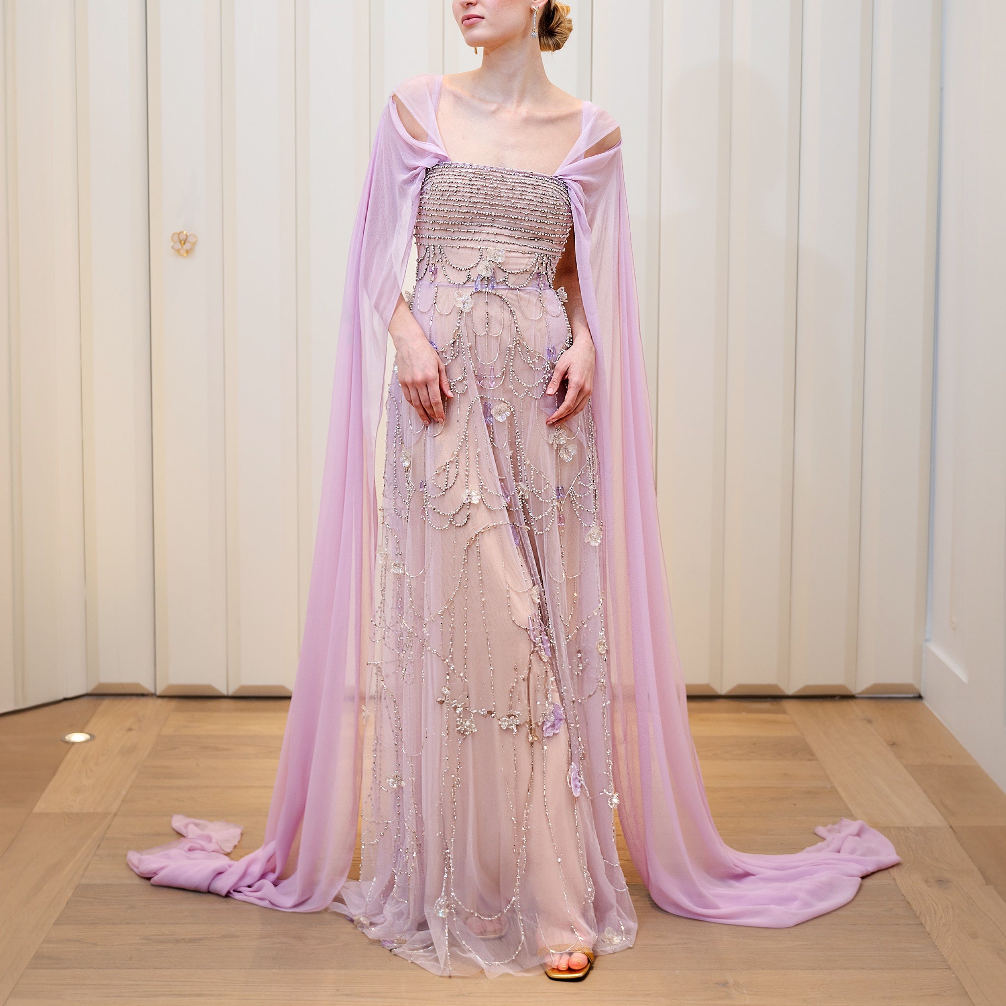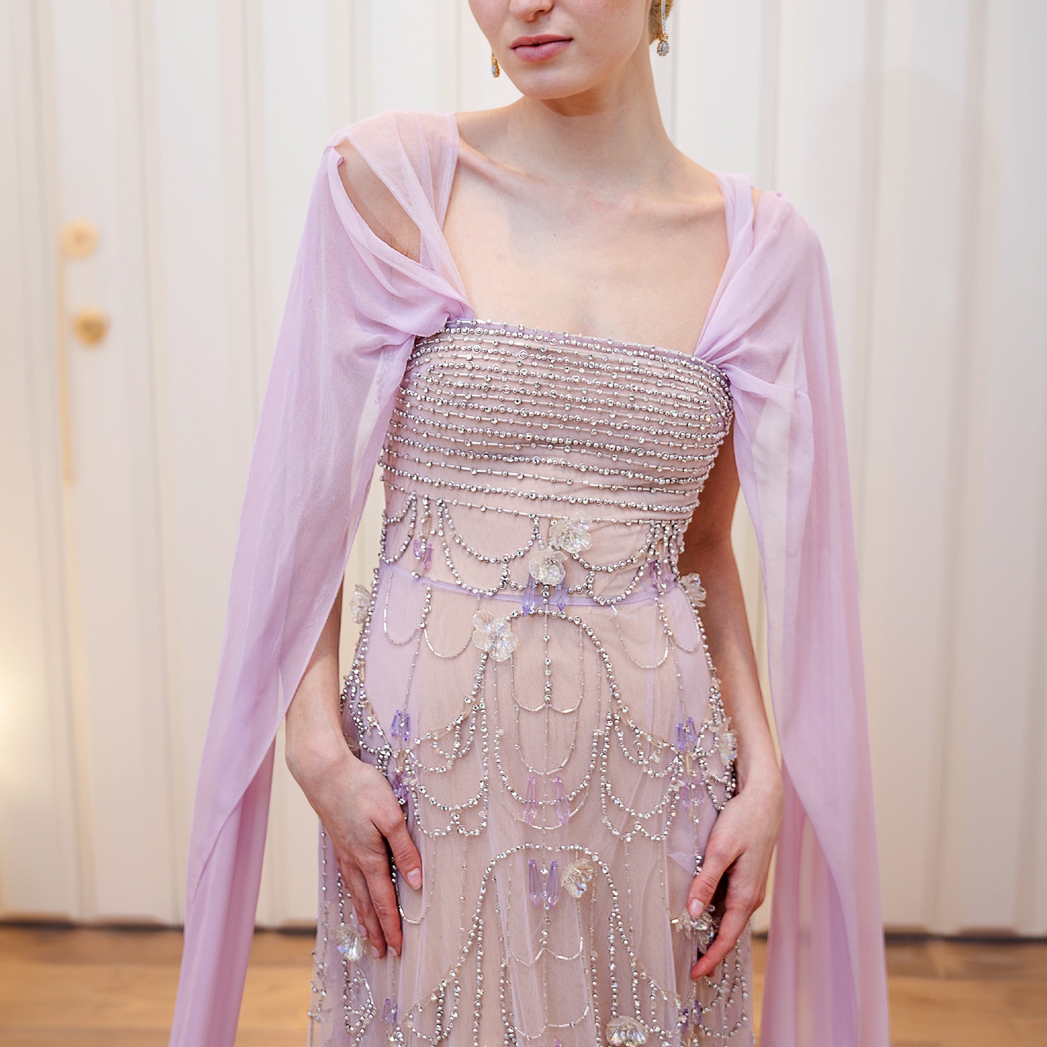 - Beaded tulle dress with bejeweled stones