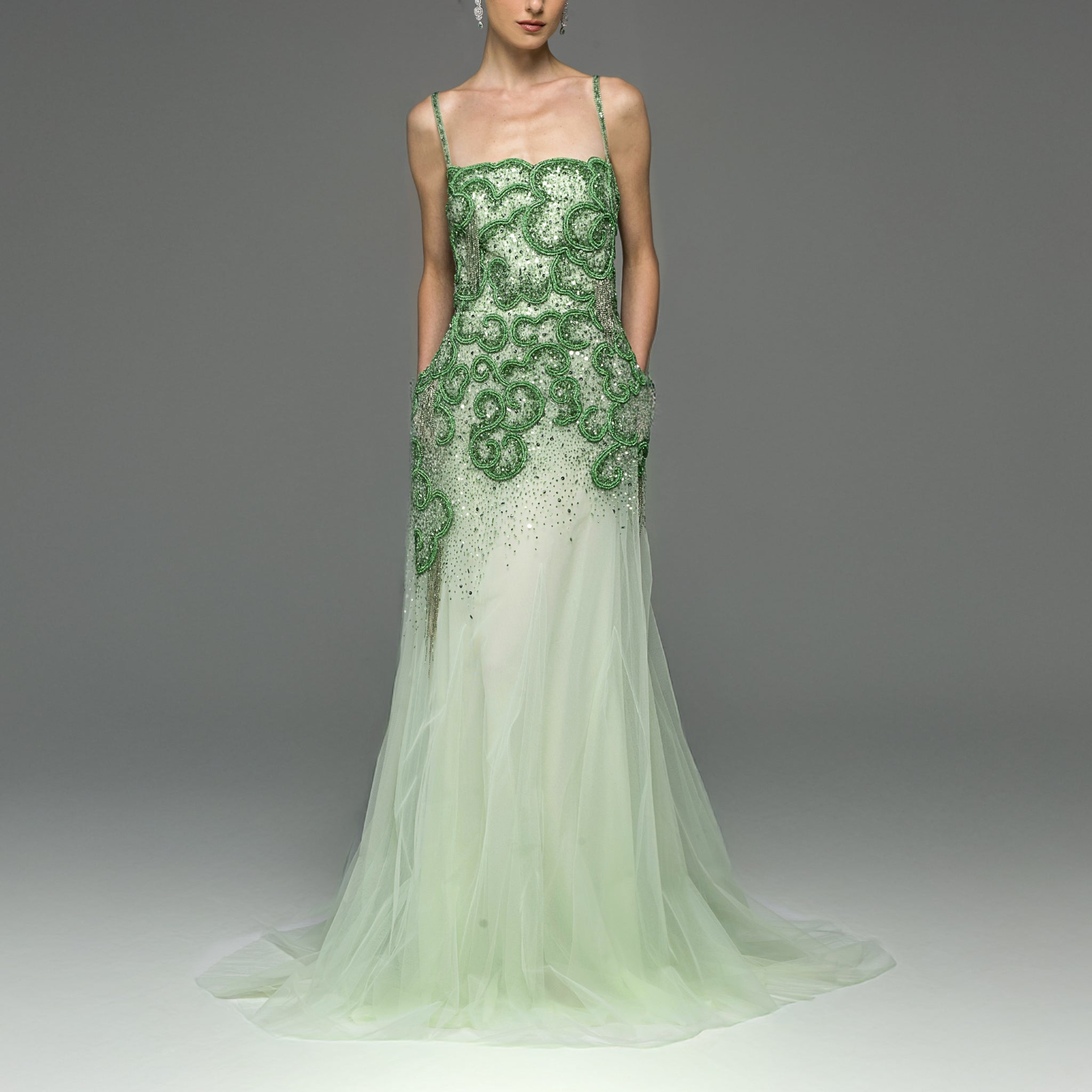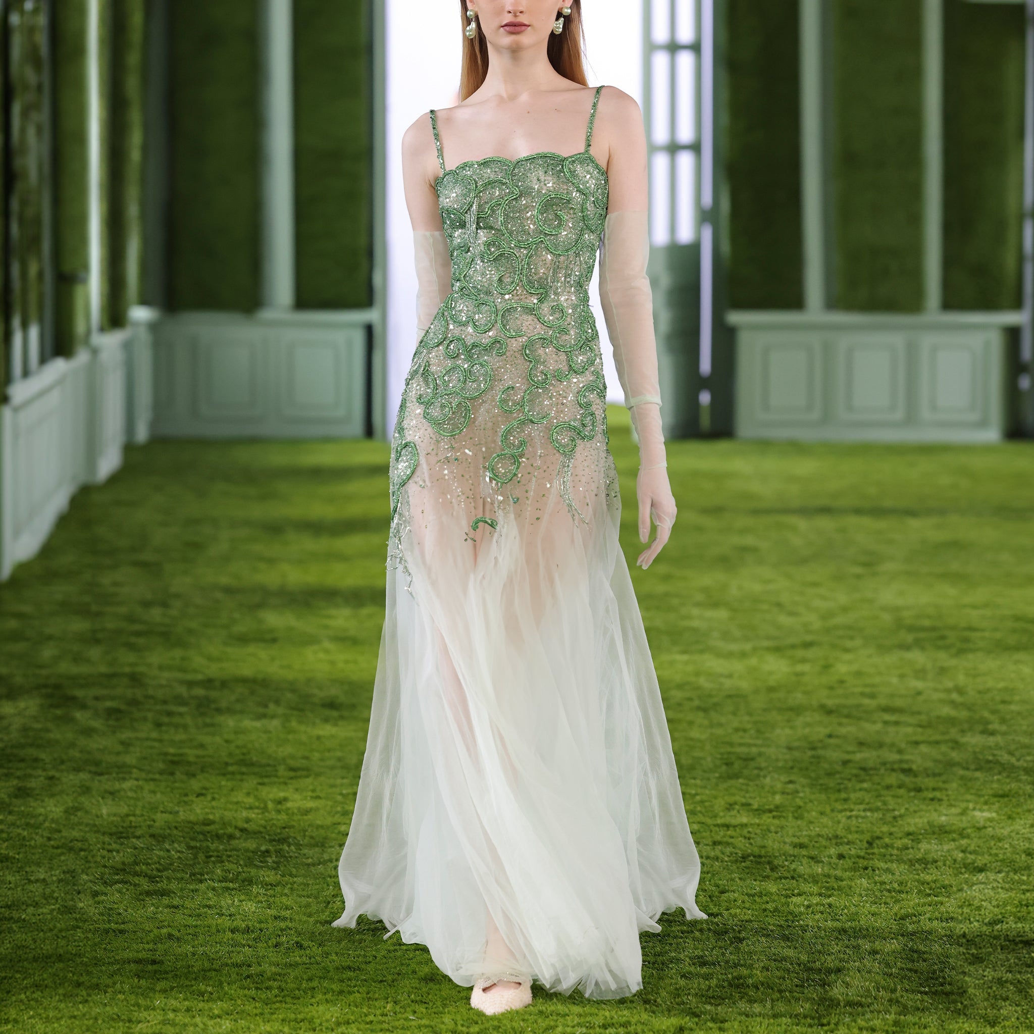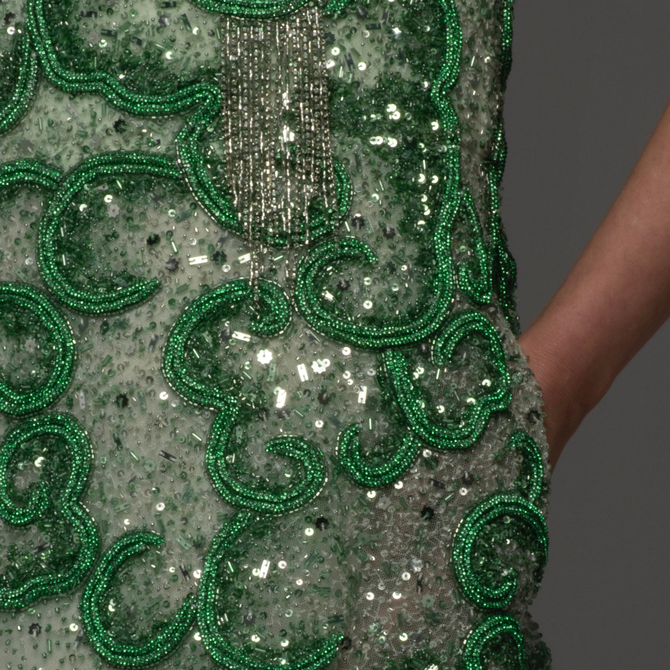 - Crystallized cloud-like cords and an array of sprinkled sequins & beads