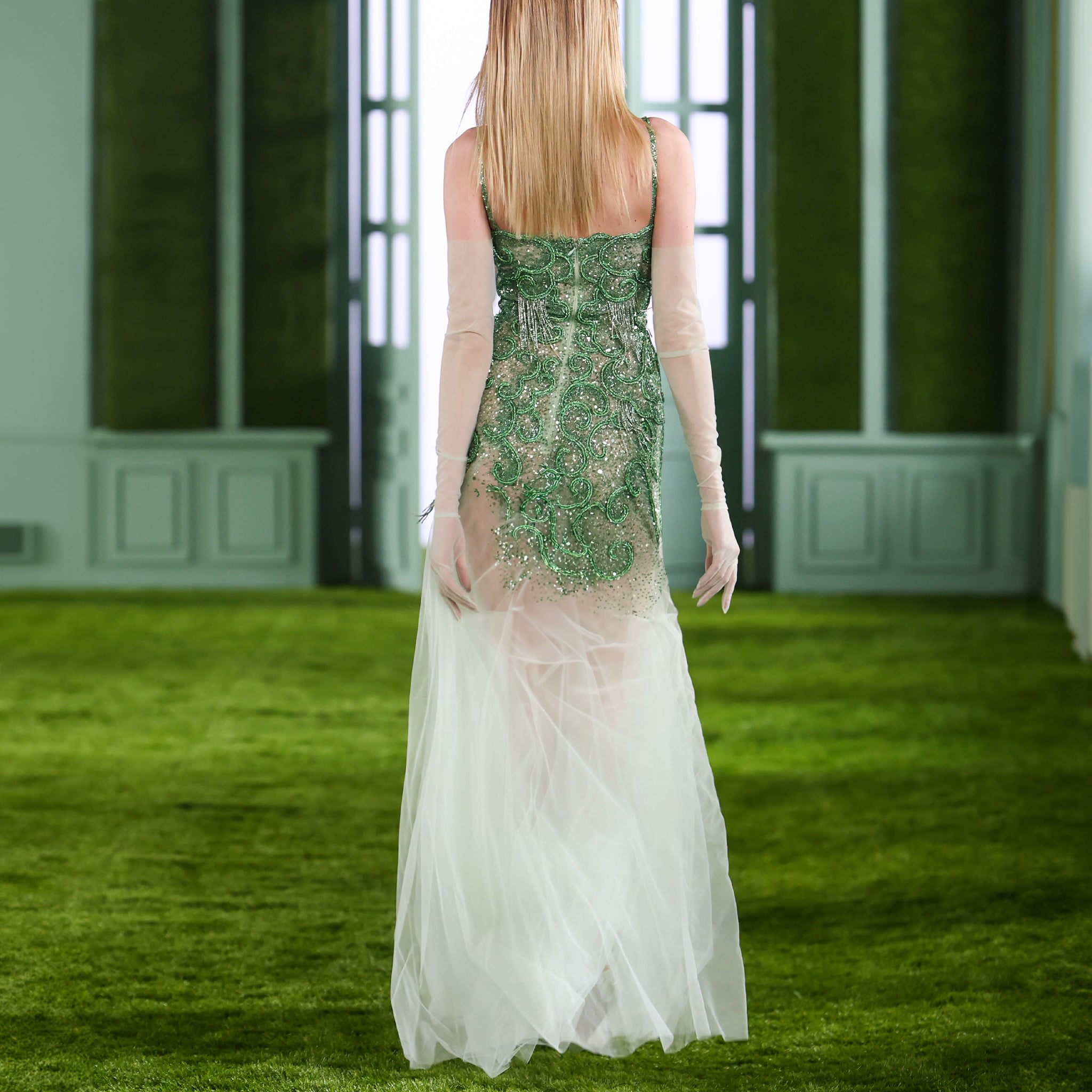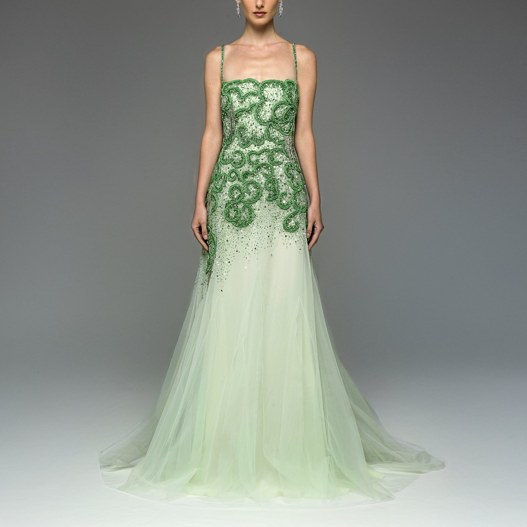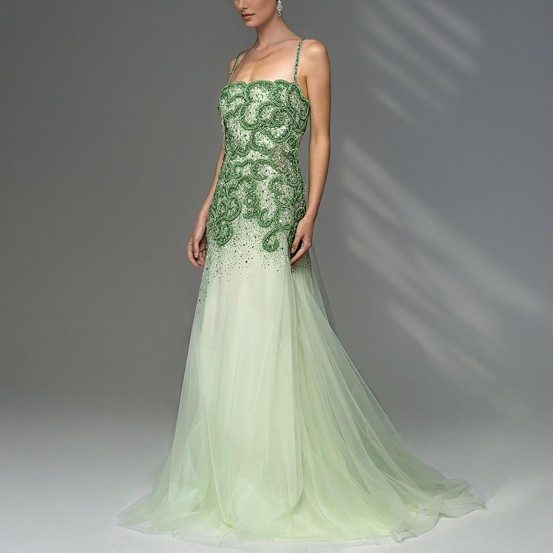 - Crystallized cloud-like cords and an array of sprinkled sequins & beads