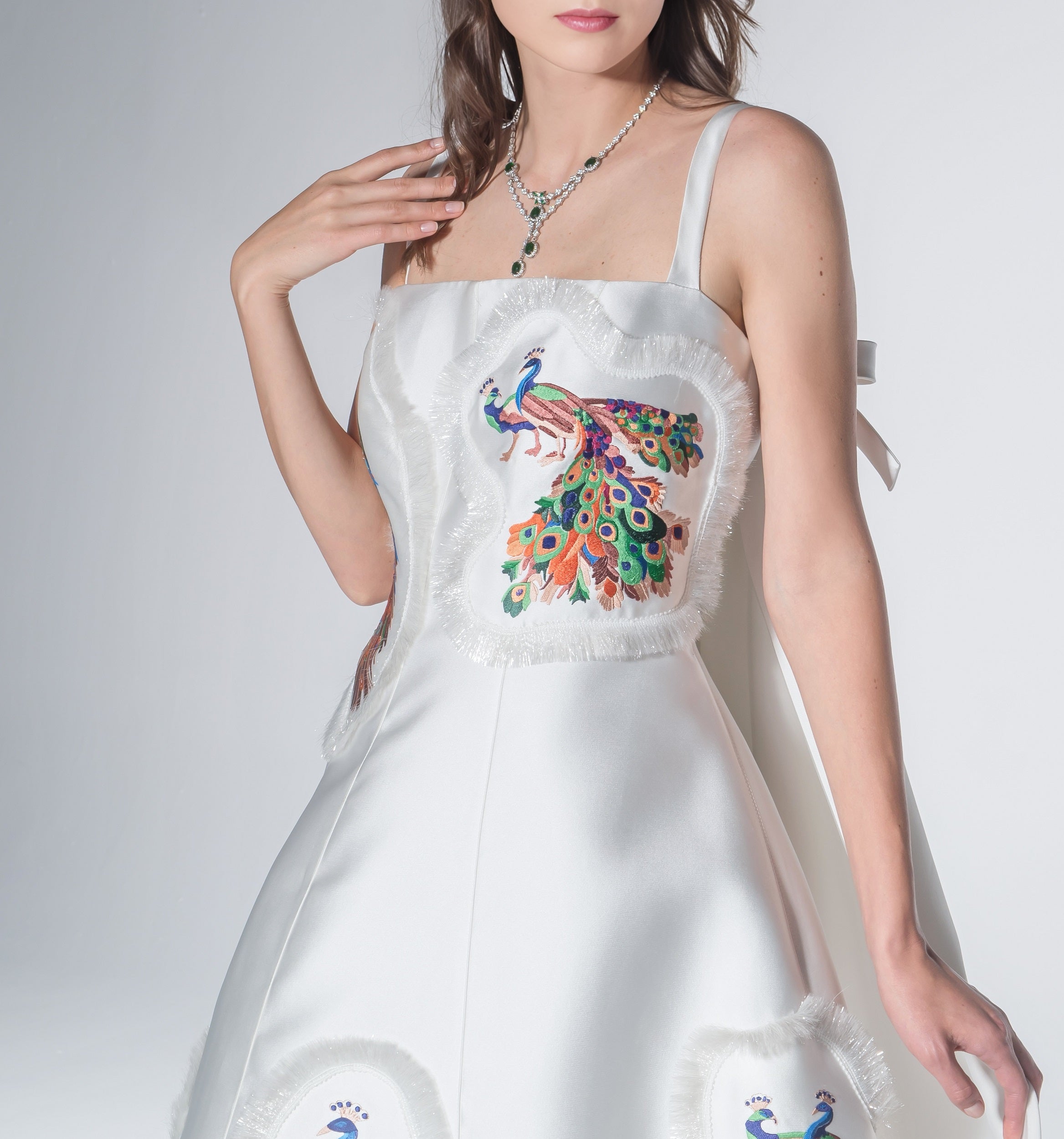 • Material: foam, organdy, organza polyester, tassels, silk embroidery, zipper, 100% Silk