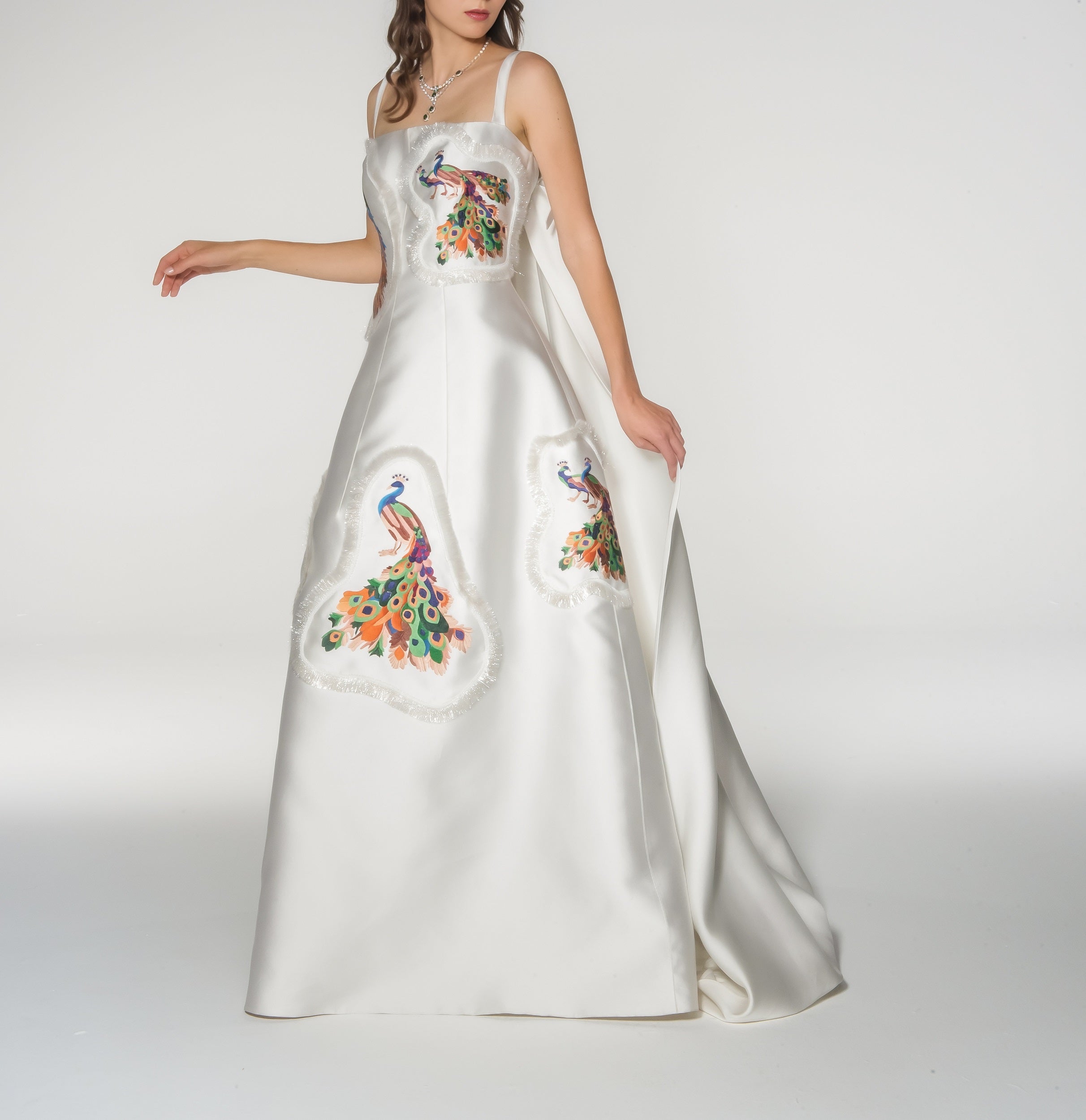 • Long satin gown