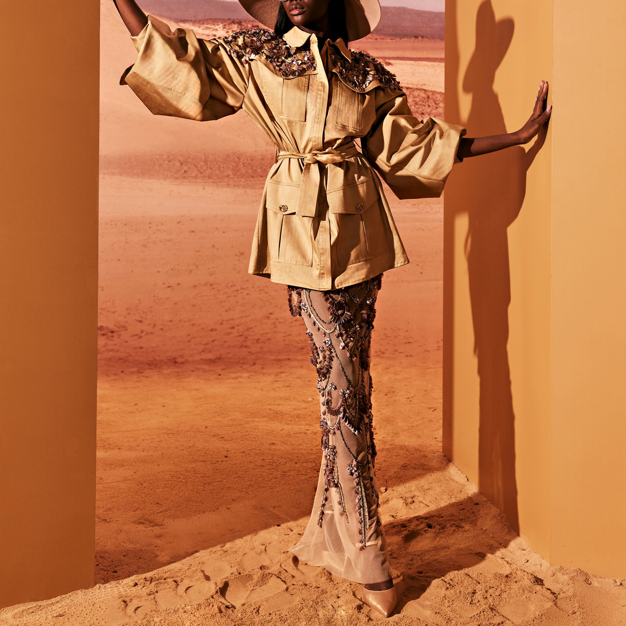 Safari Jacket With Beaded Collar & Tulle Skirt