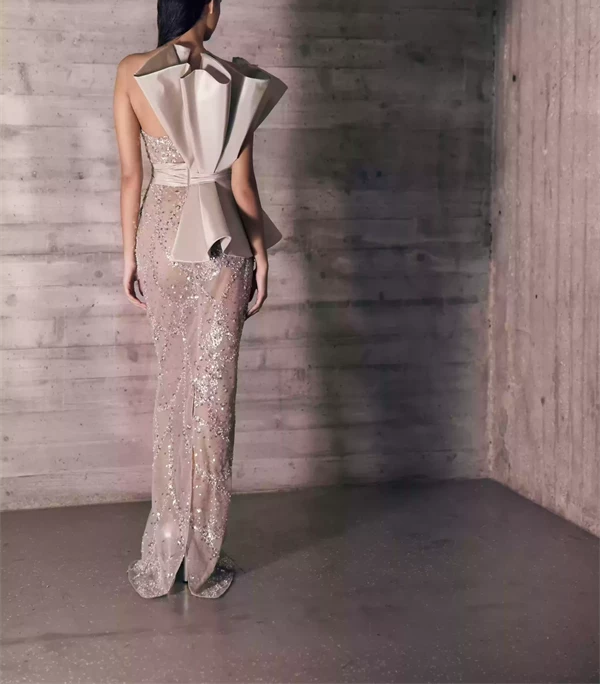 Silver Shimmers Embroidered Asymmetric Tulle Dress