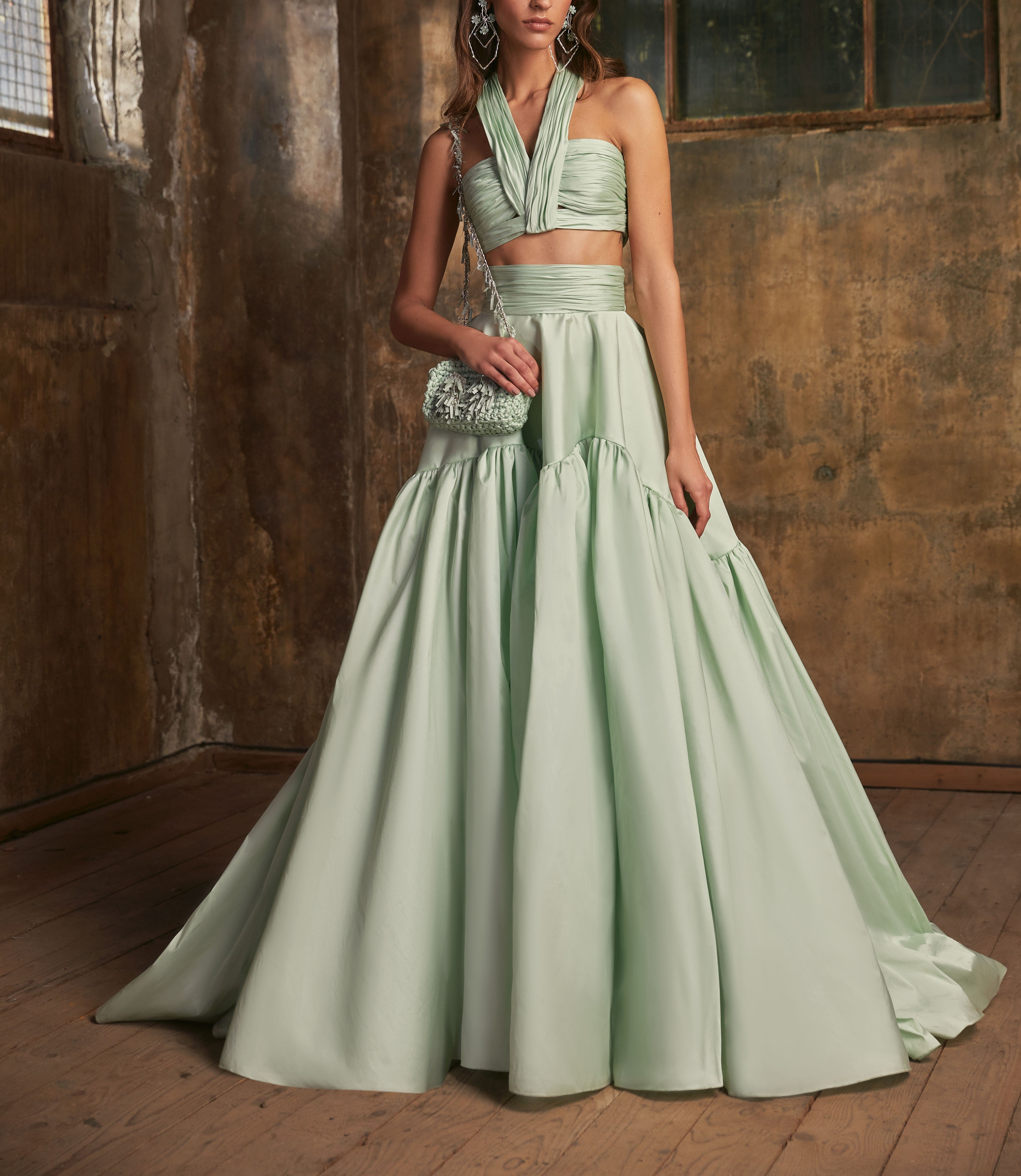 Taffeta Halter Neck Bralette & An Oversized Skirt