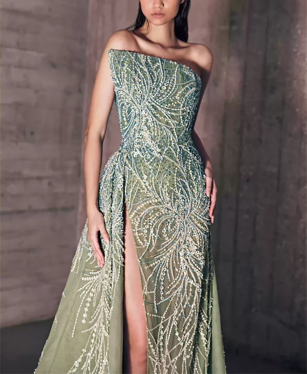 Sparkling Dew Dotted Embroidered Asymmetrical Bustier Dress