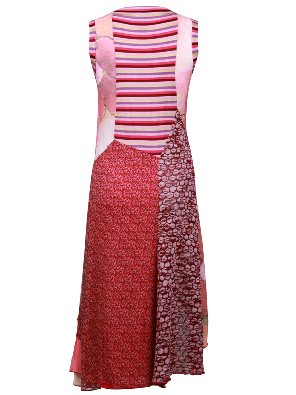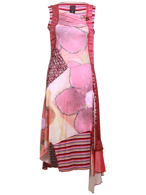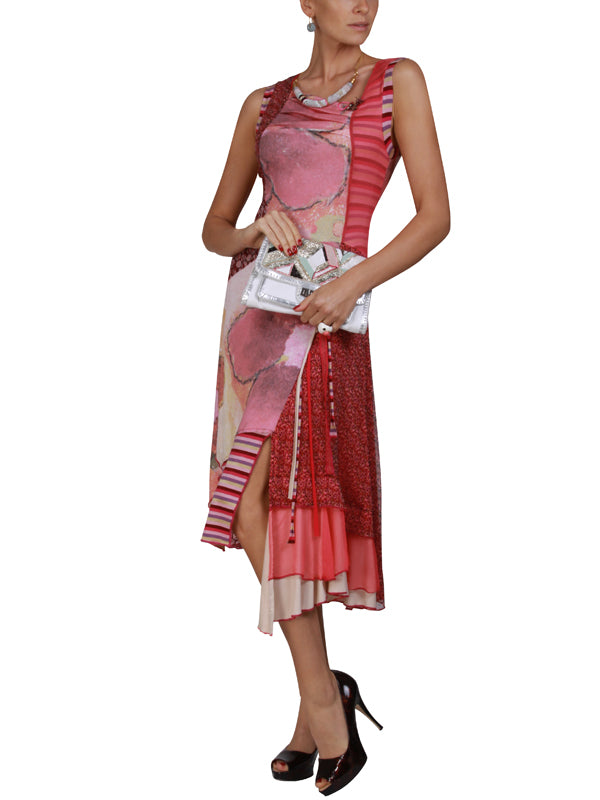 - The cutting edge design blends delightfully with shades of pink. This sleeveless stunner is fitted at the bust, with a gradual supple flow . It is absolutely fab and graceful with unbeatable chic.