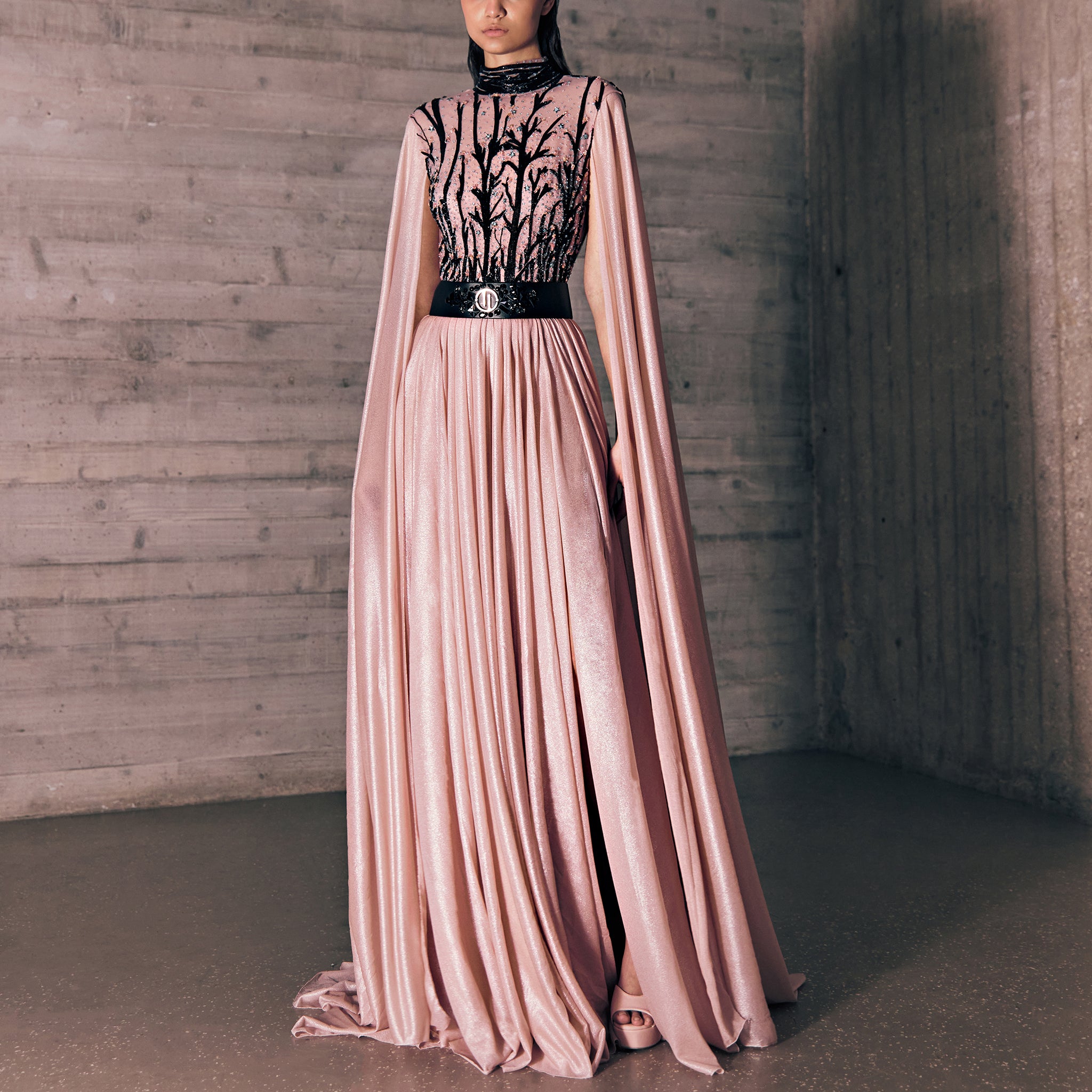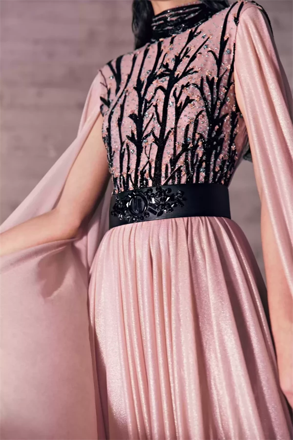 Blush Pink Jersey Dress With A Mysterious Vine Embroidered